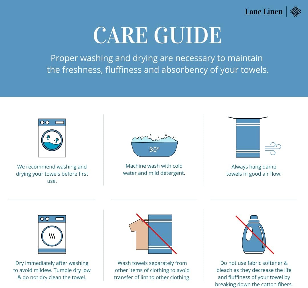 Care Instructions : Due to the use of zero twist loops, our bathroom towels provides great softness. You may see some lint during first few uses due to the towels containing 100% cotton piles but should diminish after each washing. For best use, wash separately on first use. Always wash the towels separately to minimize lint.