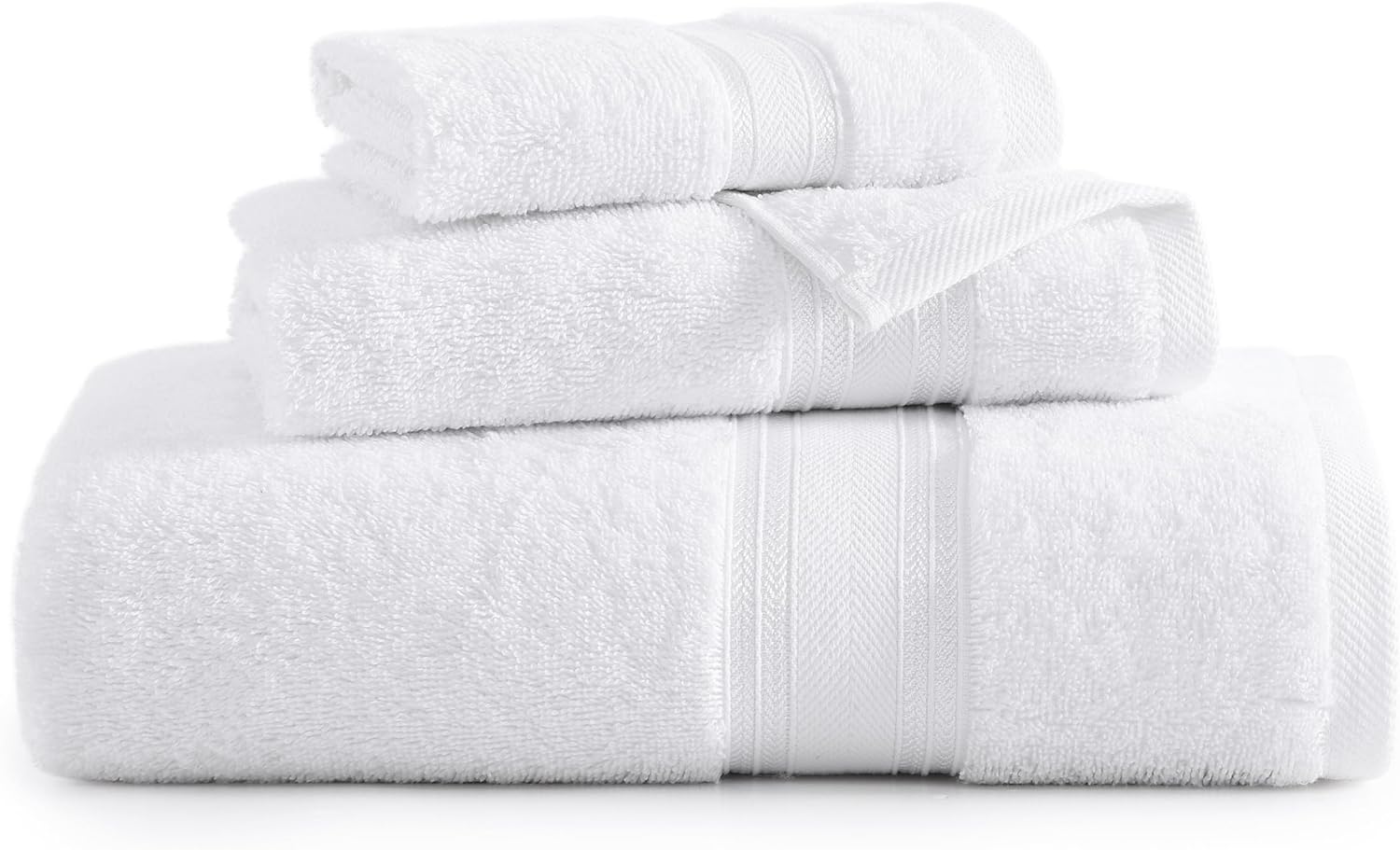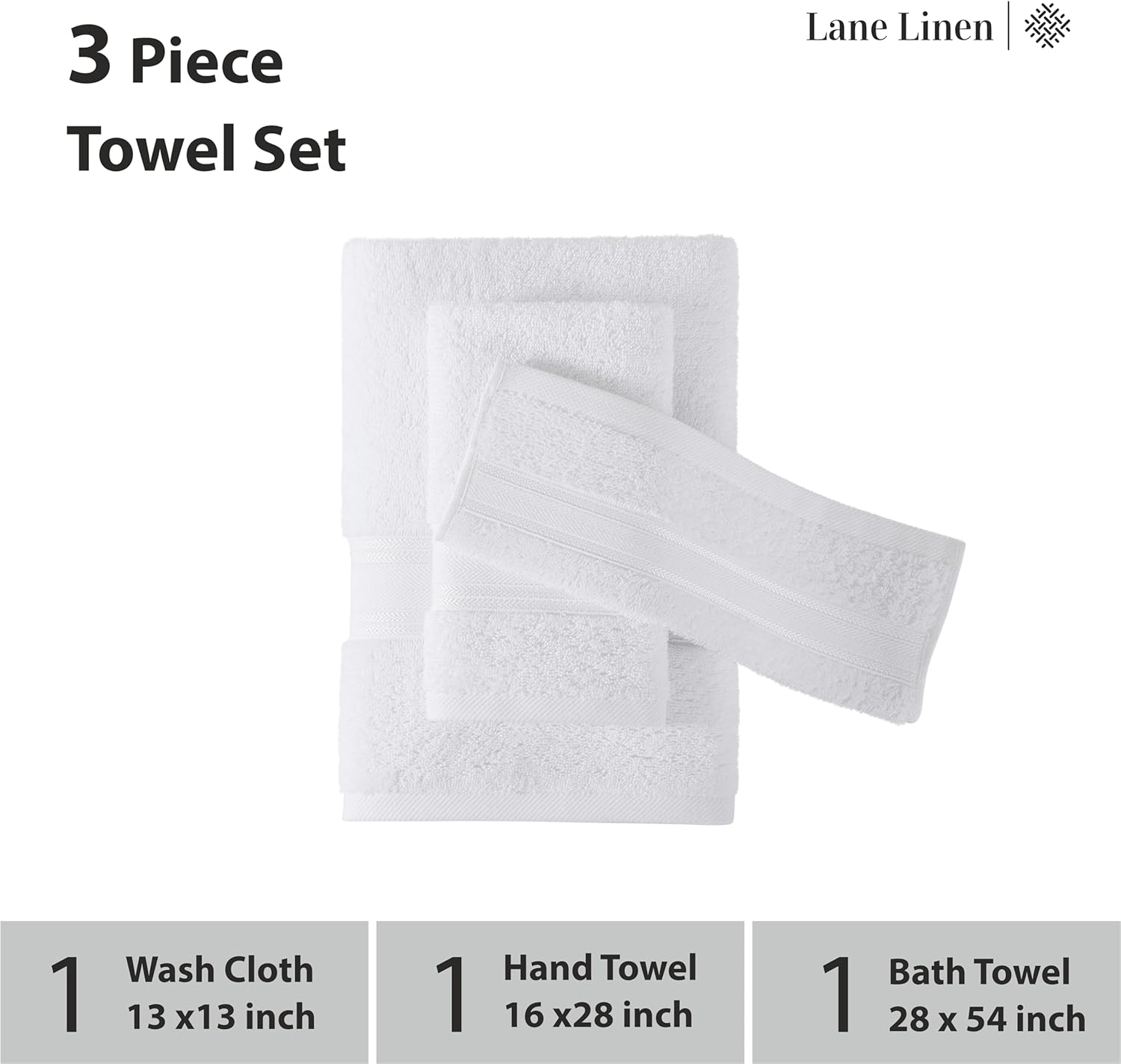 LANE LINEN Luxury Bath Towels Set - 3 Piece 100% Cotton Bathroom Towels, Quick Dry, Extra Aborbent, Super Soft Towels Set 1 Hand Towel, 1 Wash Cloths, 1 Bath Towel, White