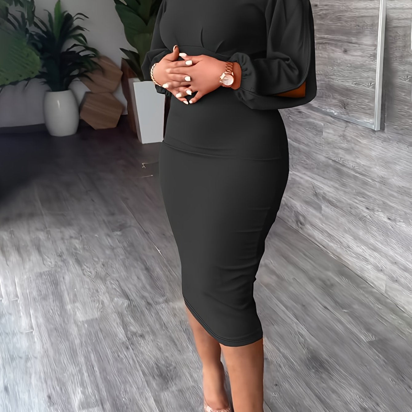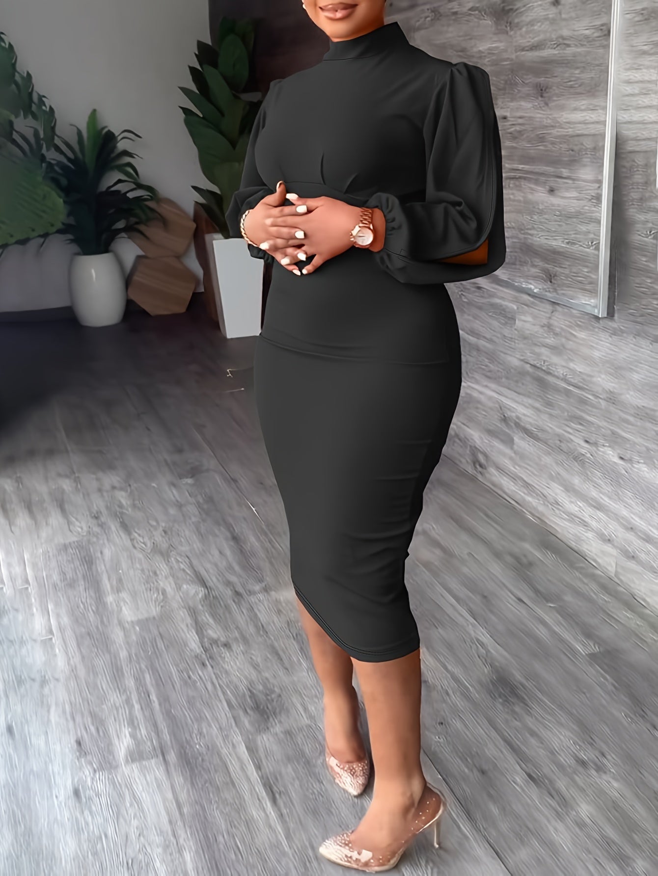 [Lantern Split Sleeve Dress] Women's Semi-High Collar Lantern Split Sleeve Dress - Spring and Summer