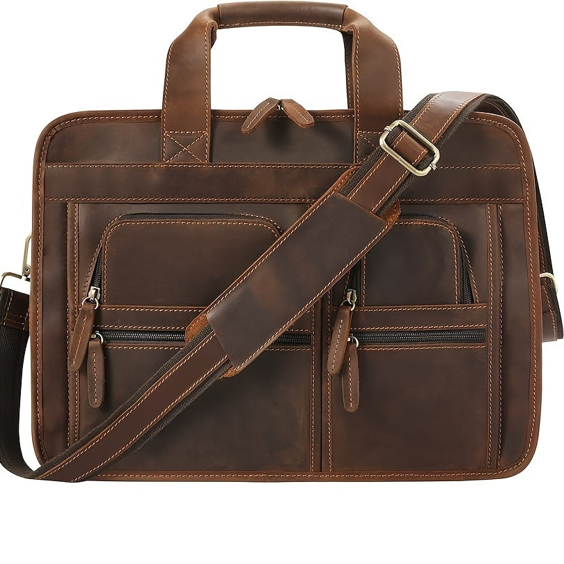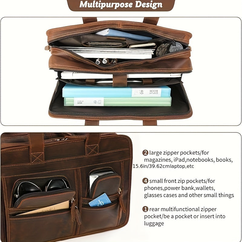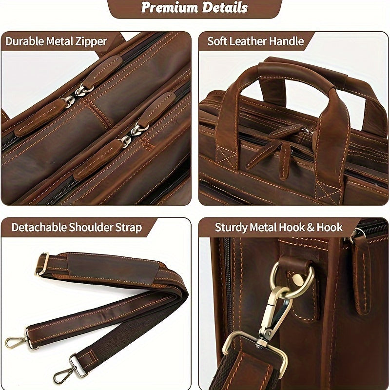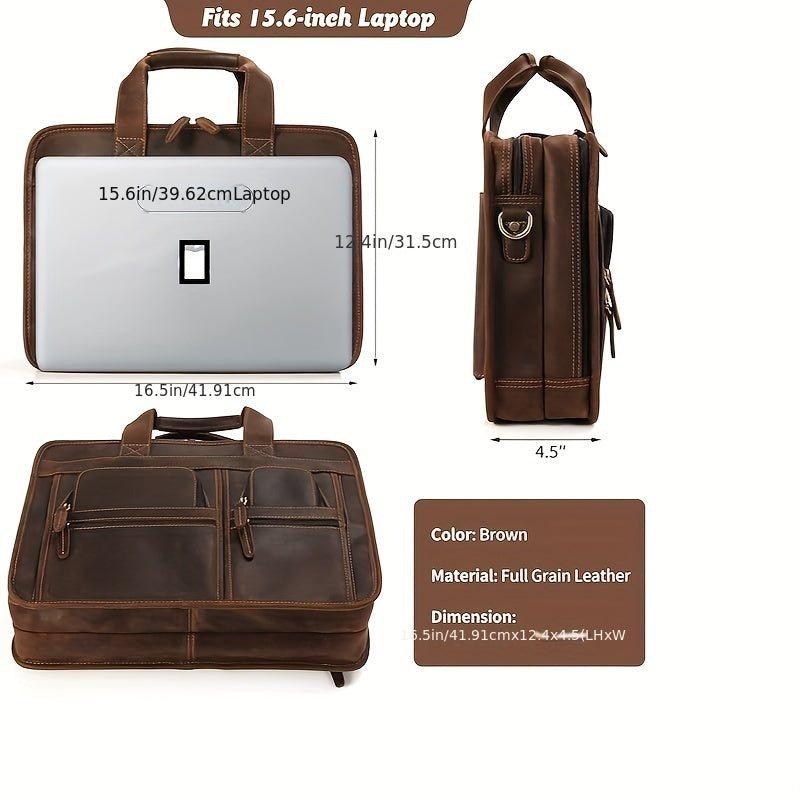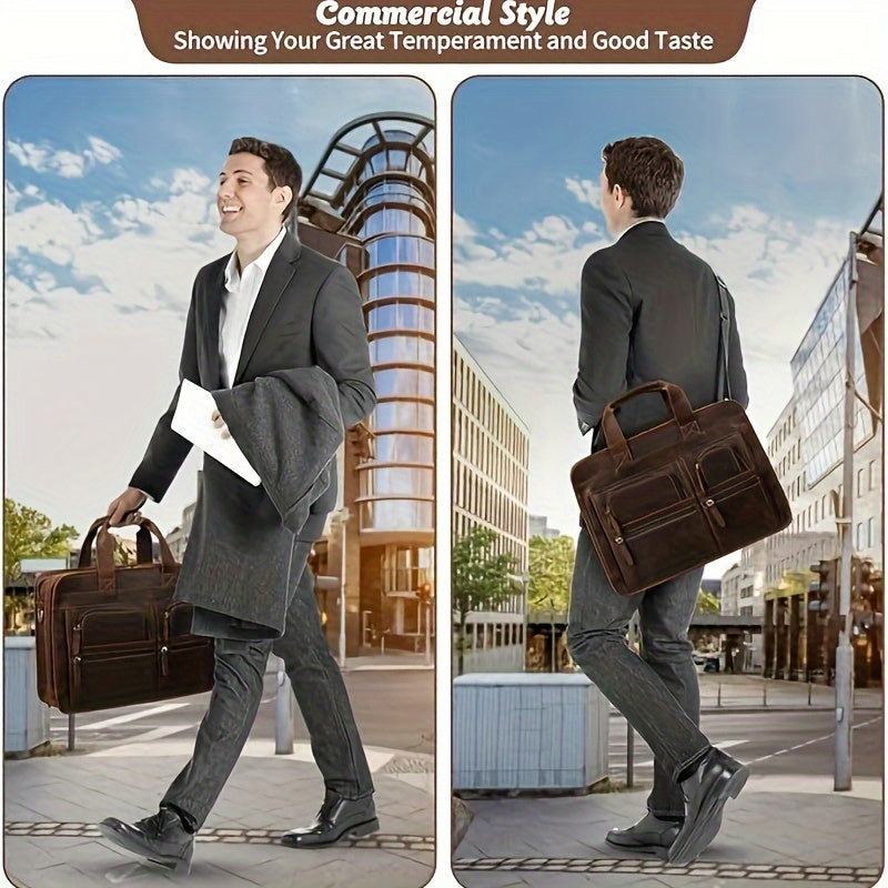 Large 15.6 Laptop Leather Briefcase - Jack&Chris Retro Business Travel Messenger Bag For Men