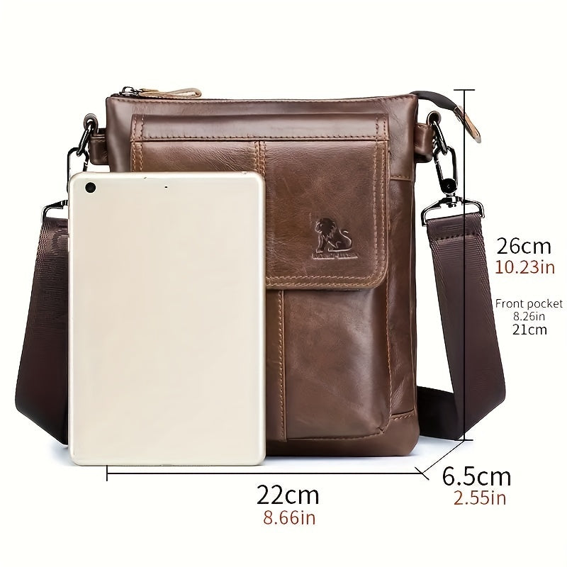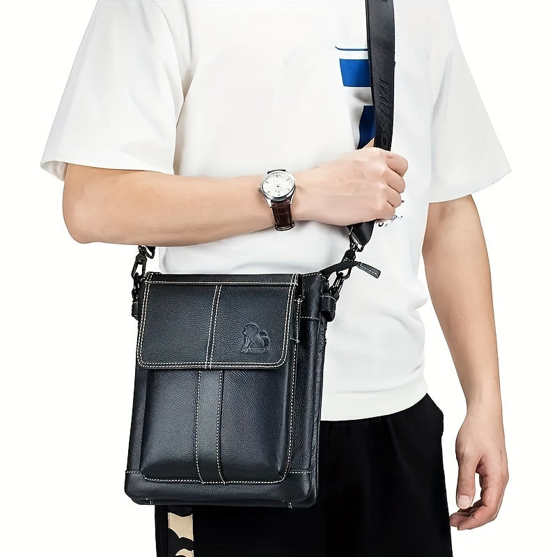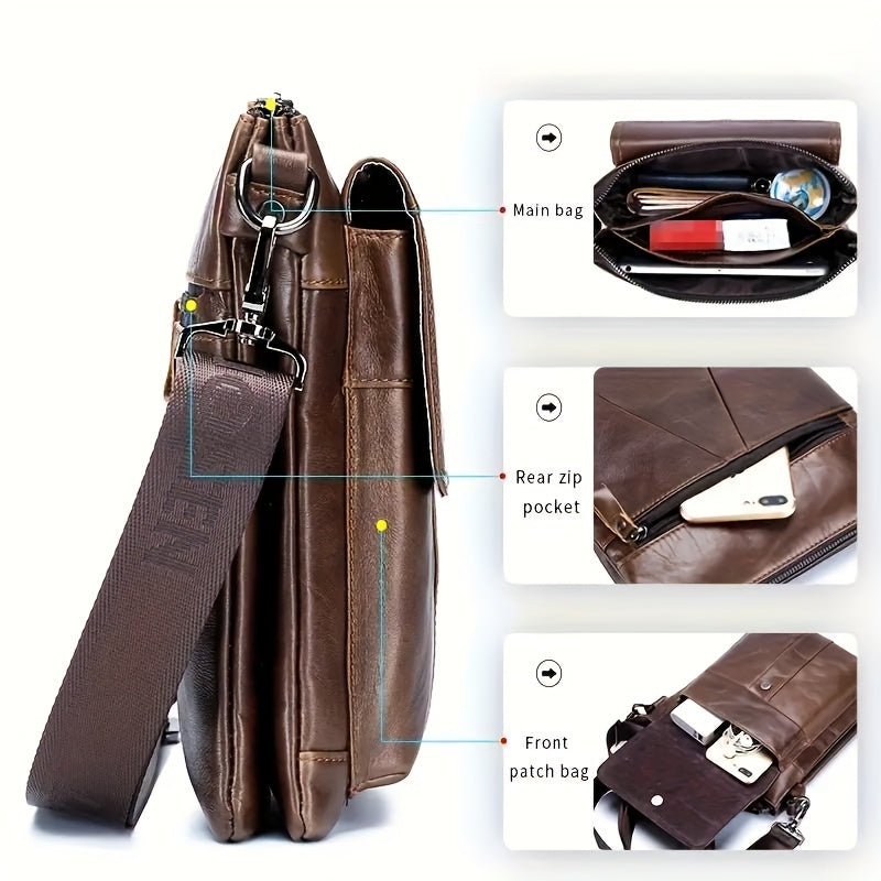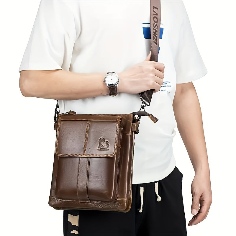 Large Capacity Men's Leather Retro Messenger Bag Cow Leather Shoulder Bag Multi-Functional