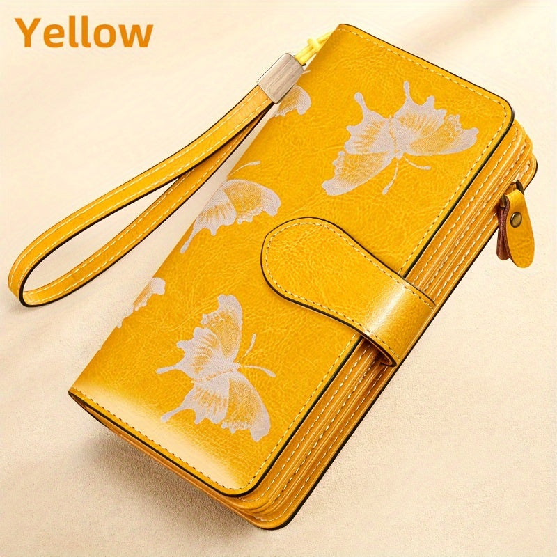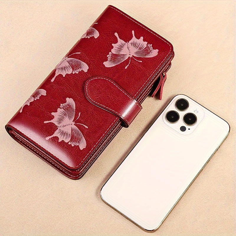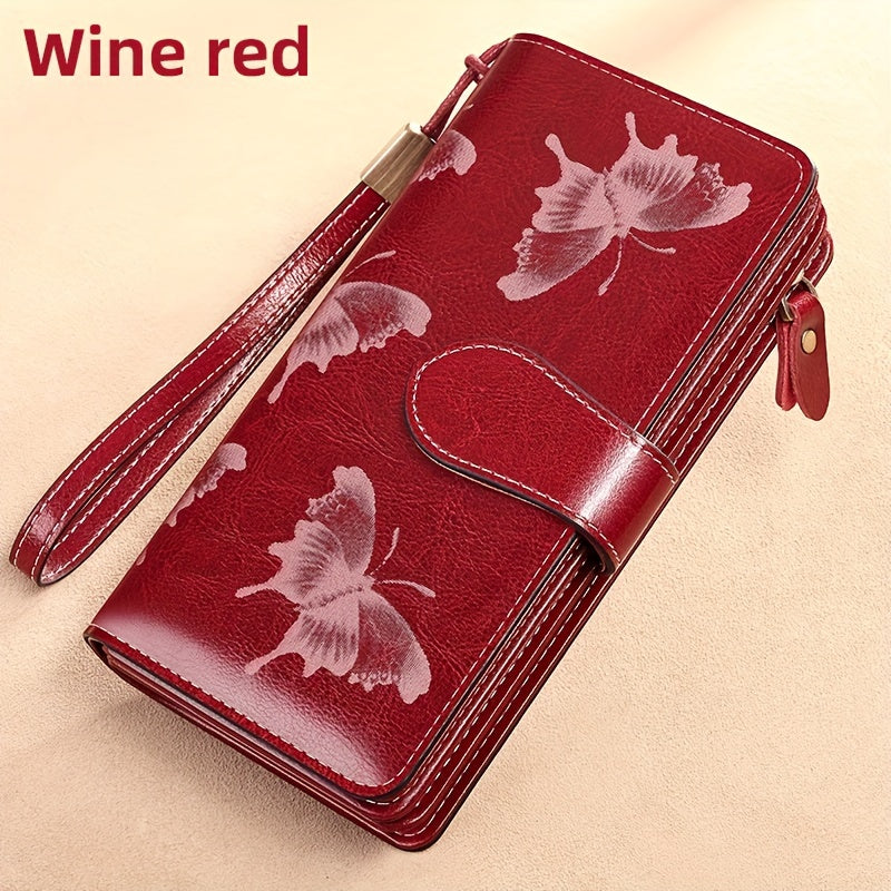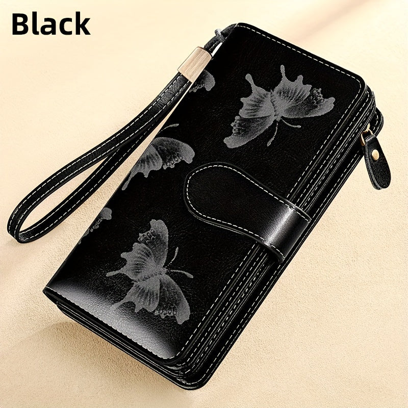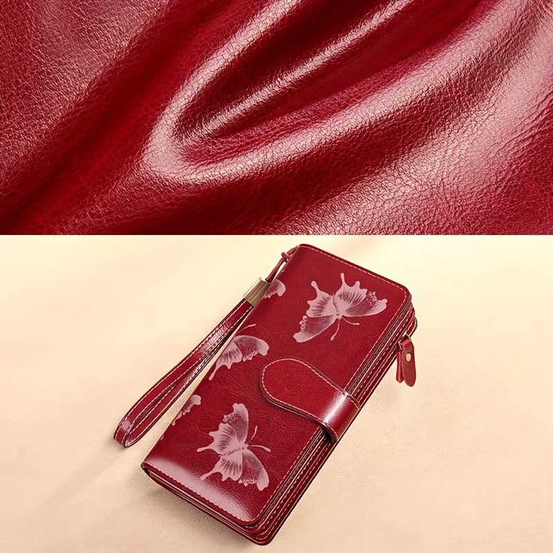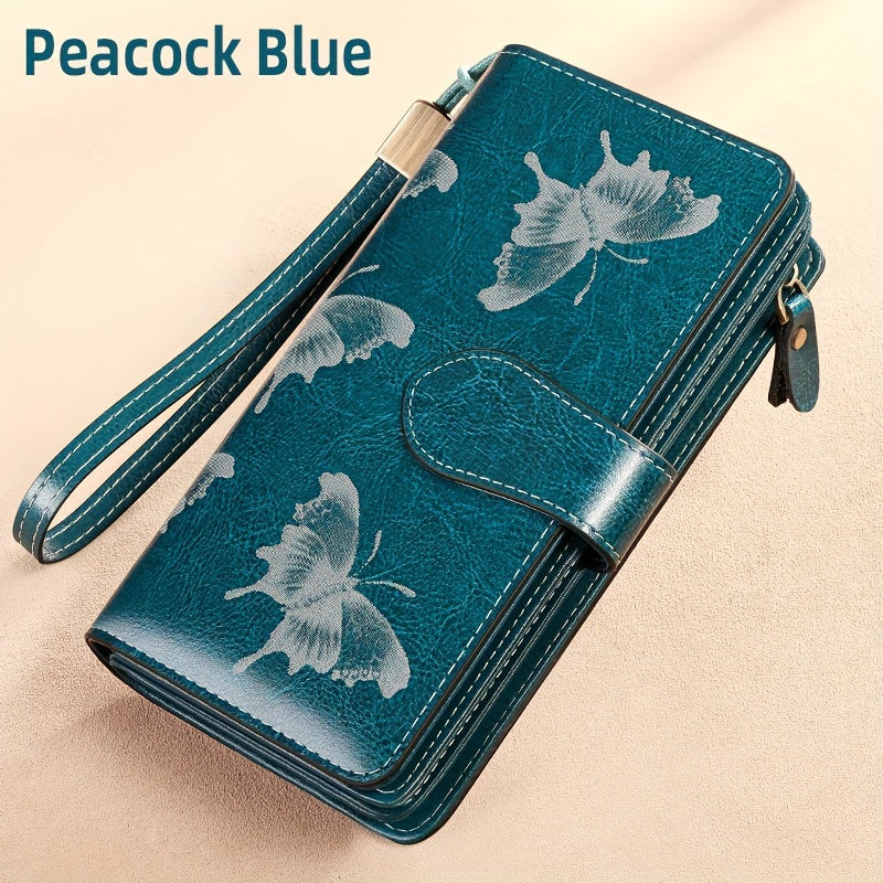 Large Capacity Women's Retro Classic Long Wallet, Vintage Style With Butterfly Pattern, Zipper And Card Slots Clutch