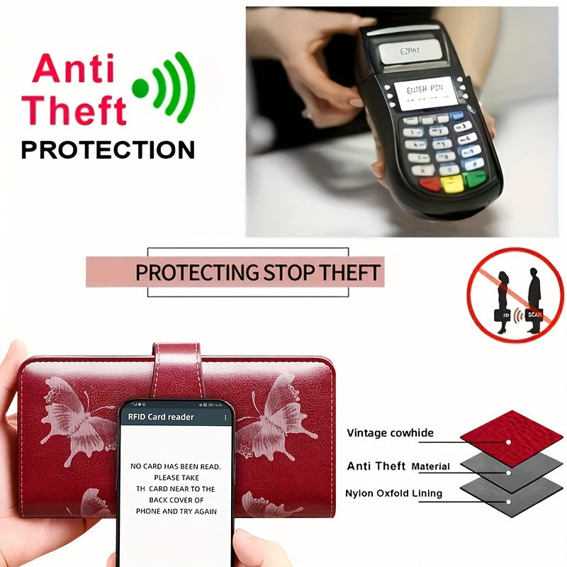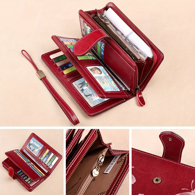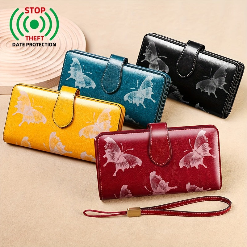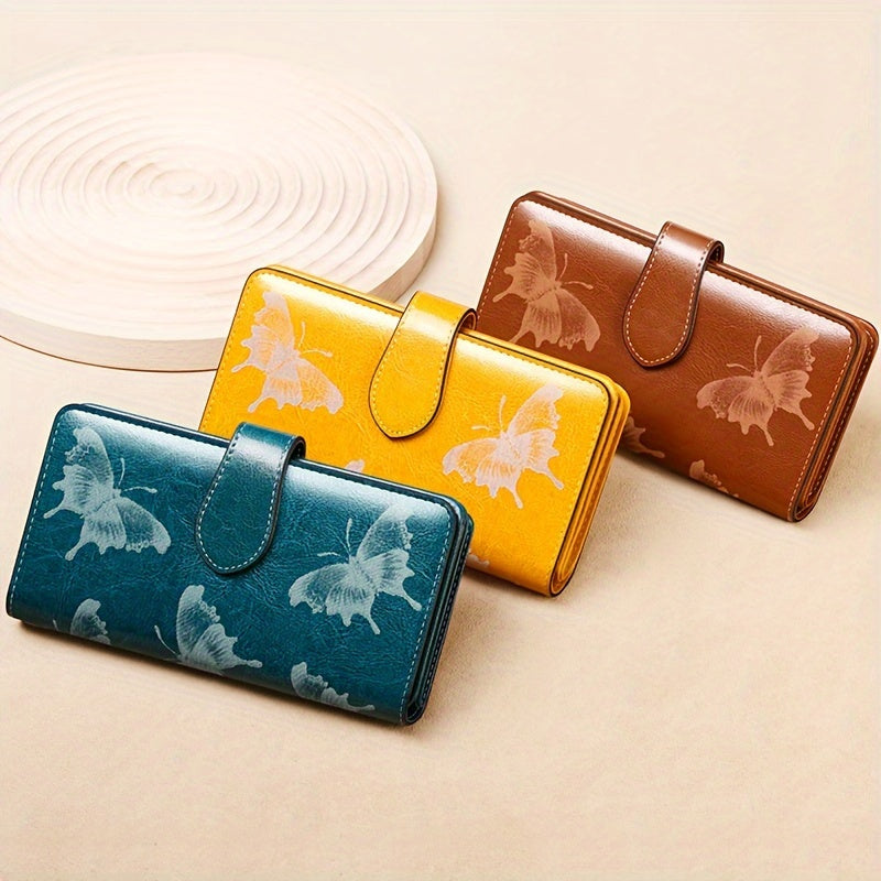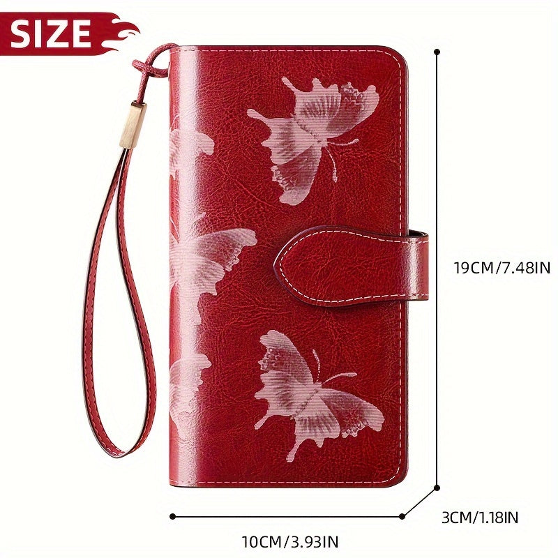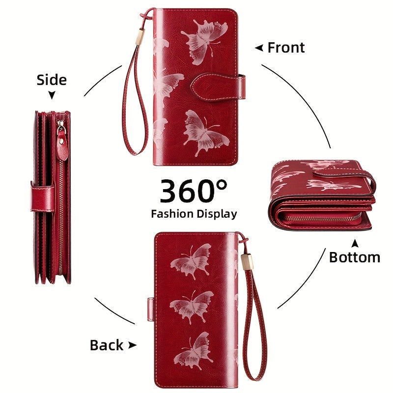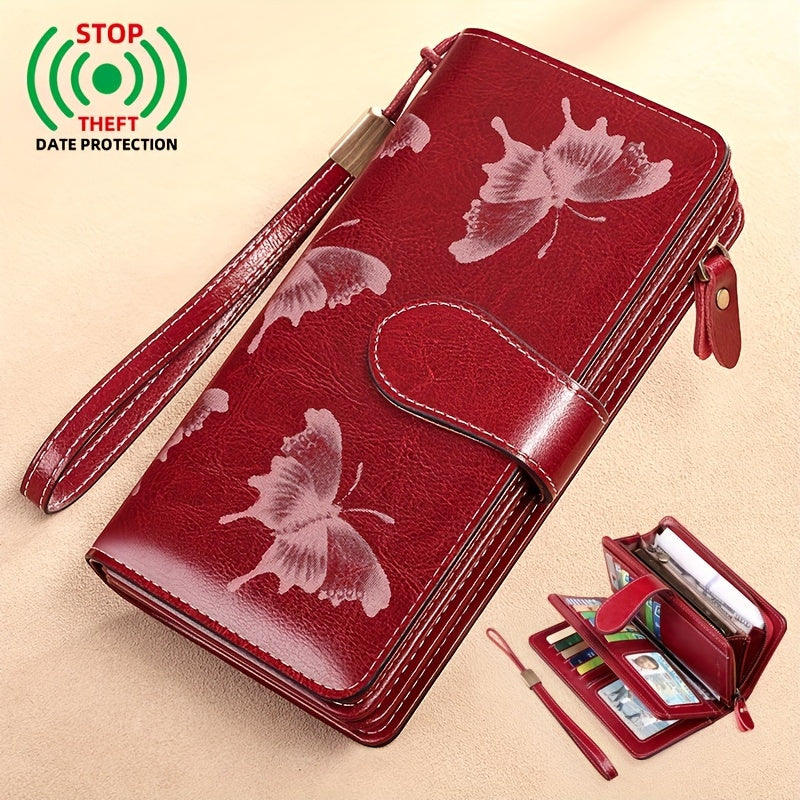 Large Capacity Women's Retro Classic Long Wallet, Vintage Style With Butterfly Pattern, Zipper And Card Slots Clutch