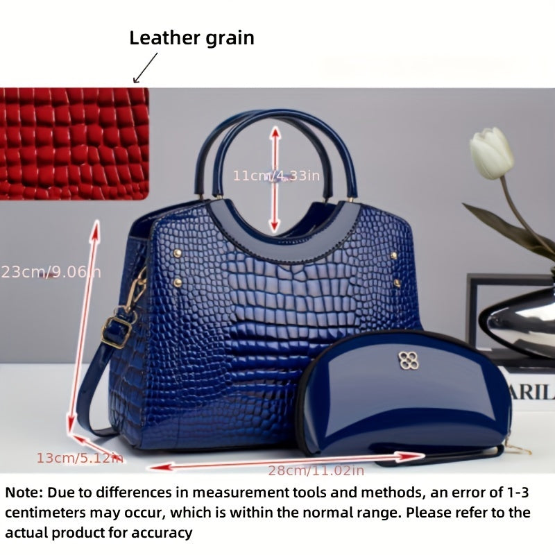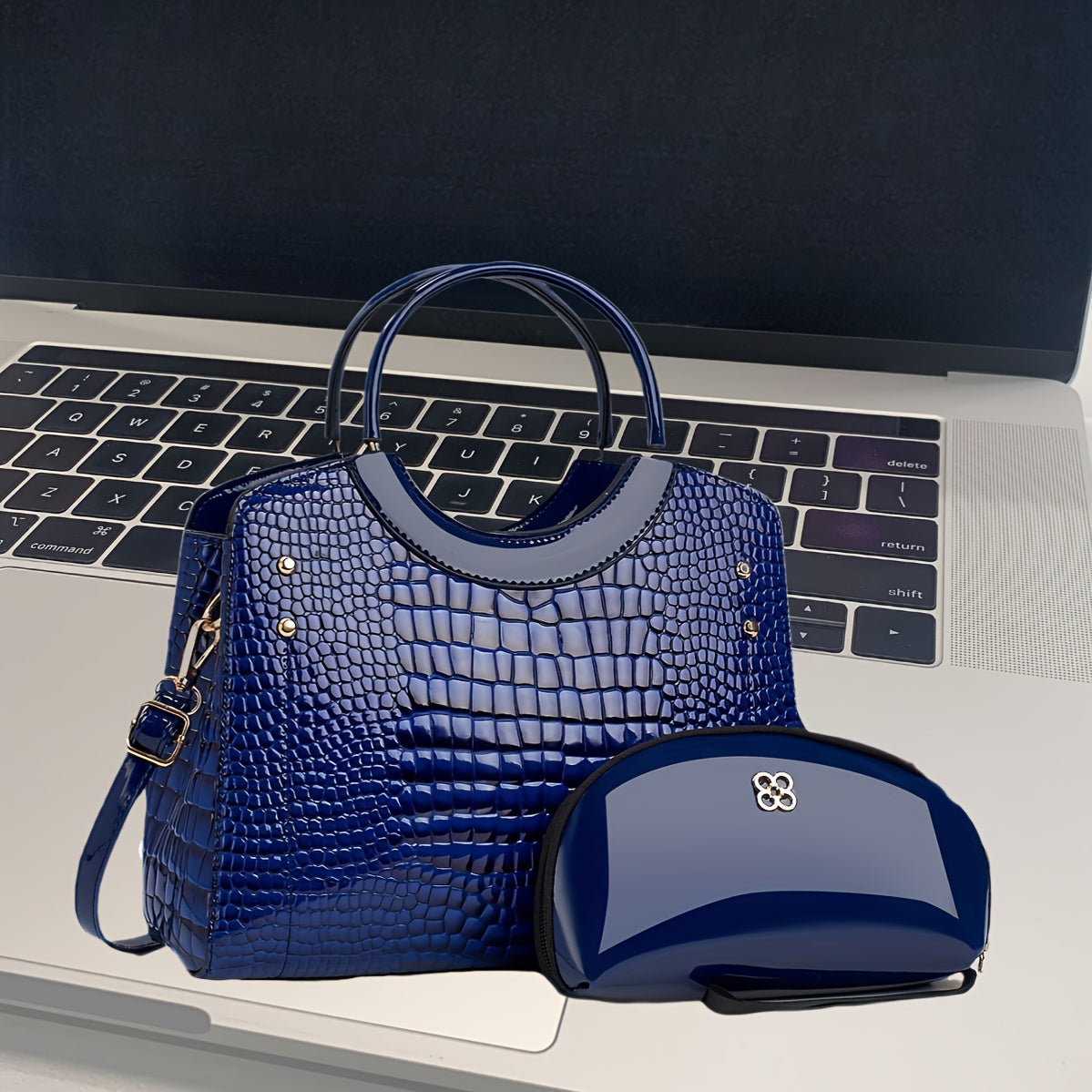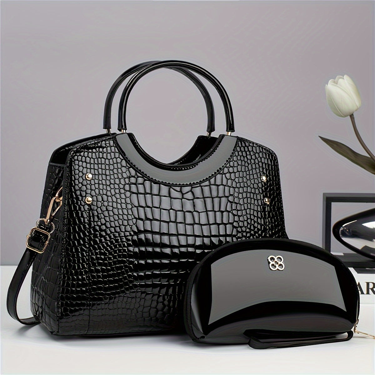 Large Volume Shiny Mother-Tote Bag Stylish With Crocodile Print