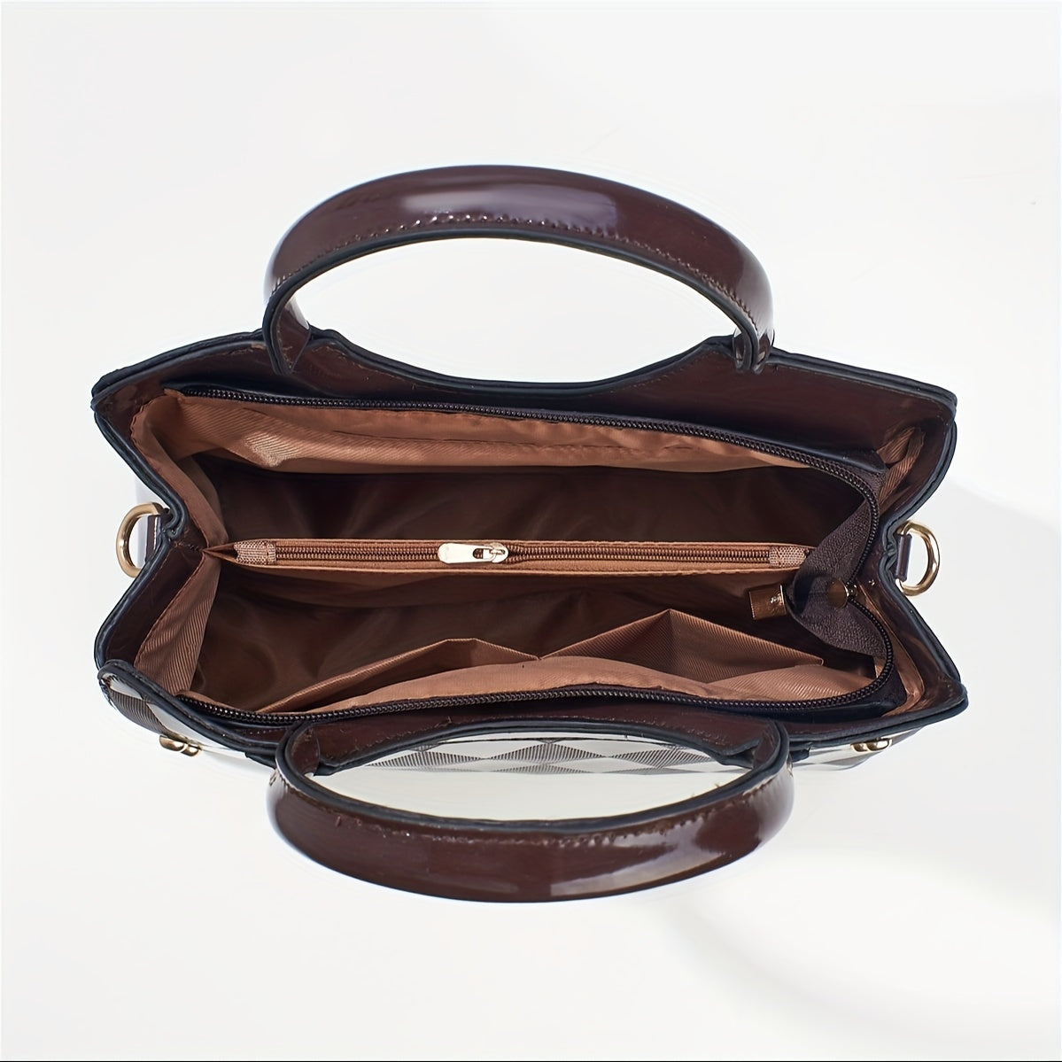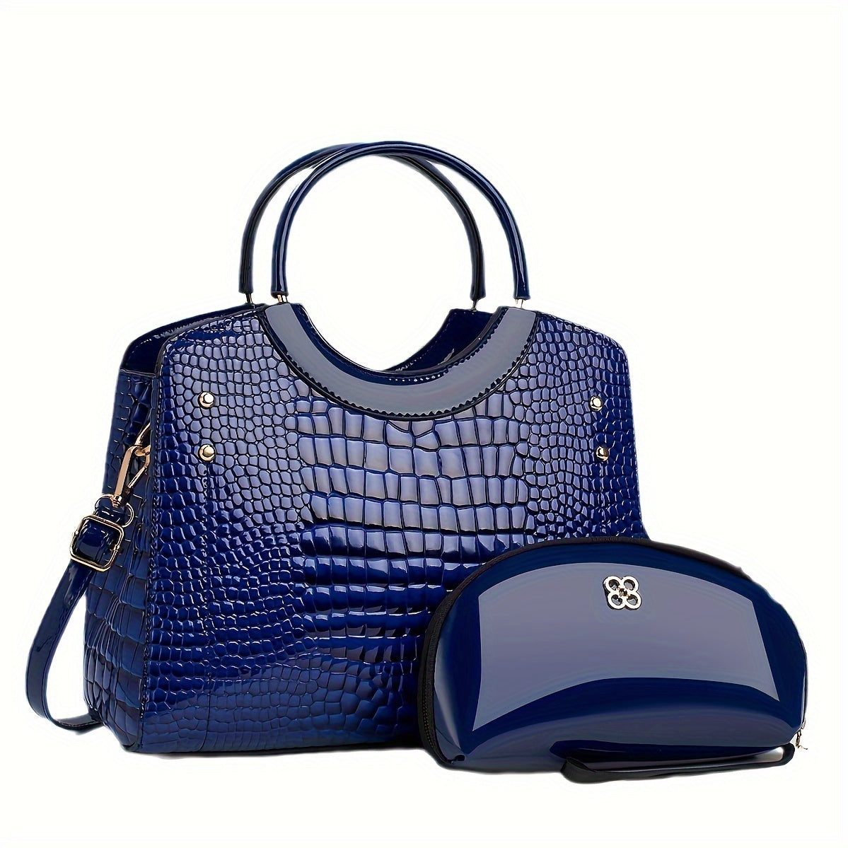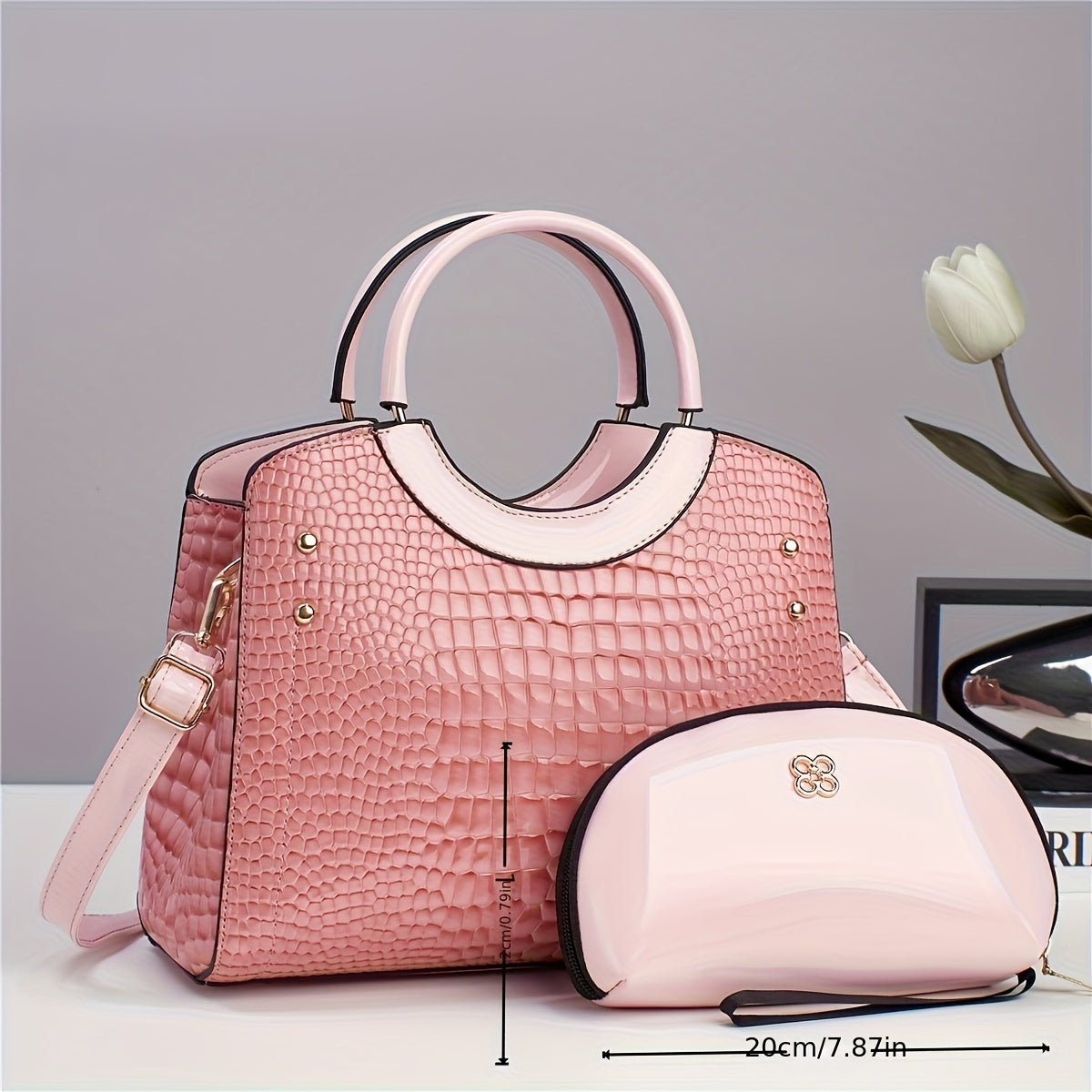 Large Volume Shiny Mother-Tote Bag Stylish With Crocodile Print