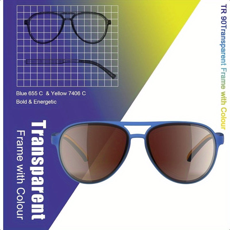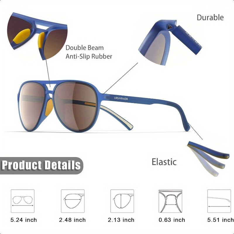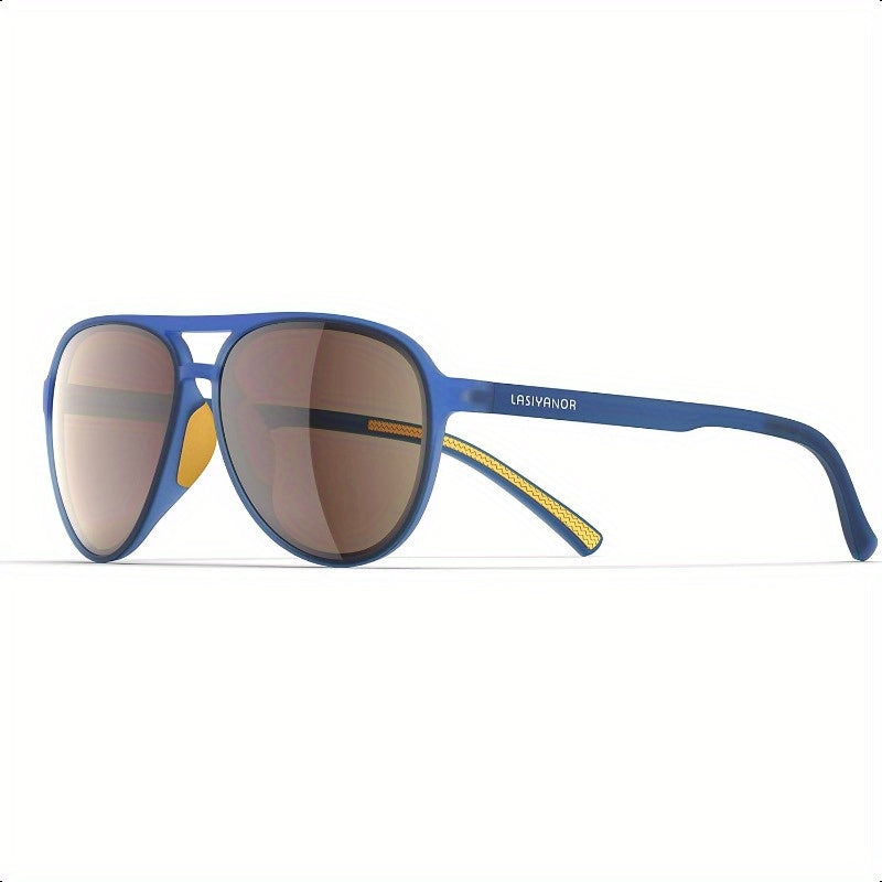 Lasiyanor Polarized Retro 70s Fashion Glasses for Women & Men - Lightweight TR-90 Frame, UV 400 Protection, Blue Pilot Style with Yellow Accents, TAC Lenses for Outdoor Activities