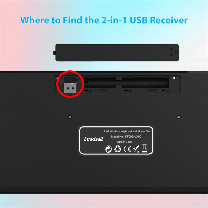 LeadsaiL Ensemble clavier et souris sans fil, souris USB sans fil et ensemble clavier d'ordinateur, compact et silencieux pour ordinateur portable Windows, ordinateur de bureau, PC