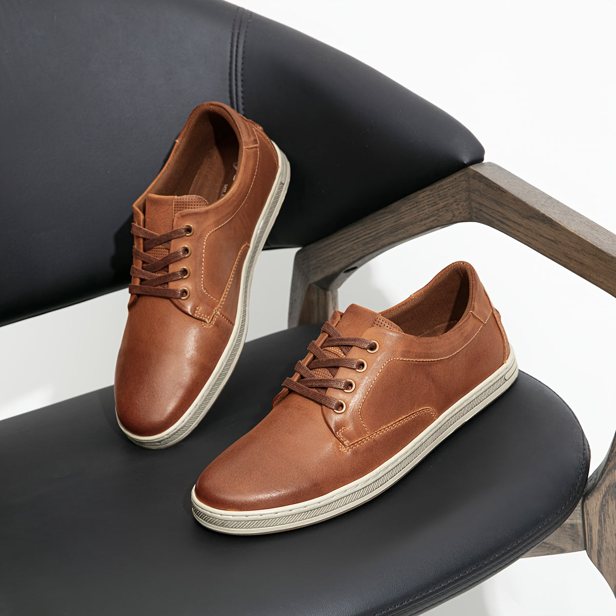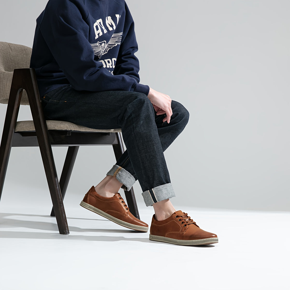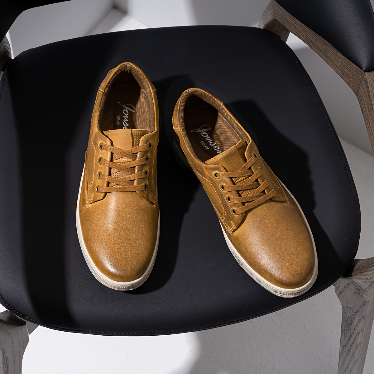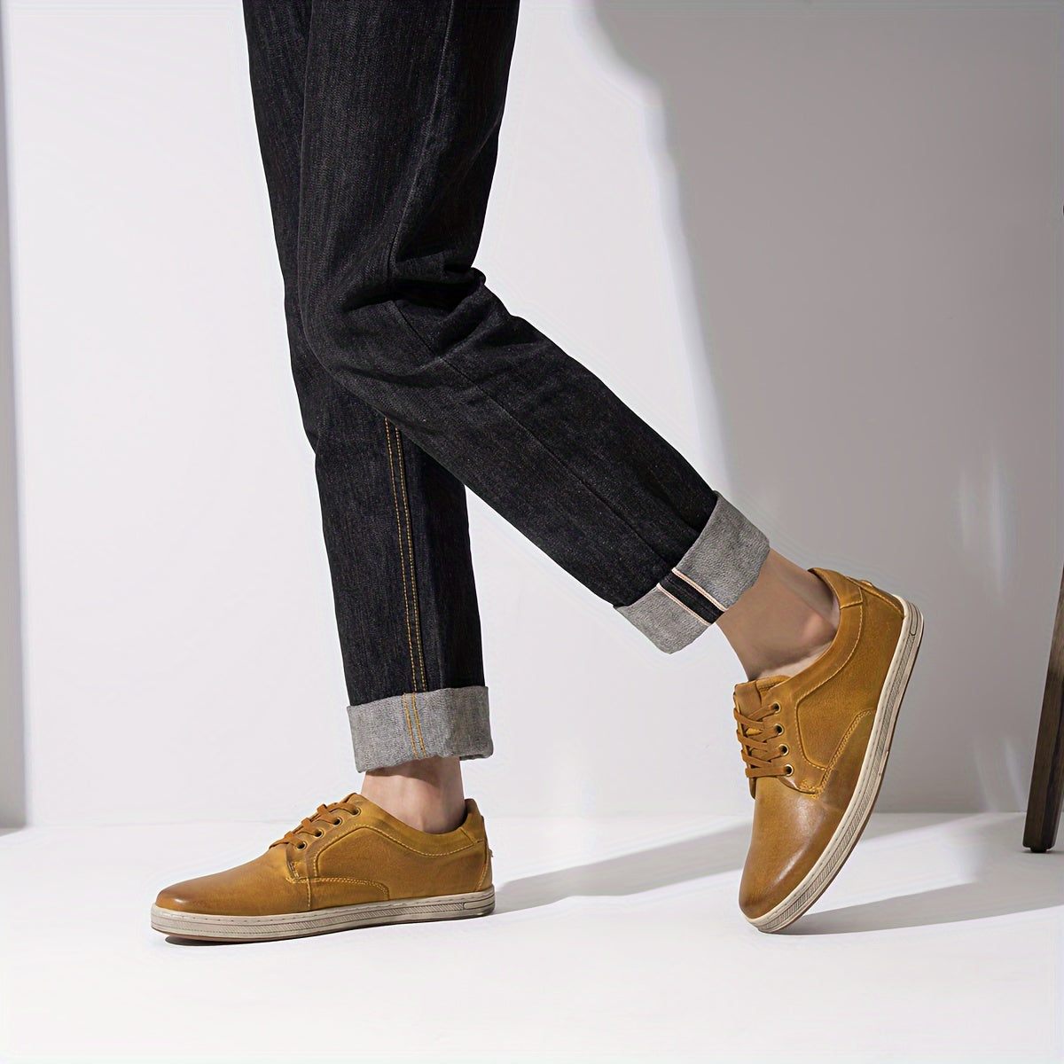 [Leather Fashion Sneakers] Retro Leather Men's Fashion Sneakers - Breathable Dress Casual Shoes