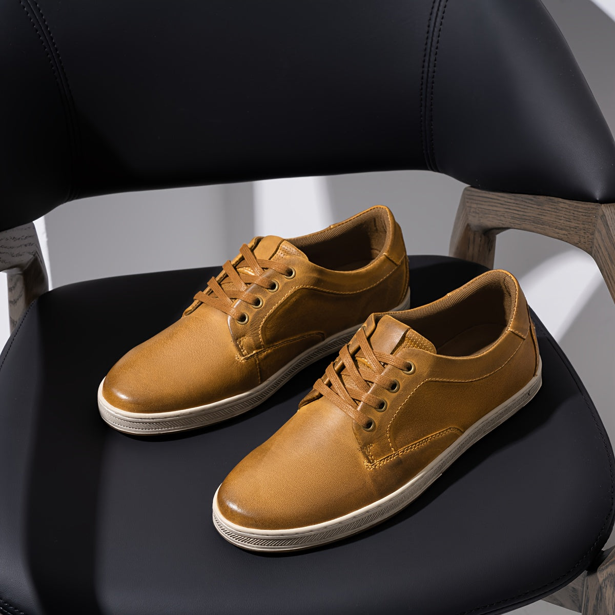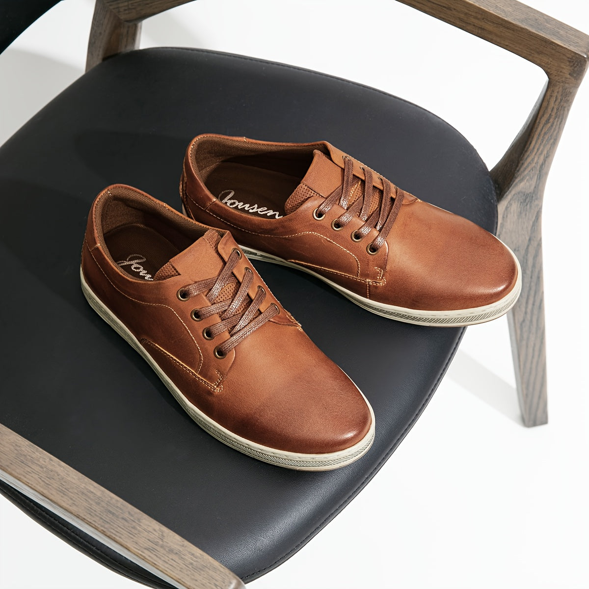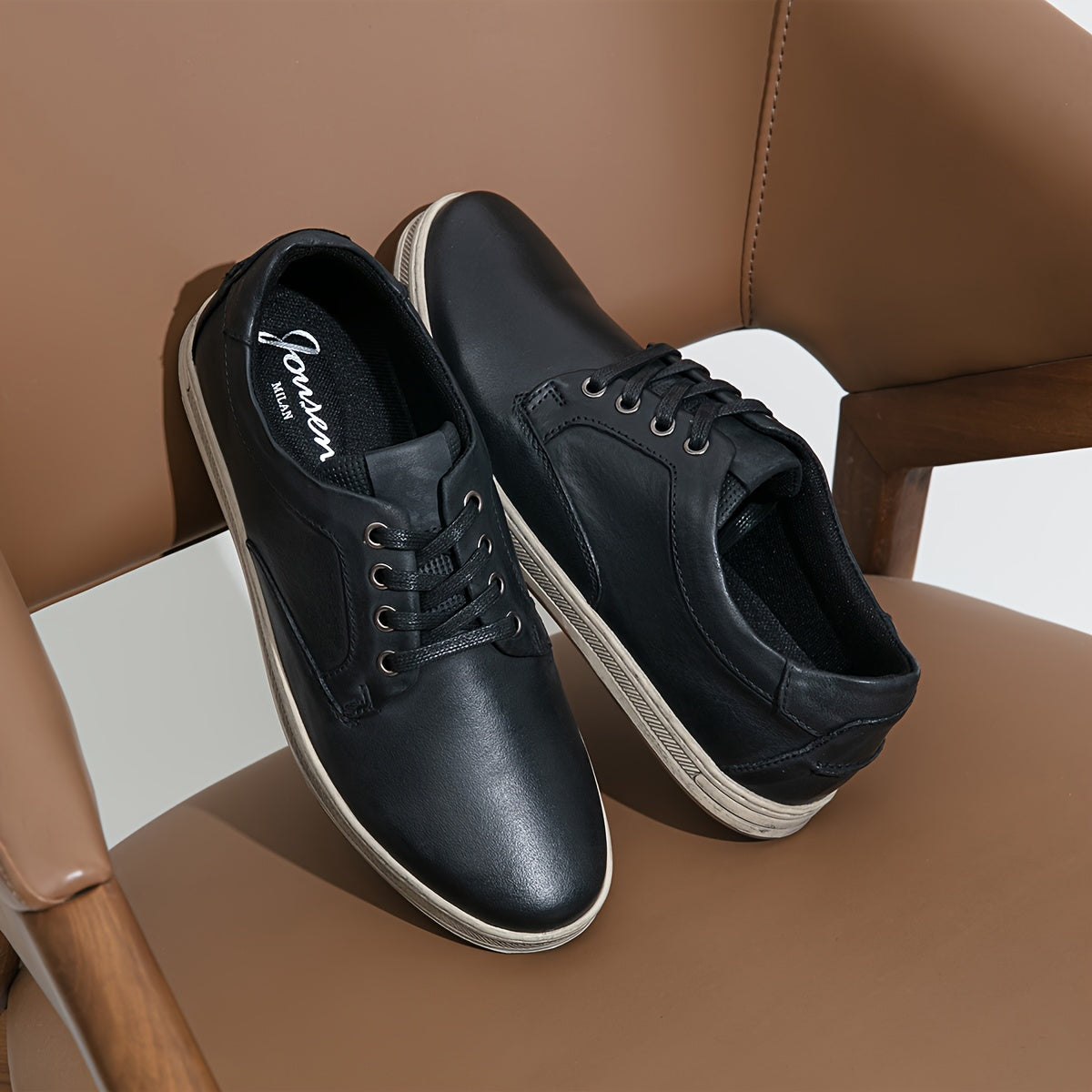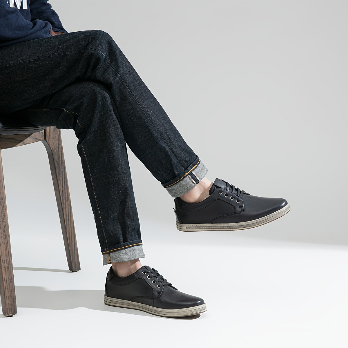 [Leather Fashion Sneakers] Retro Leather Men's Fashion Sneakers - Breathable Dress Casual Shoes
