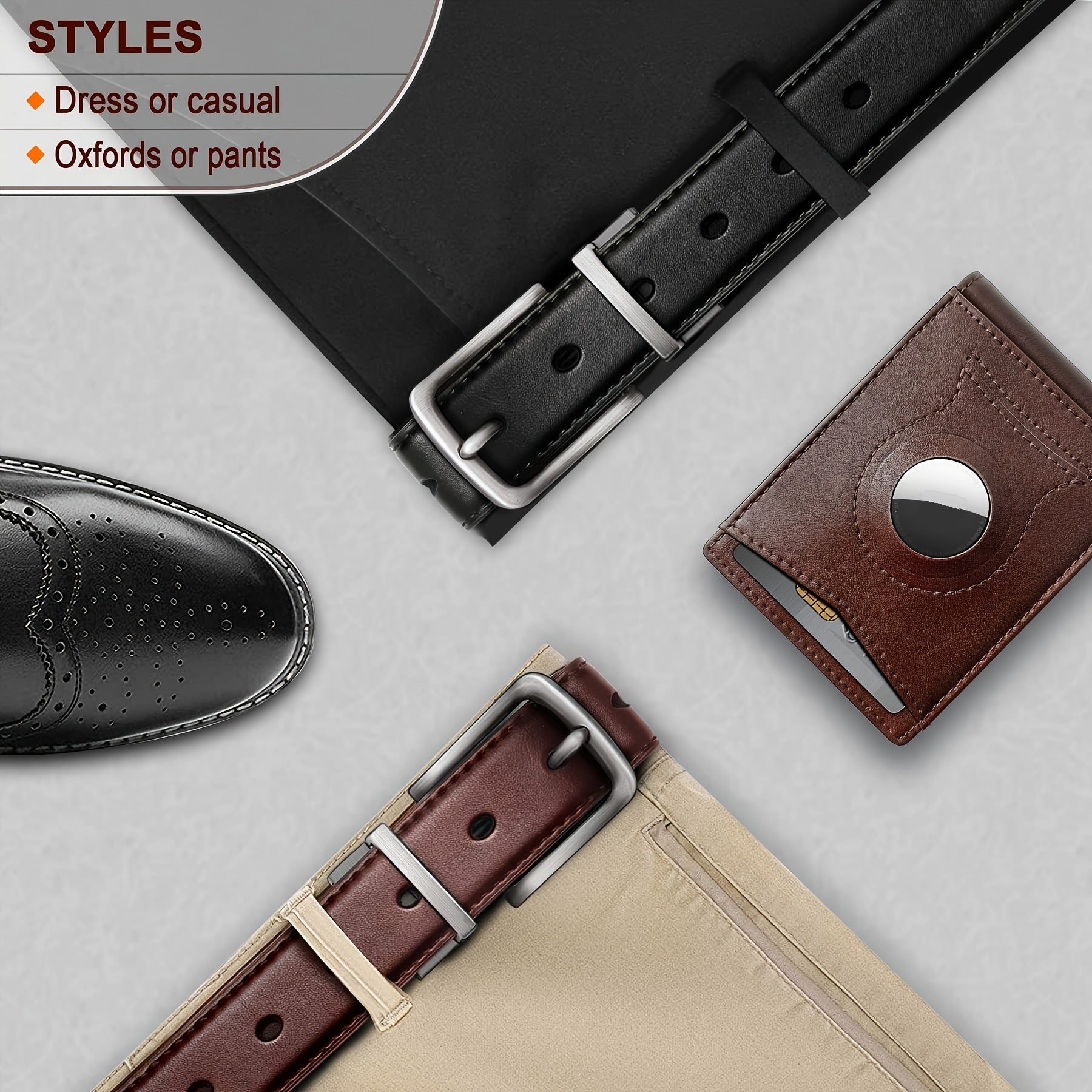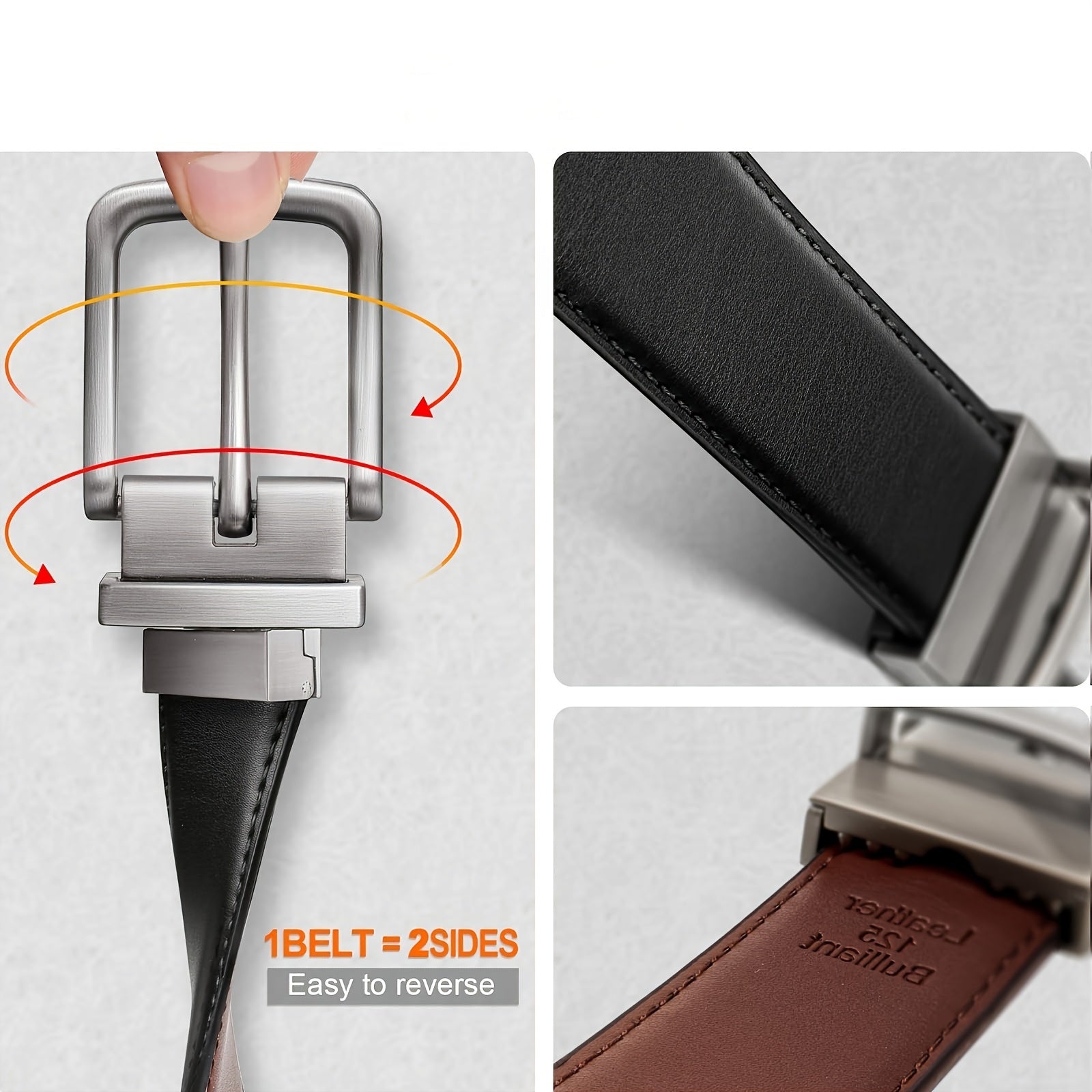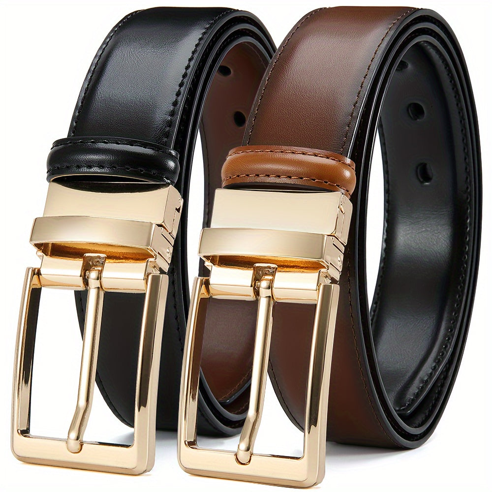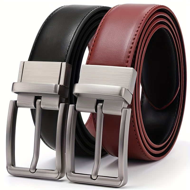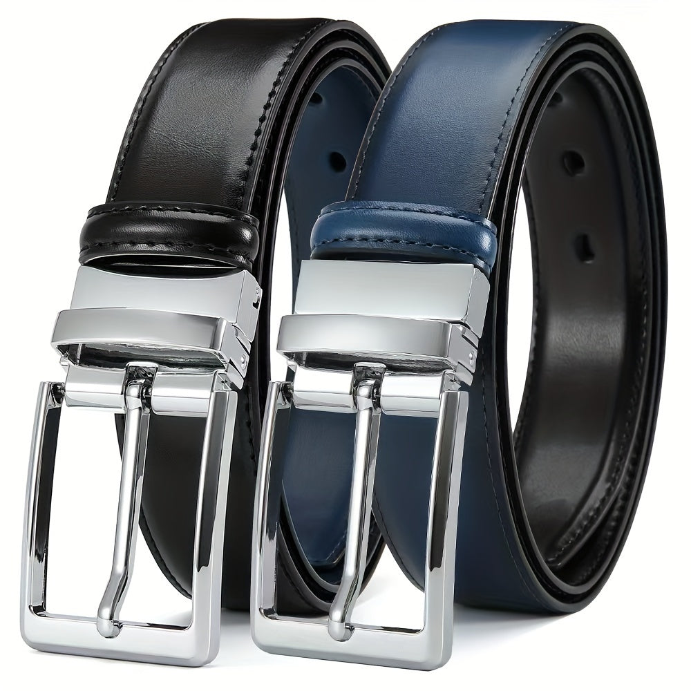 Leather Men's Belt Reversible Genuine Leather Men's Belt - Dual-Style Square Alloy Buckle, Durable Cowhide Strap, Business Casual, Two-Tone Leather, Versatile Men's Accessory, Modern Buckle Design