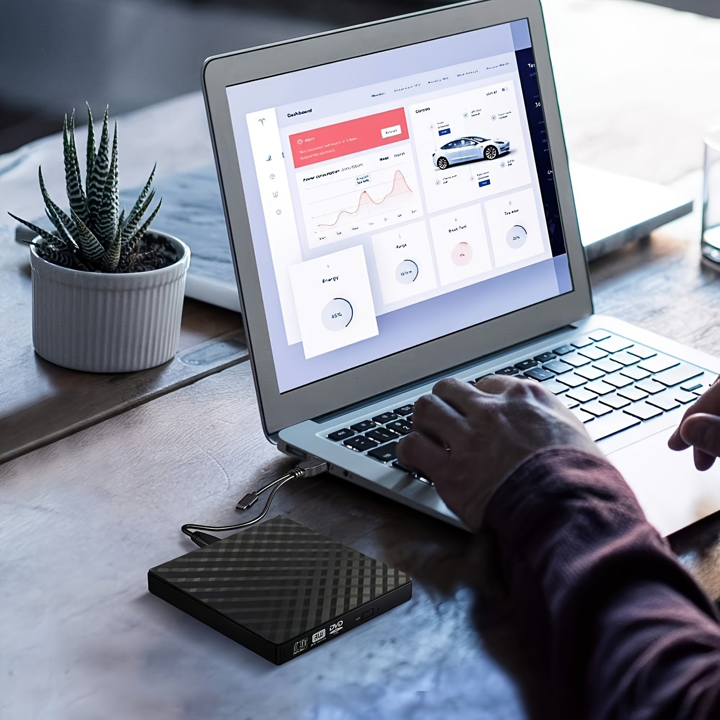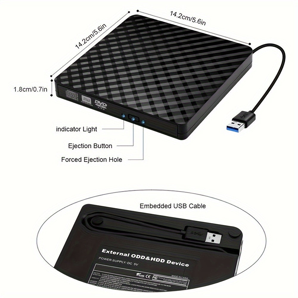 Lecteur de CD DVD +/-RW externe USB 3.0 et USB-C - Transfert de données haute vitesse - Lecteur de disque optique Plug & Play avec capacité de gravure et de réécriture pour ordinateurs portables, ordinateurs de bureau, Windows 11/10/8/7, Surface Pro, Book
