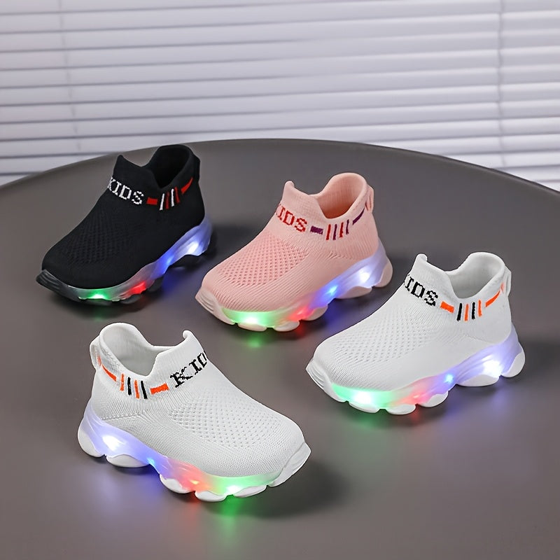 LED Light-Up Sneakers for Kids - Slip-Resistant, Breathable Fabric Walking Shoes with Cute Cartoon Designs - Perfect for Daily Wear & Casual Outings