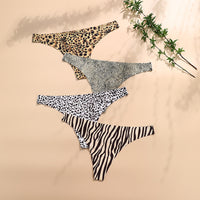 Leopard Print Seamless T Back Ladies Low Waist Sexy Breathable Sports Ice Silk Underwear Women Quick Drying