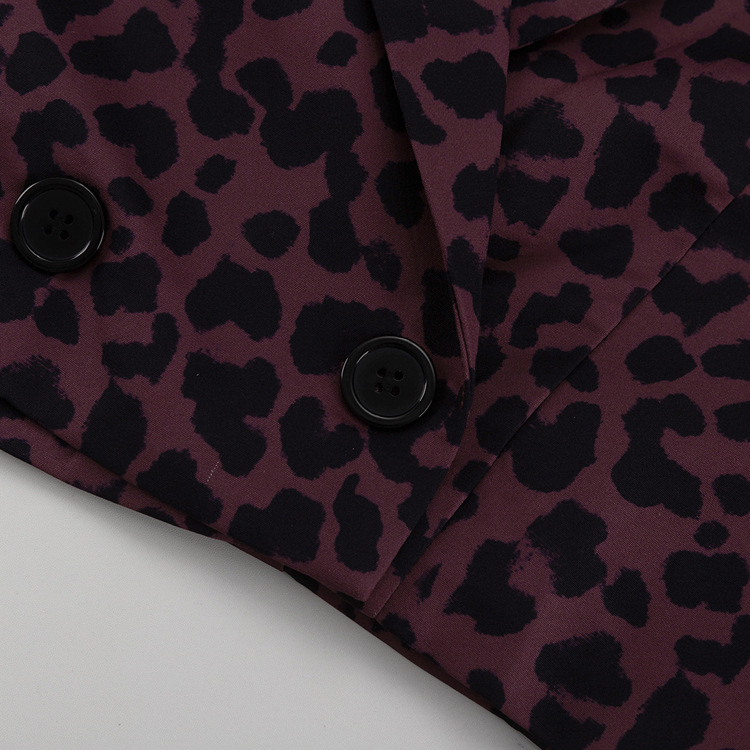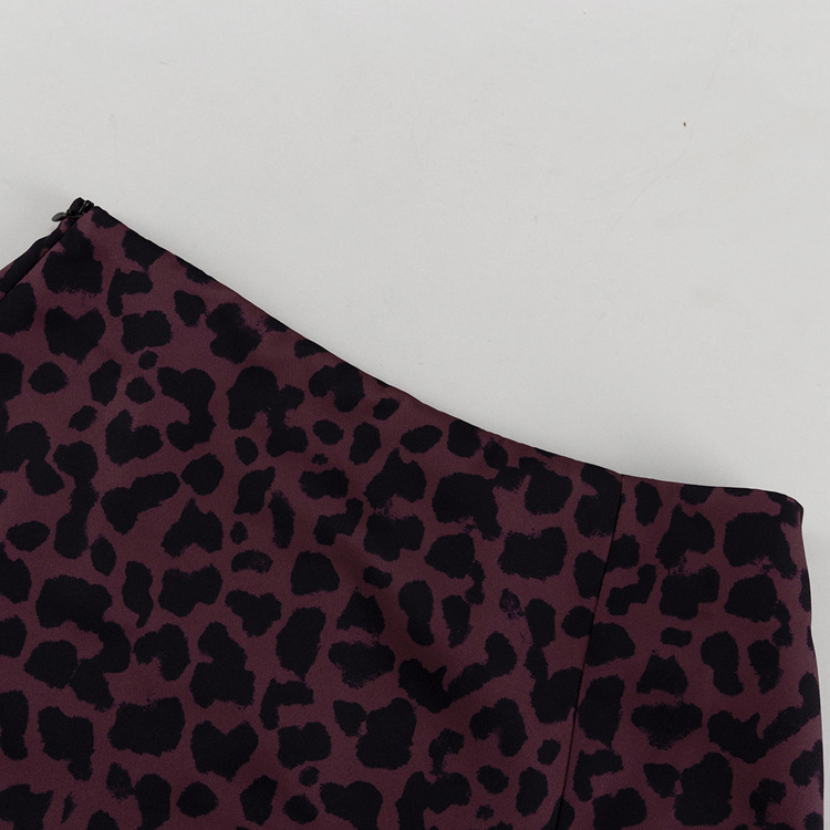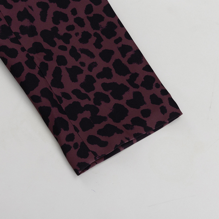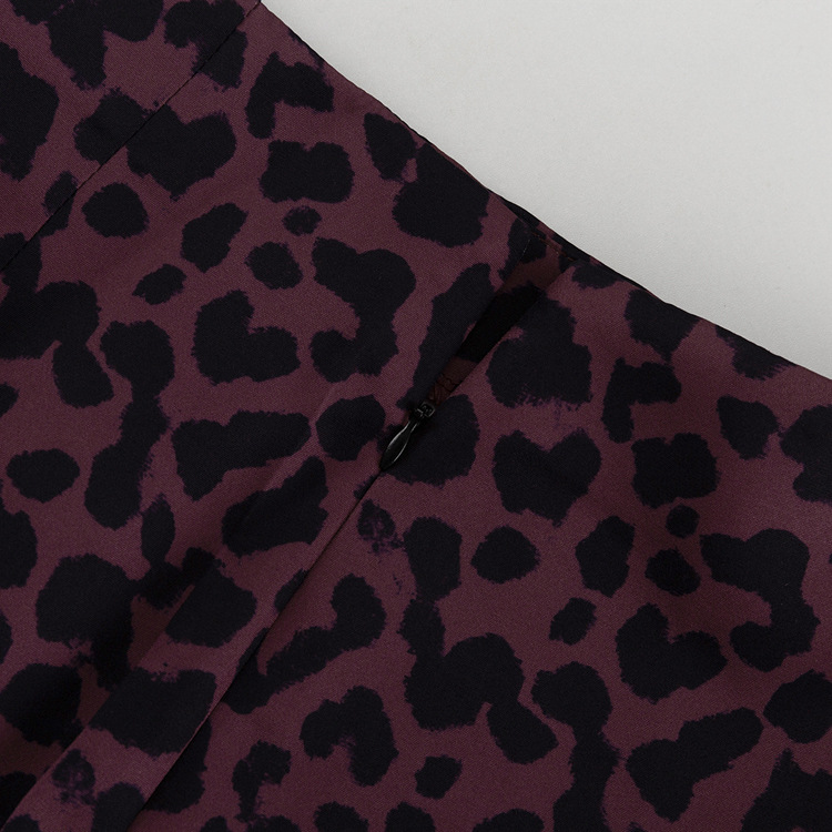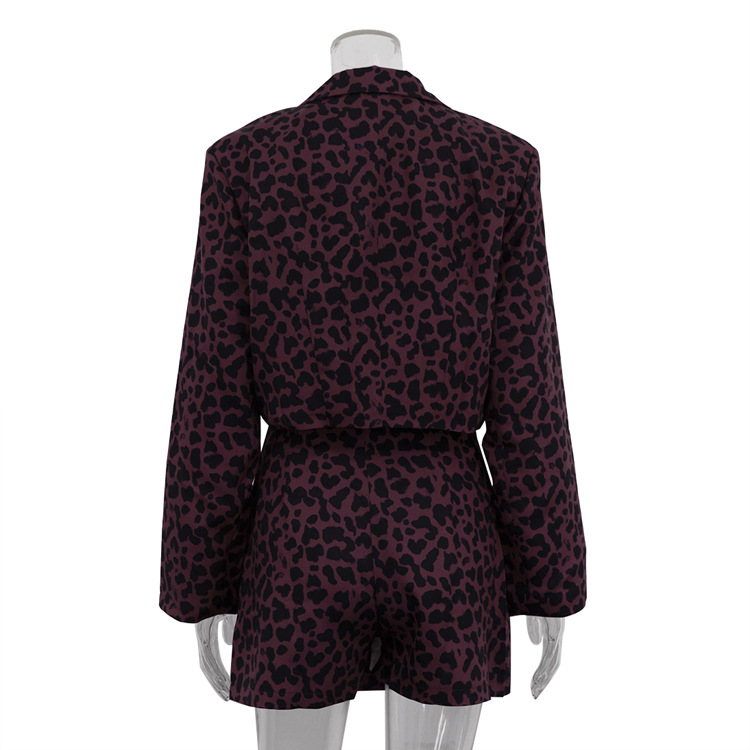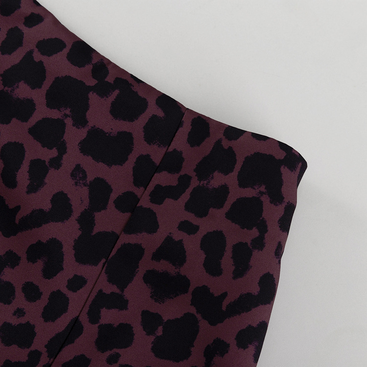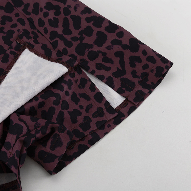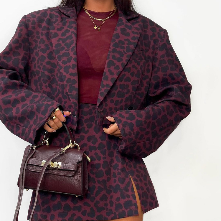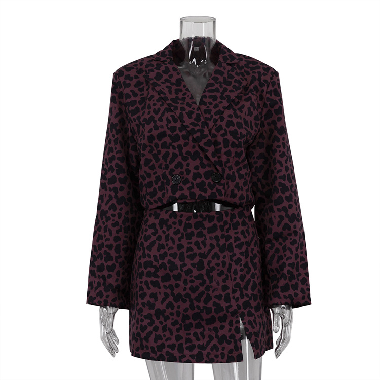 Leopard Print Skirt Set Women Collared Long Sleeve Short Small High Waist Slit Short Skirt Two Piece Sets