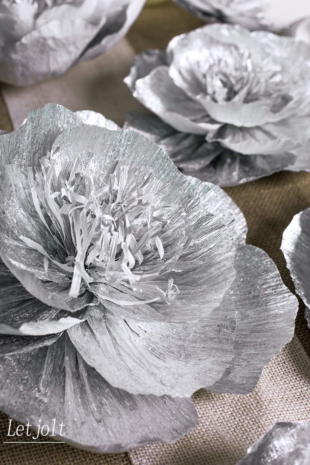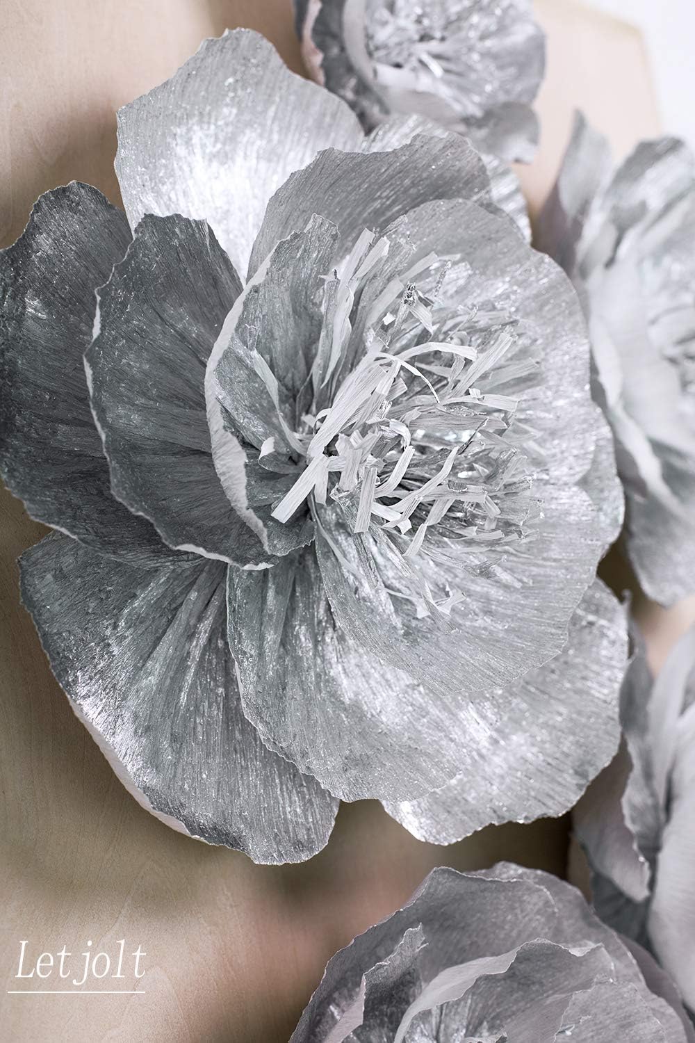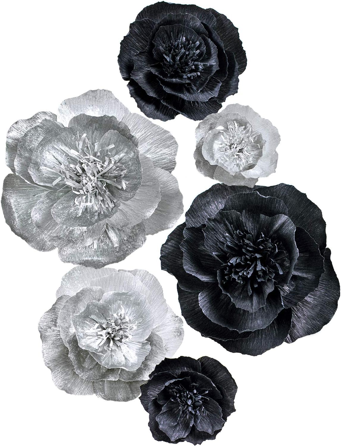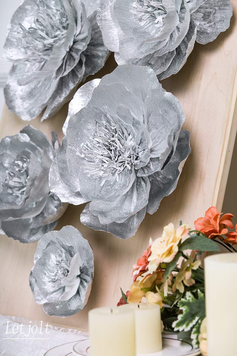 Letjolt Silver Paper Flowers Decoration for Wall Home Decor 3D Flowers Wedding Backdrop Birthday Party Baby Shower Bridal Shower(Set 6)
