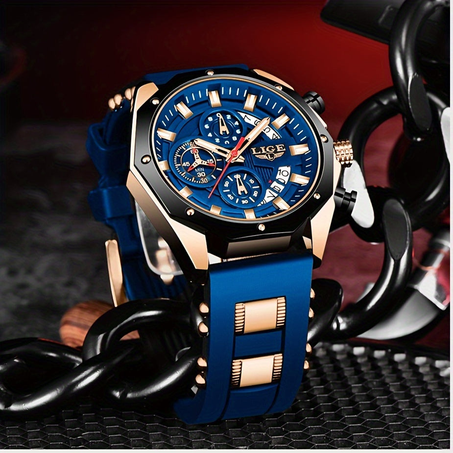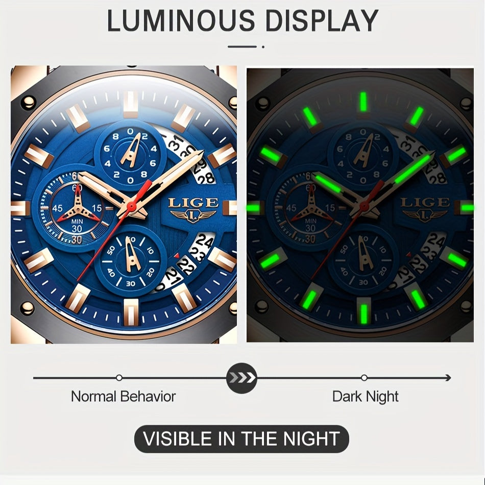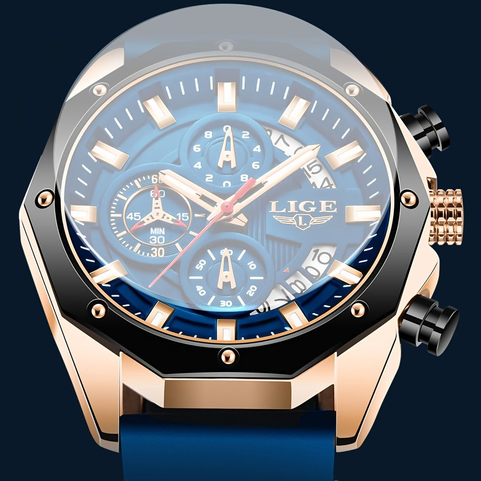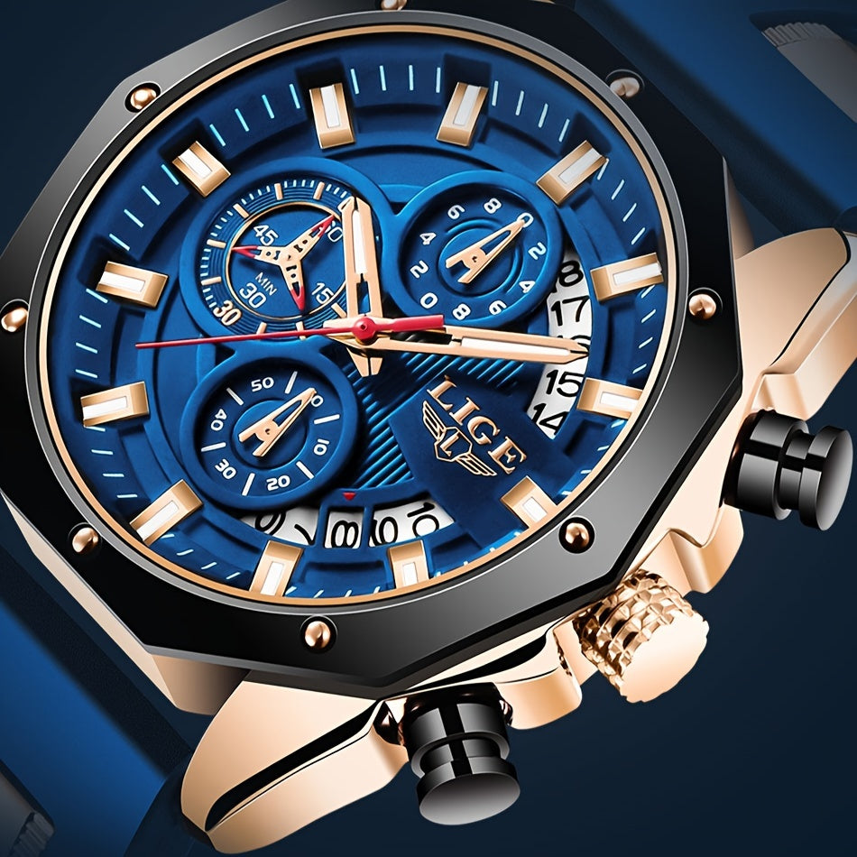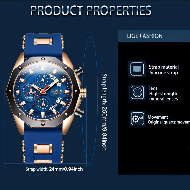 LIGE Casual Fashion Women'S Business Quartz Watch, Mineral lens/Fashion dial/Silicone strap/Luminous display, Chronograph Calendar Pointer Big Dial Sports Watches