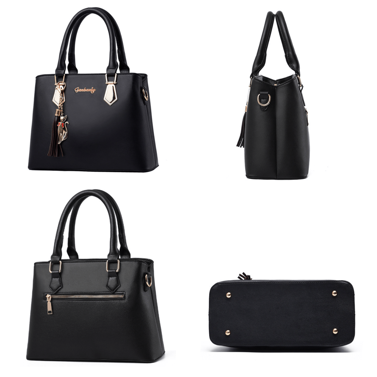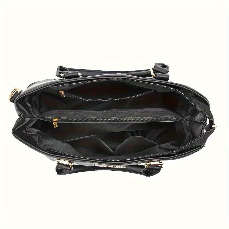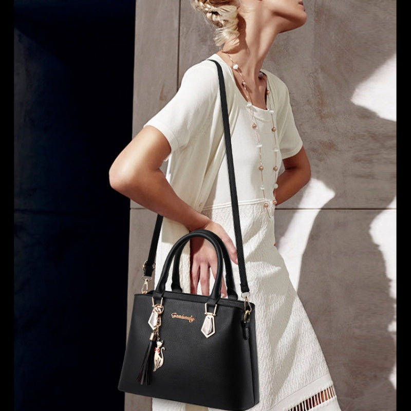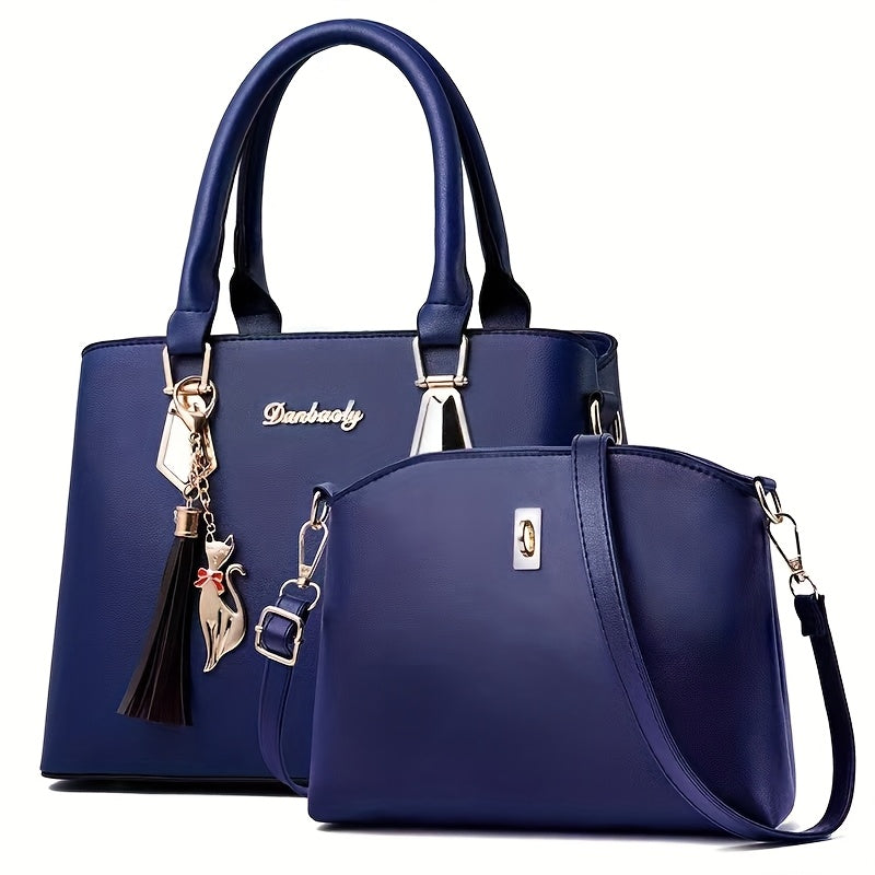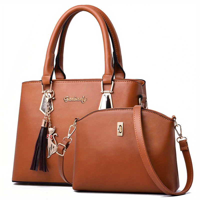 Lightweight PU 2pcs Fashionable Handbag - Women'S Shoulder Bag With Metal Kitten Pendant, Stain Resistant Crossbody Bag