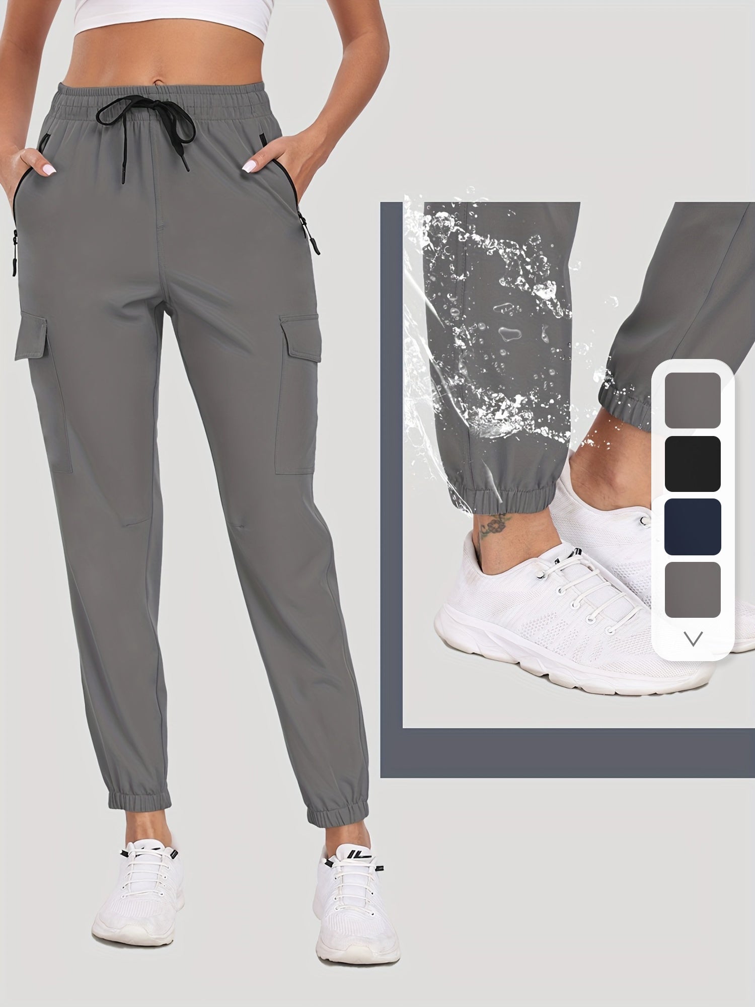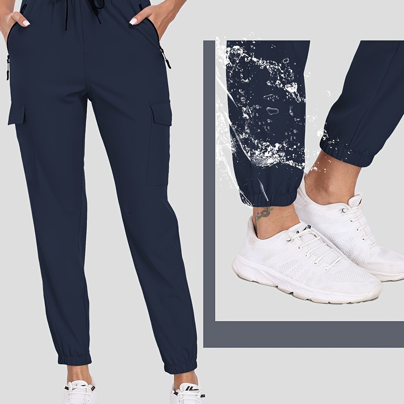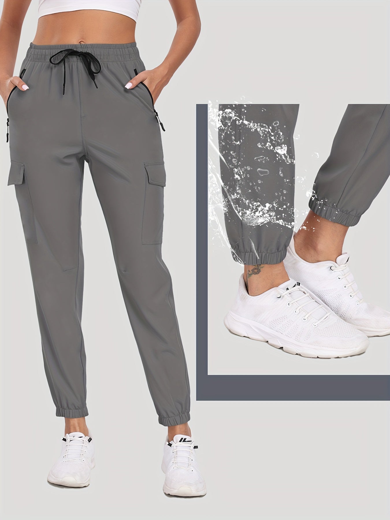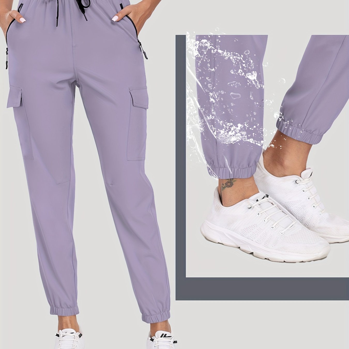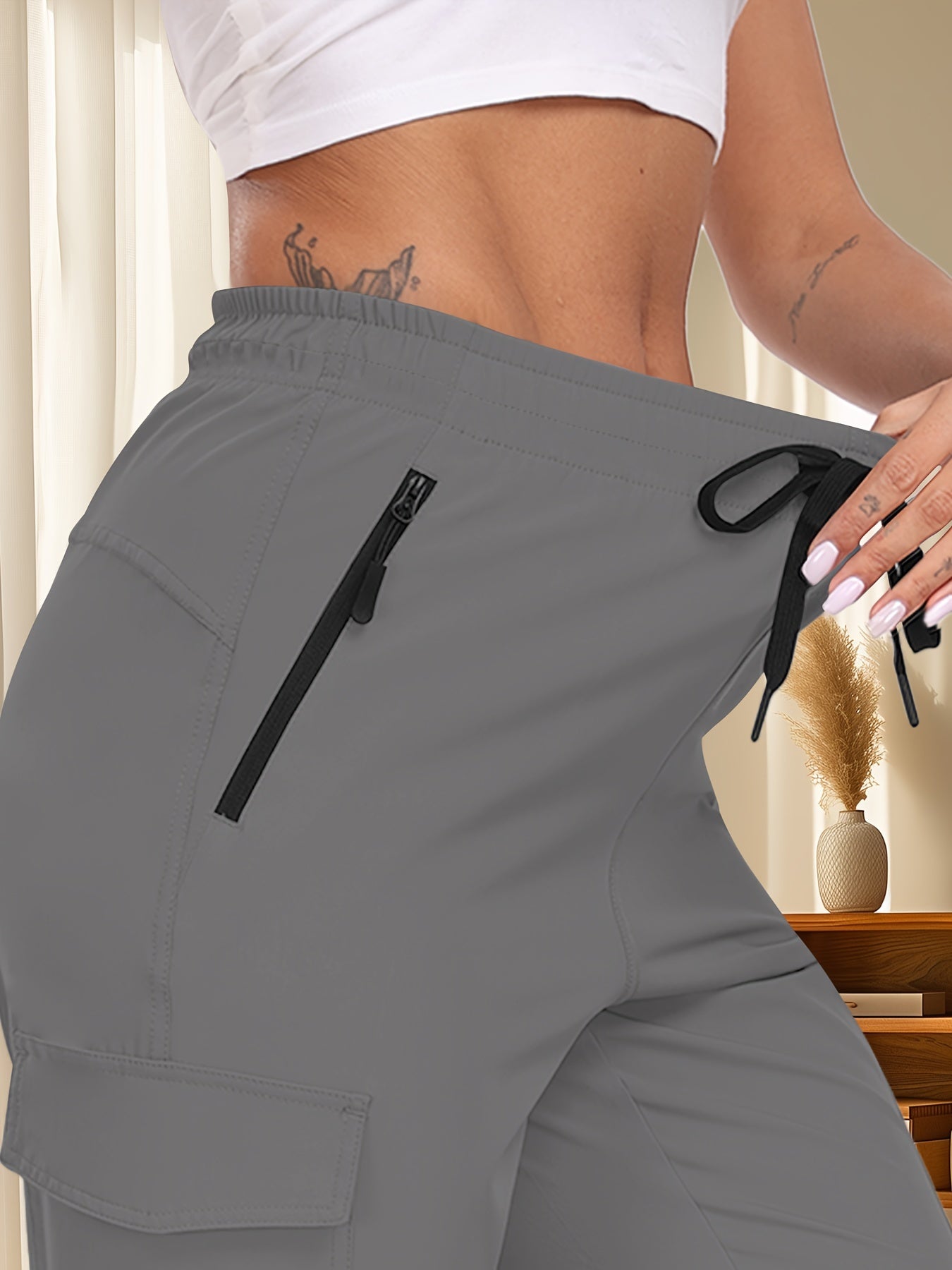 Lightweight Quick Dry Women's Cargo Hiking Pants Joggers with Zipper Pockets and Elastic Waist for Sports Leisure