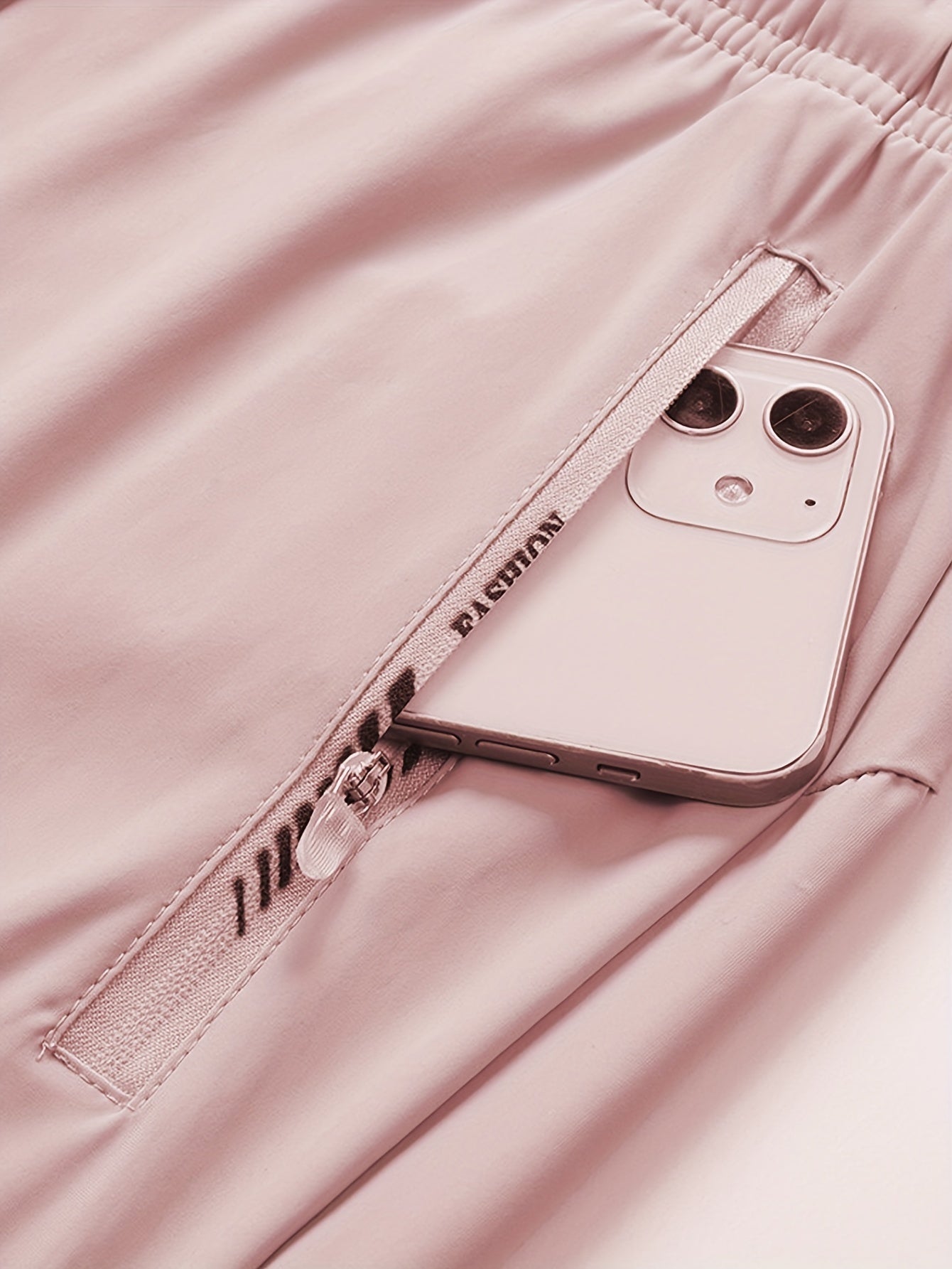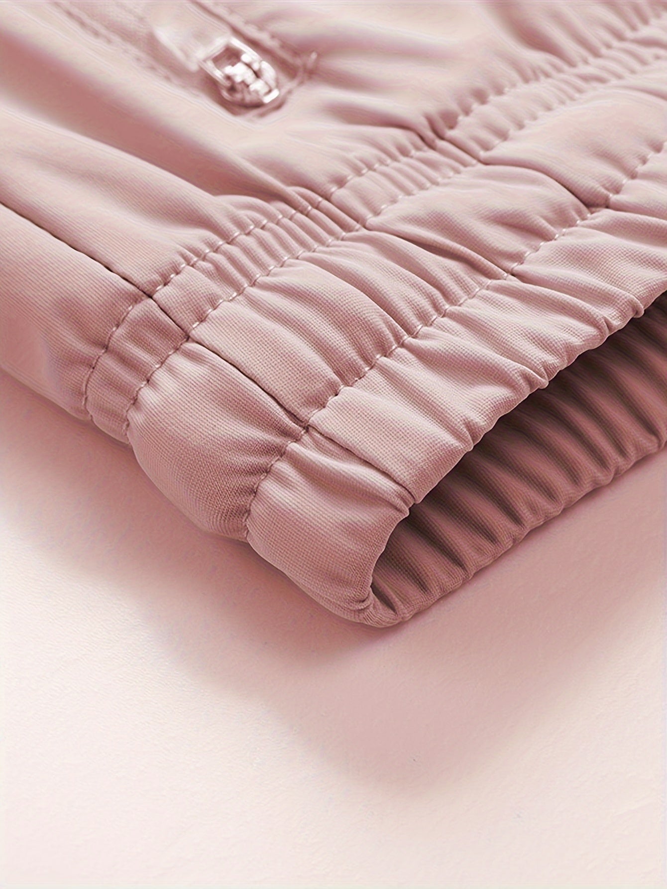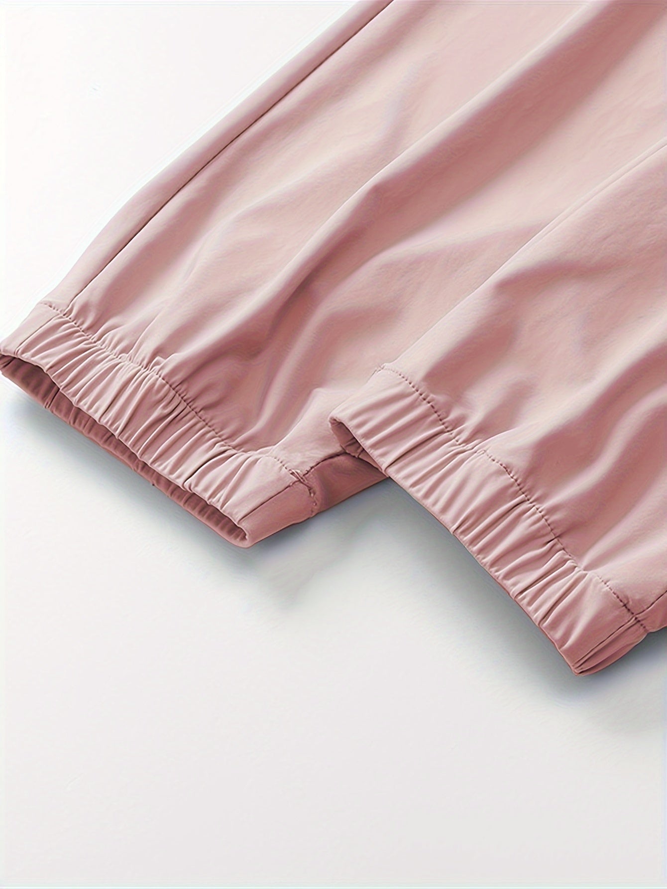 Lightweight Solid Color Nylon Joggers - Women's Sports Pants with Elastic Waistband and Pockets for Summer Running and Hiking