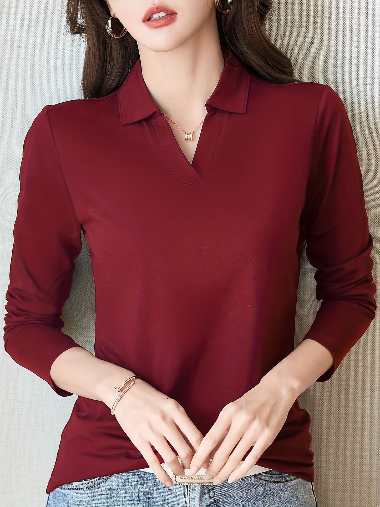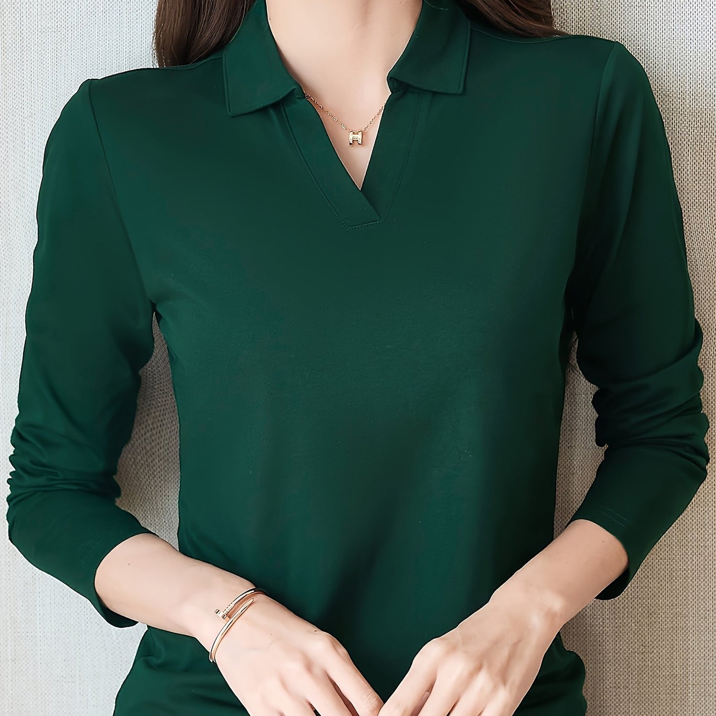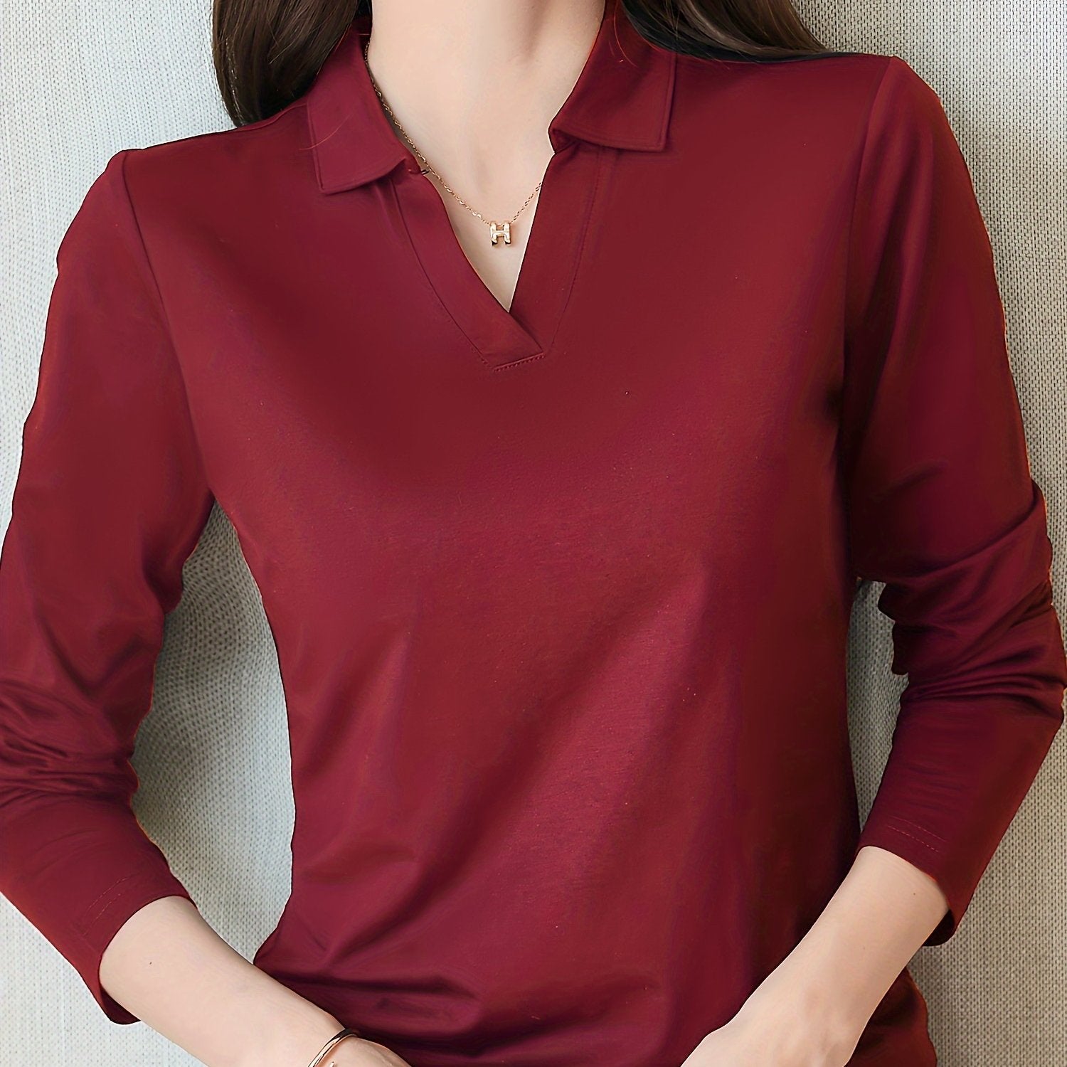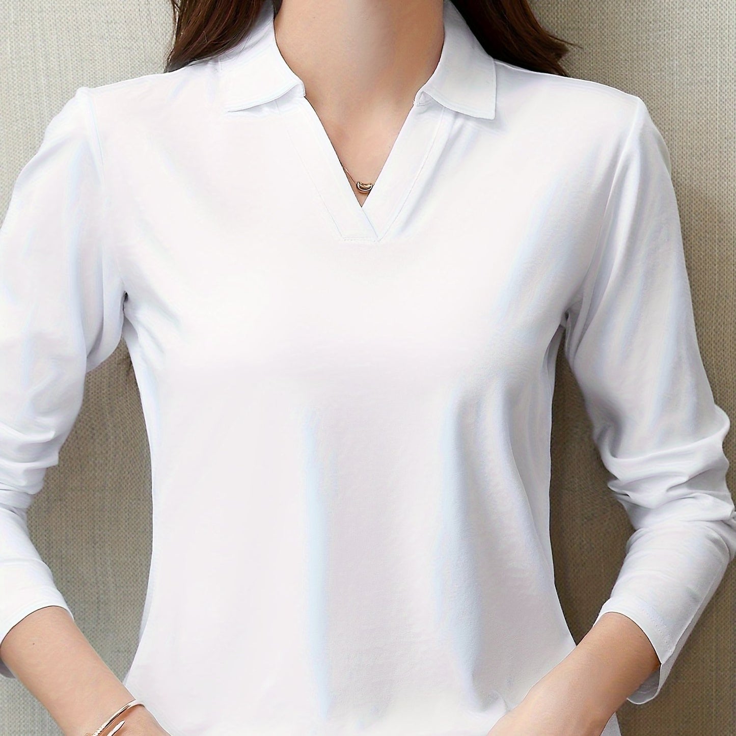 Long Sleeve Solid Color Collared Elegant Blouse for Spring & Fall, Women's Clothing