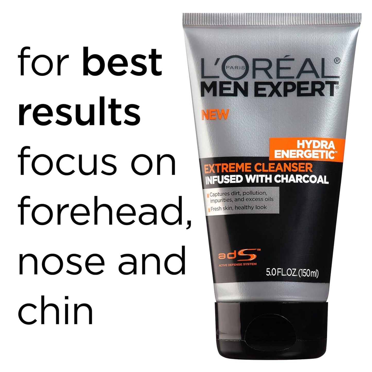 L'Oreal Paris Men Expert Hydra Energetic Daily Facial Cleanser with Charcoal, 2 ct.