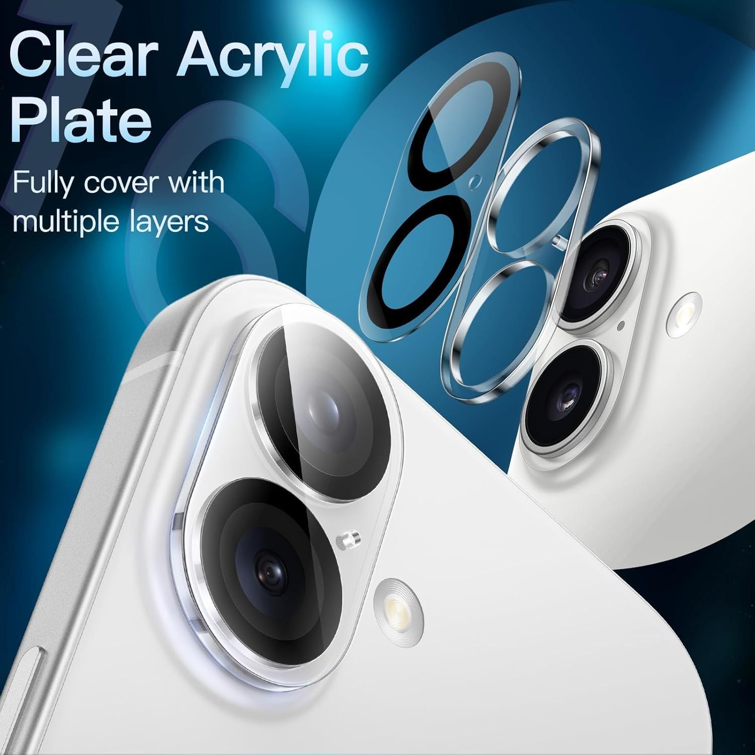 Lot de 3 Protecteurs de Lentille de Caméra Transparent pour iPhone 16/16 Pro/16 Plus/16 Pro Max, Dureté 9H Résistant aux Rayures, Film de Protection de Lentille de Caméra Haute Définition