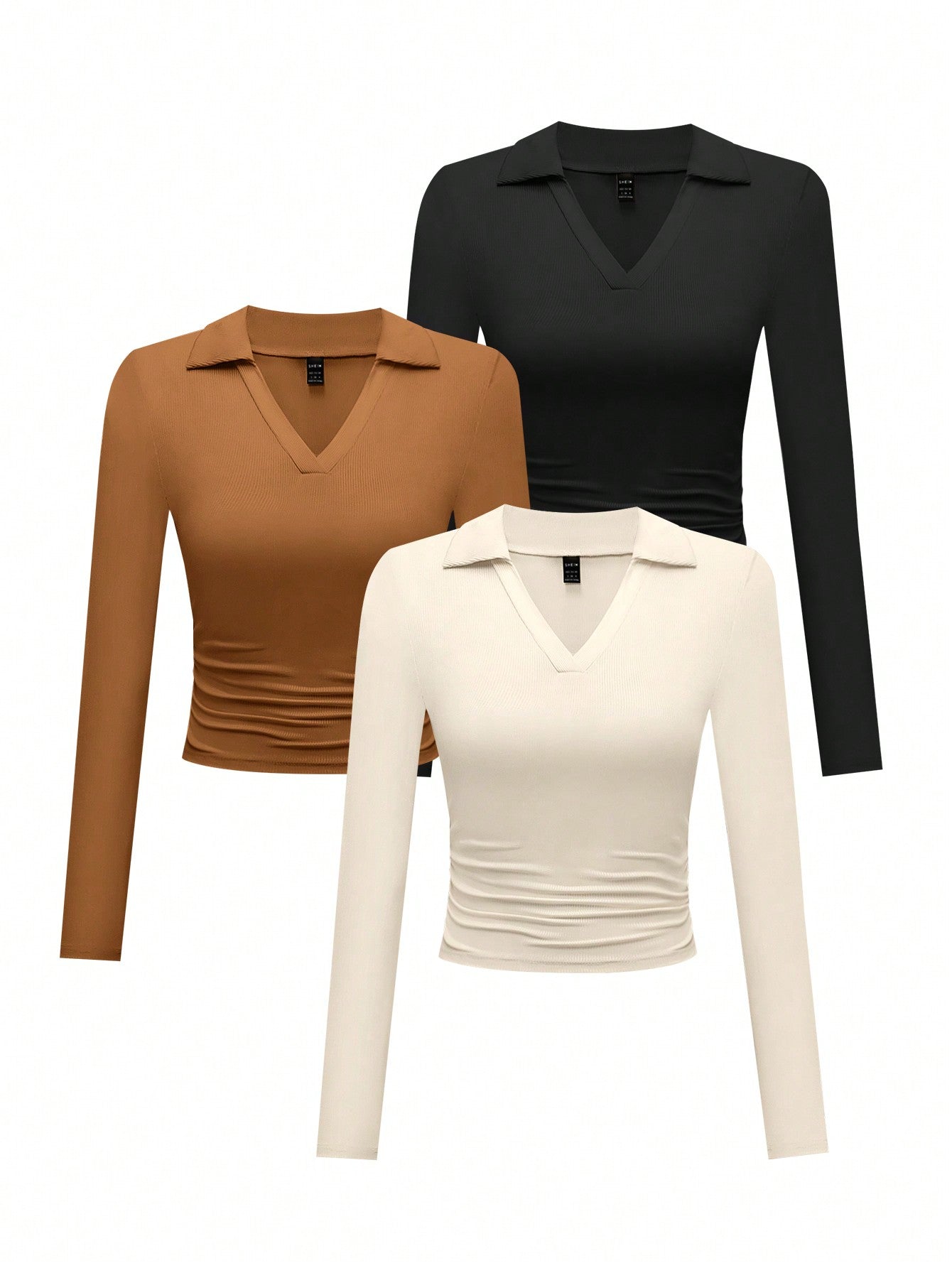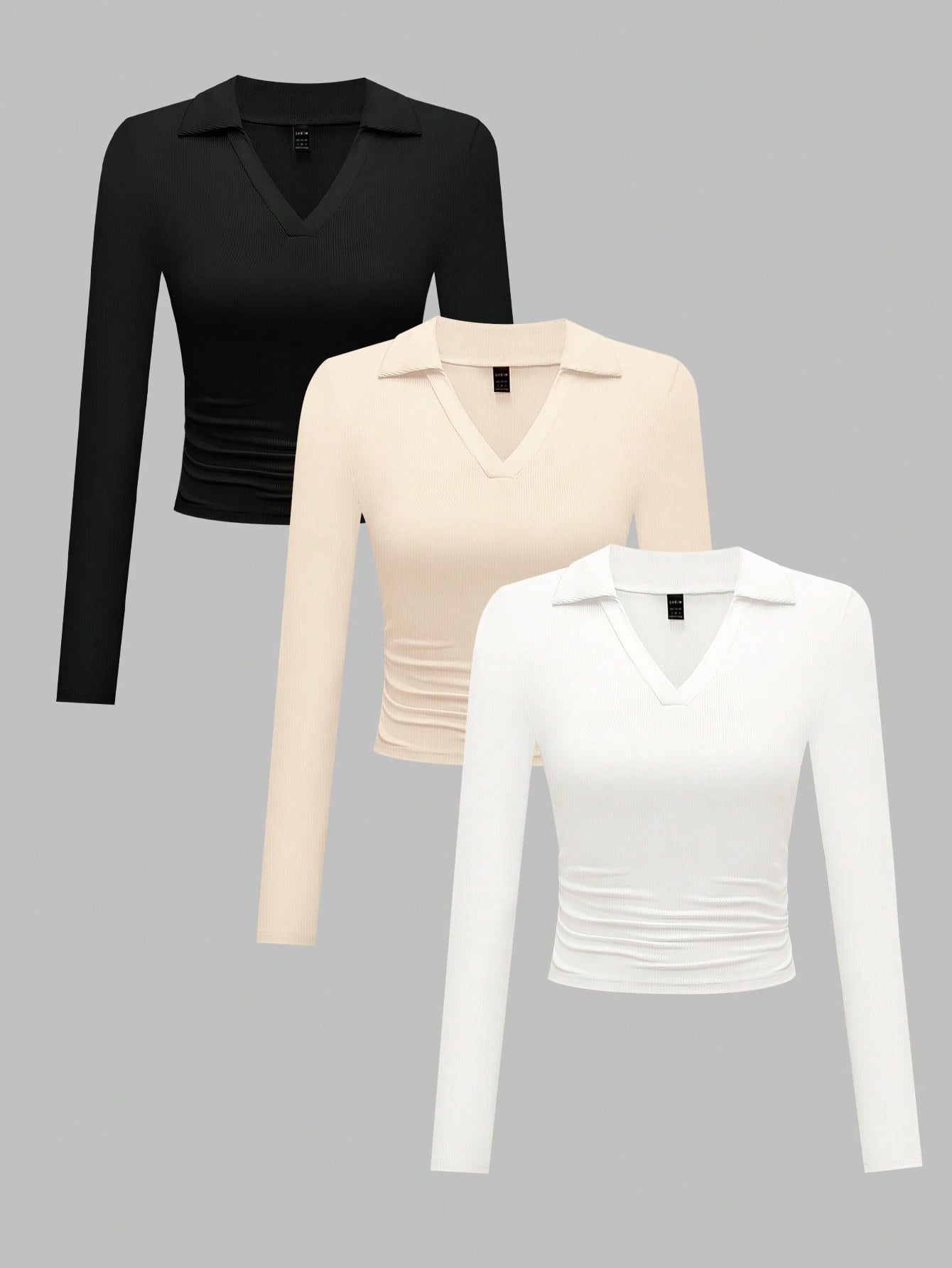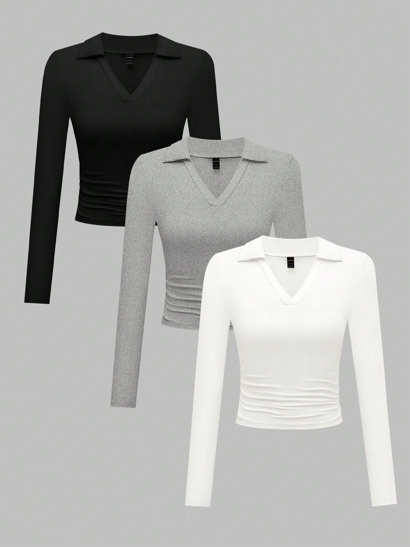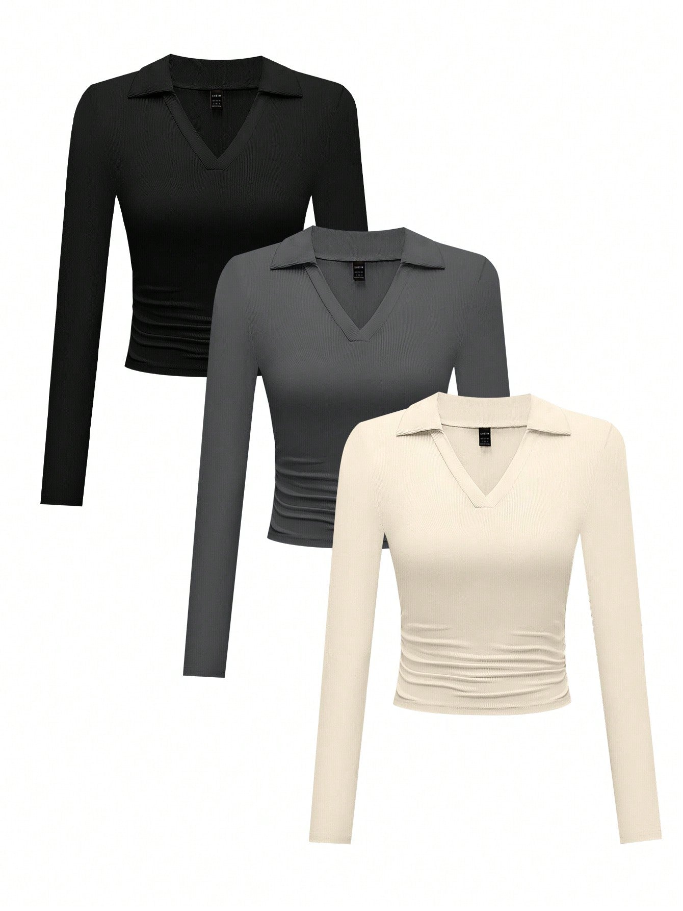 LUNE 3pcs V-Collar Long-Sleeved T-Shirt