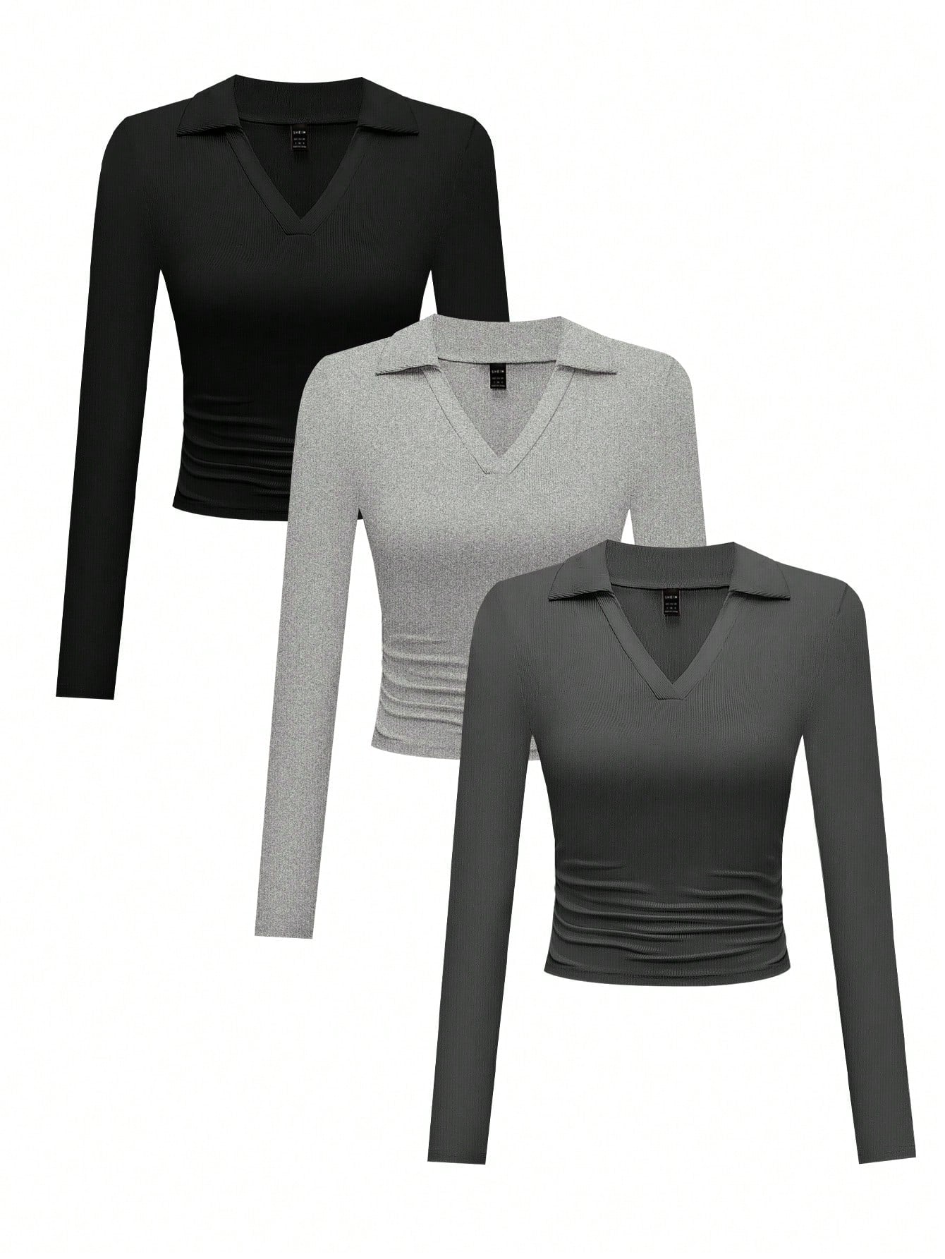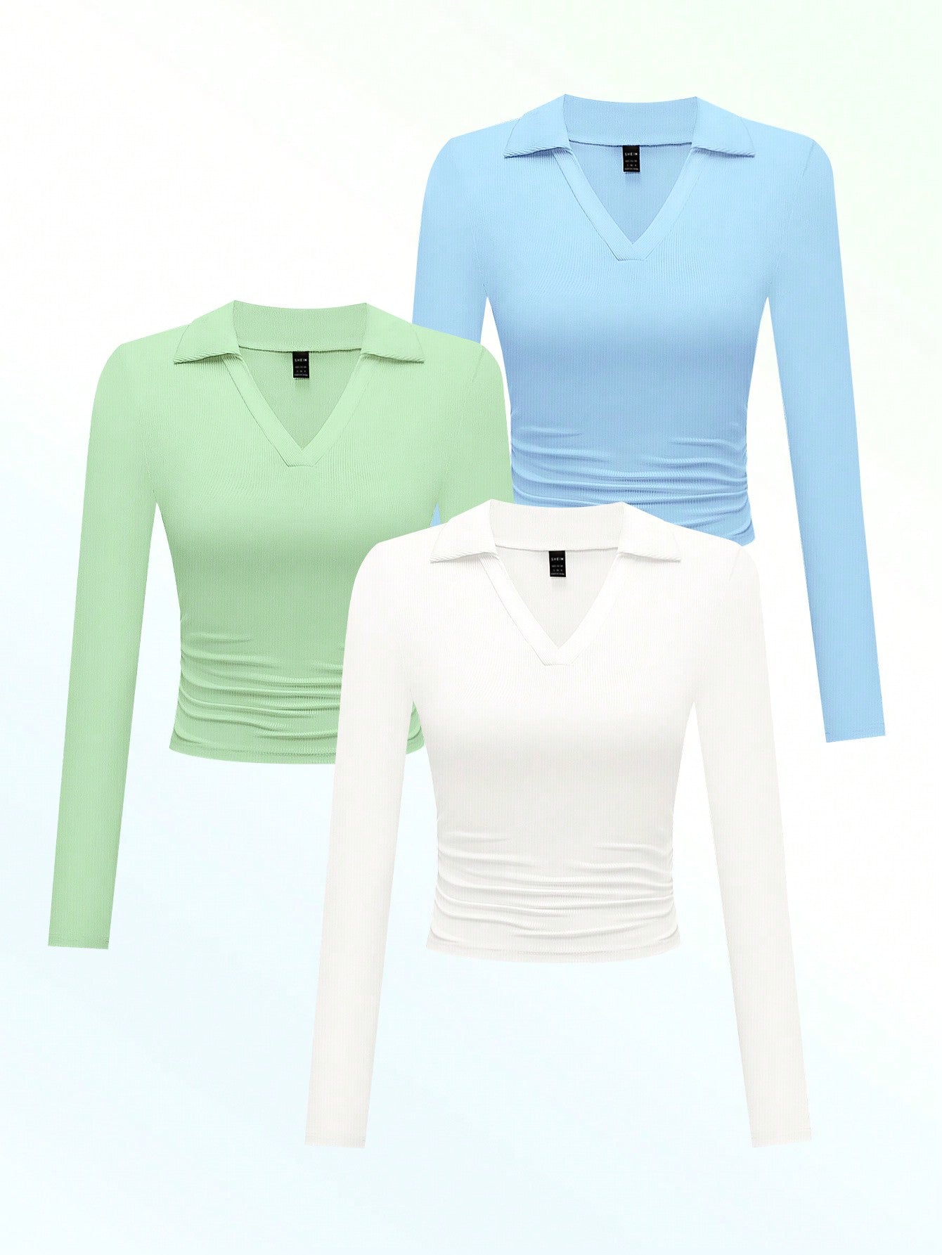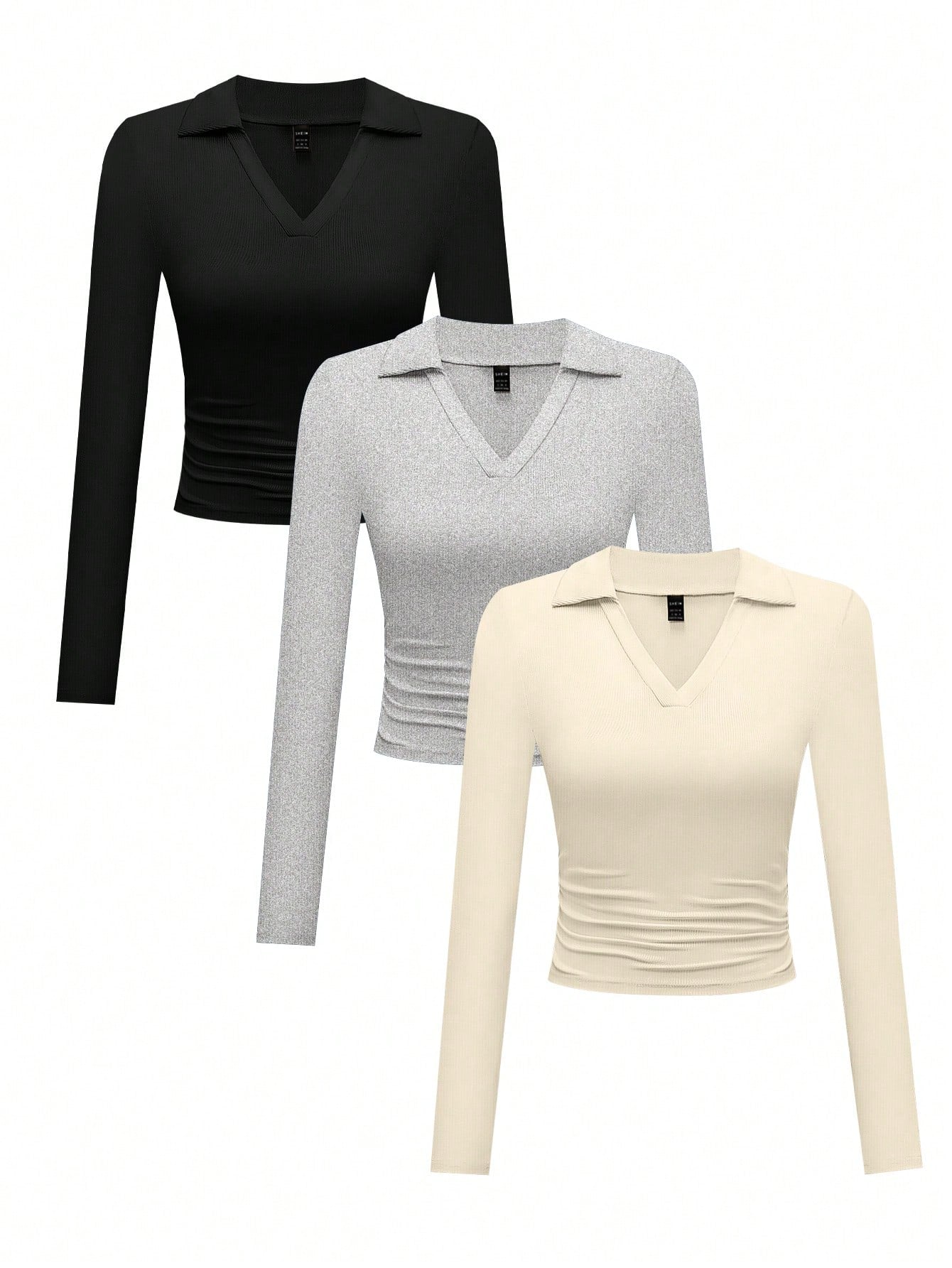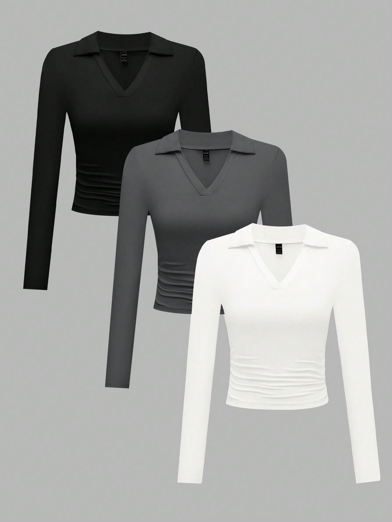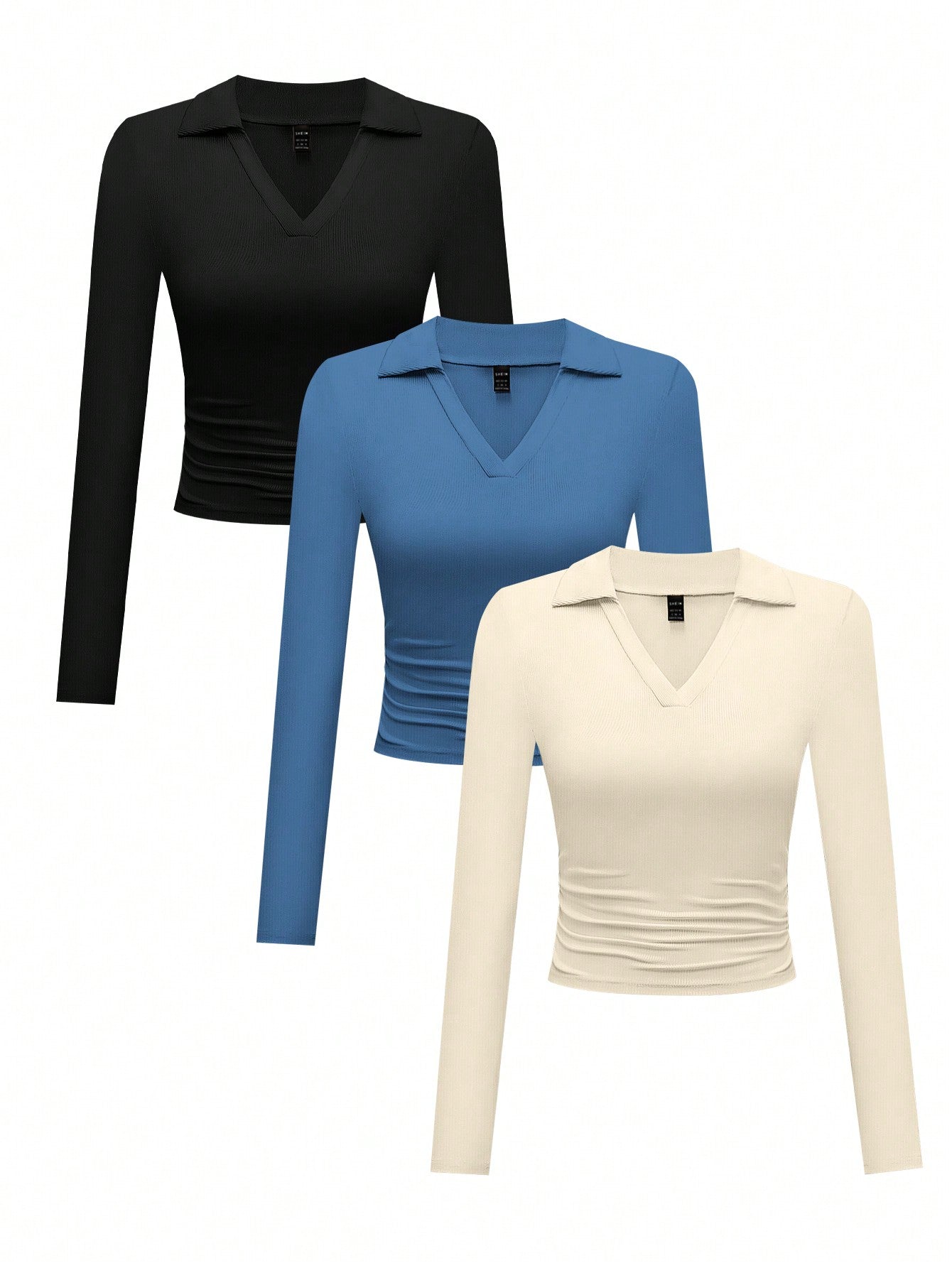 LUNE 3pcs V-Collar Long-Sleeved T-Shirt
