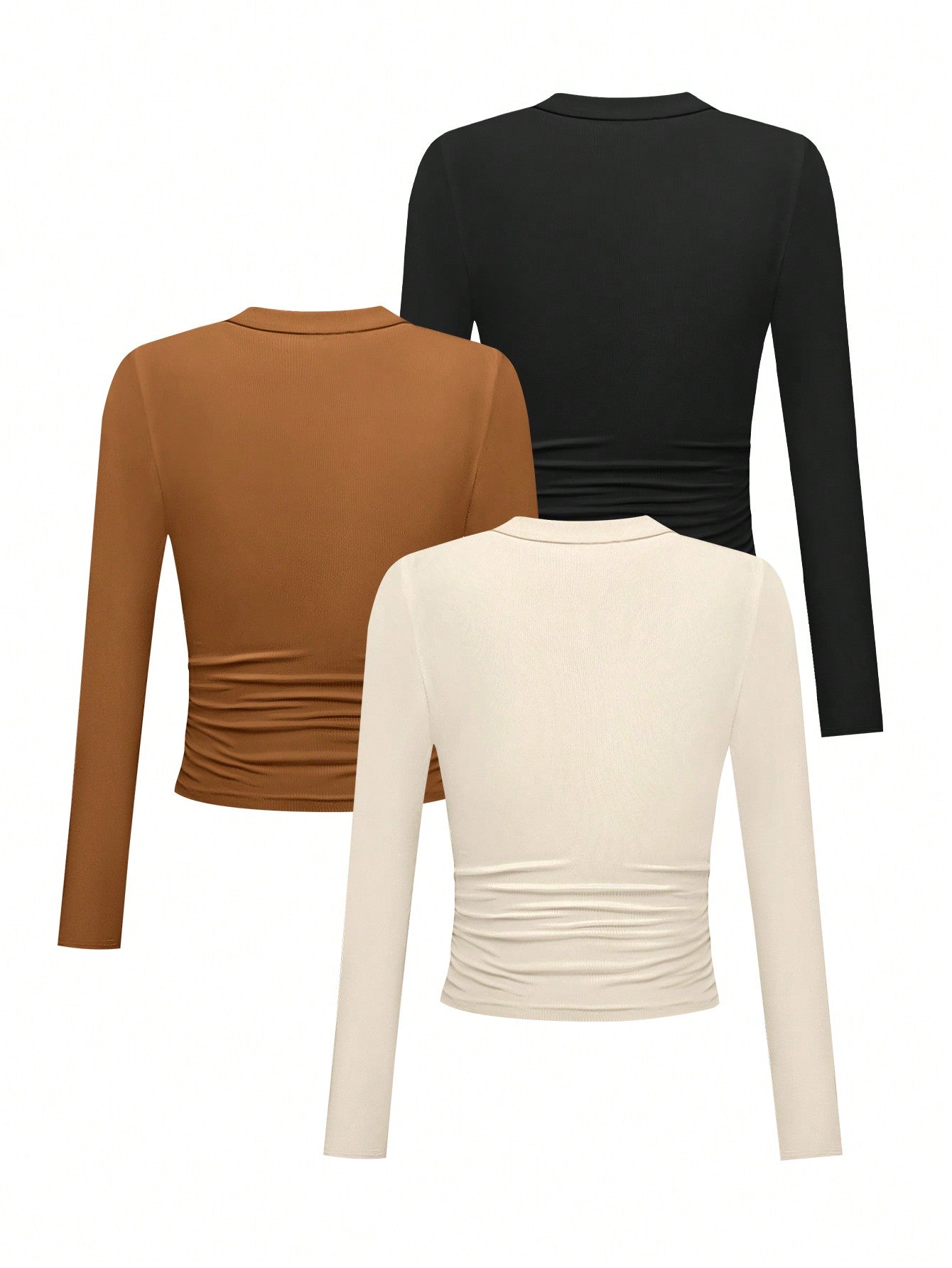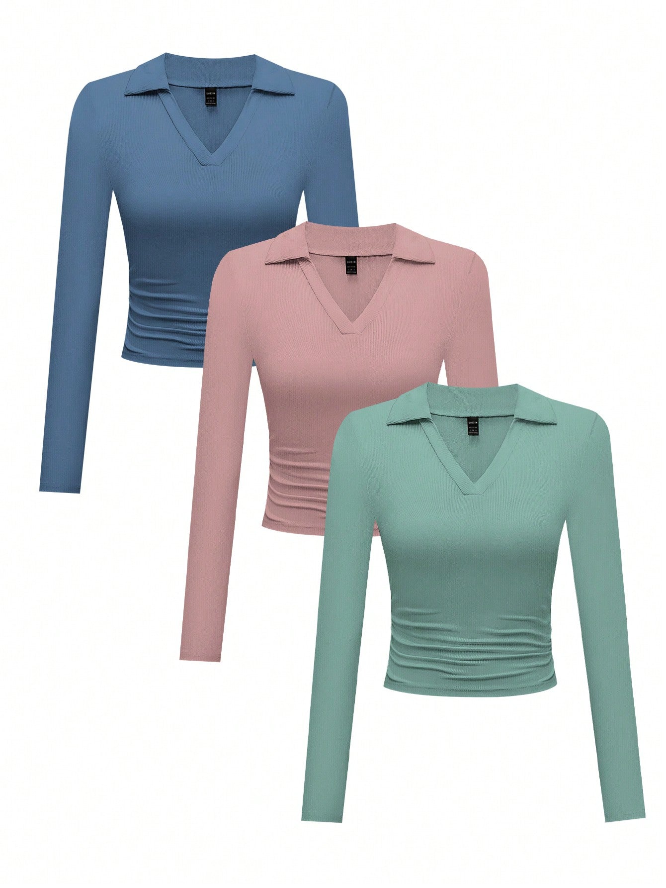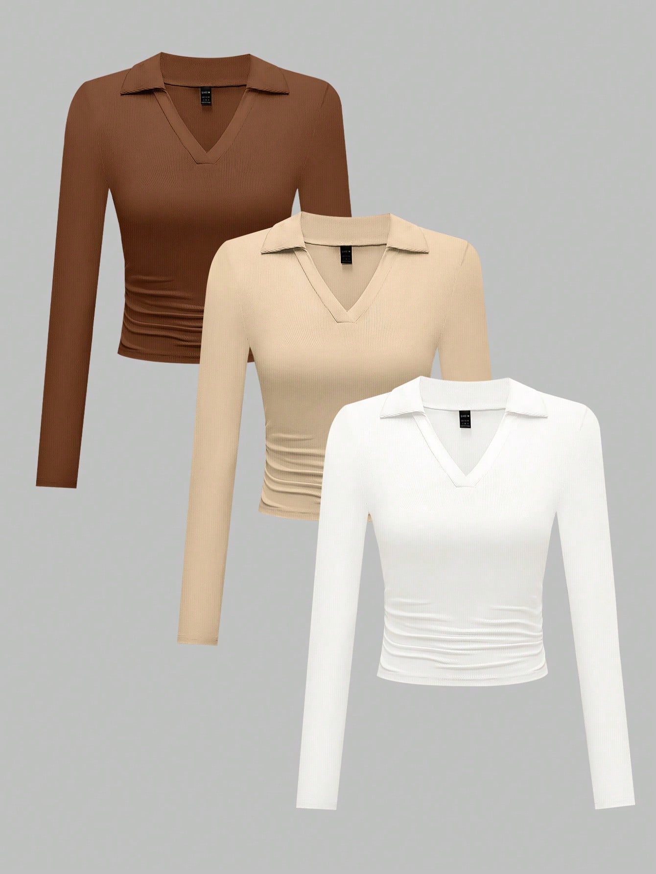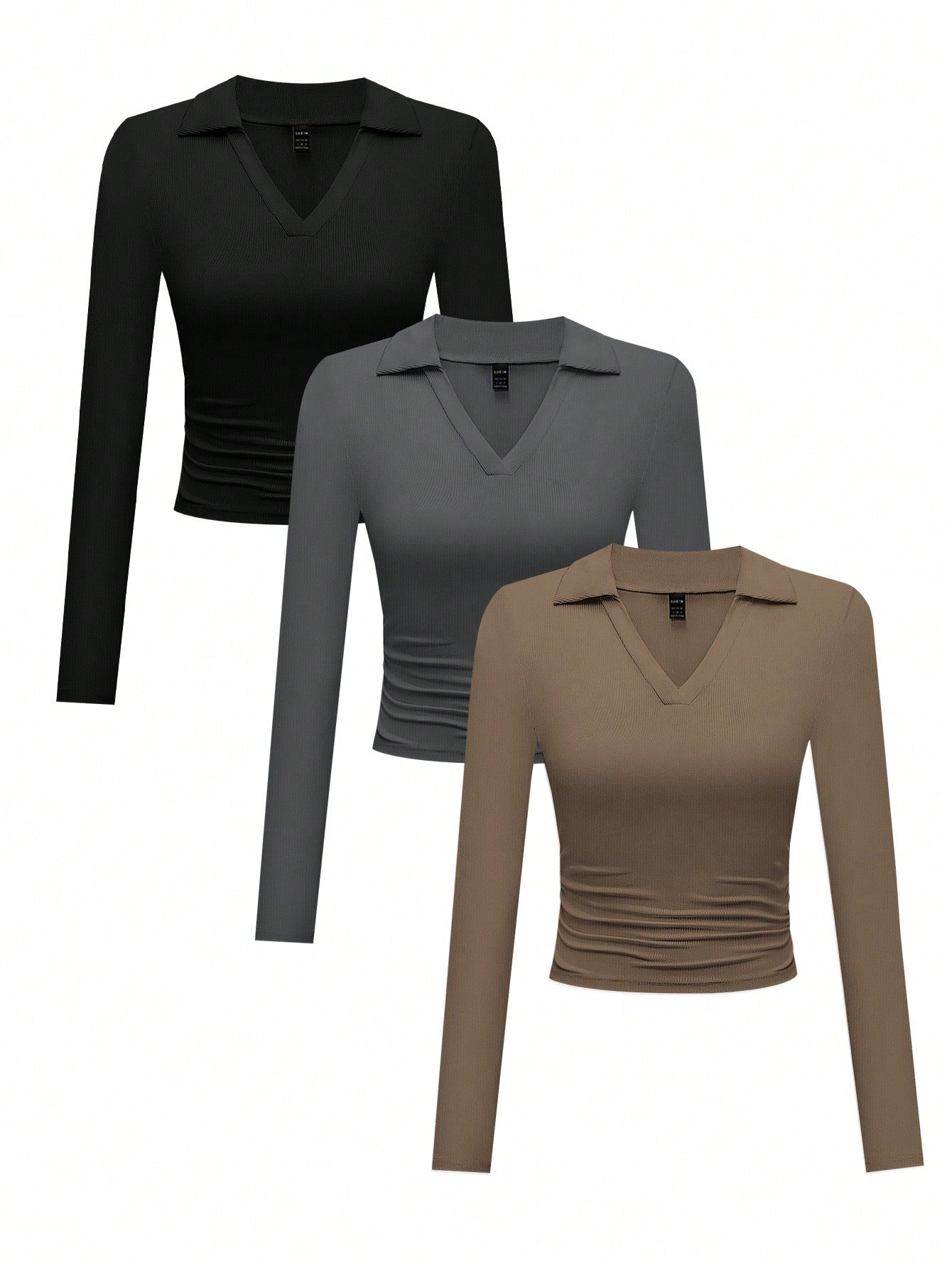 LUNE 3pcs V-Collar Long-Sleeved T-Shirt
