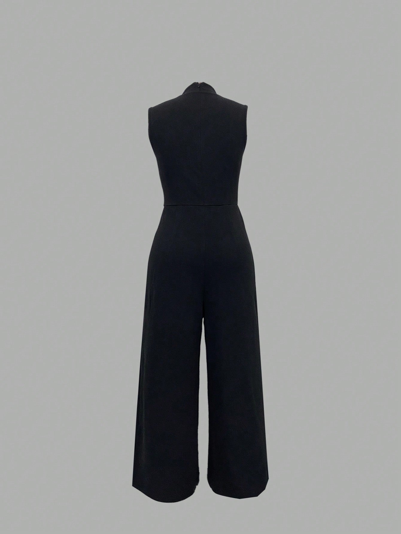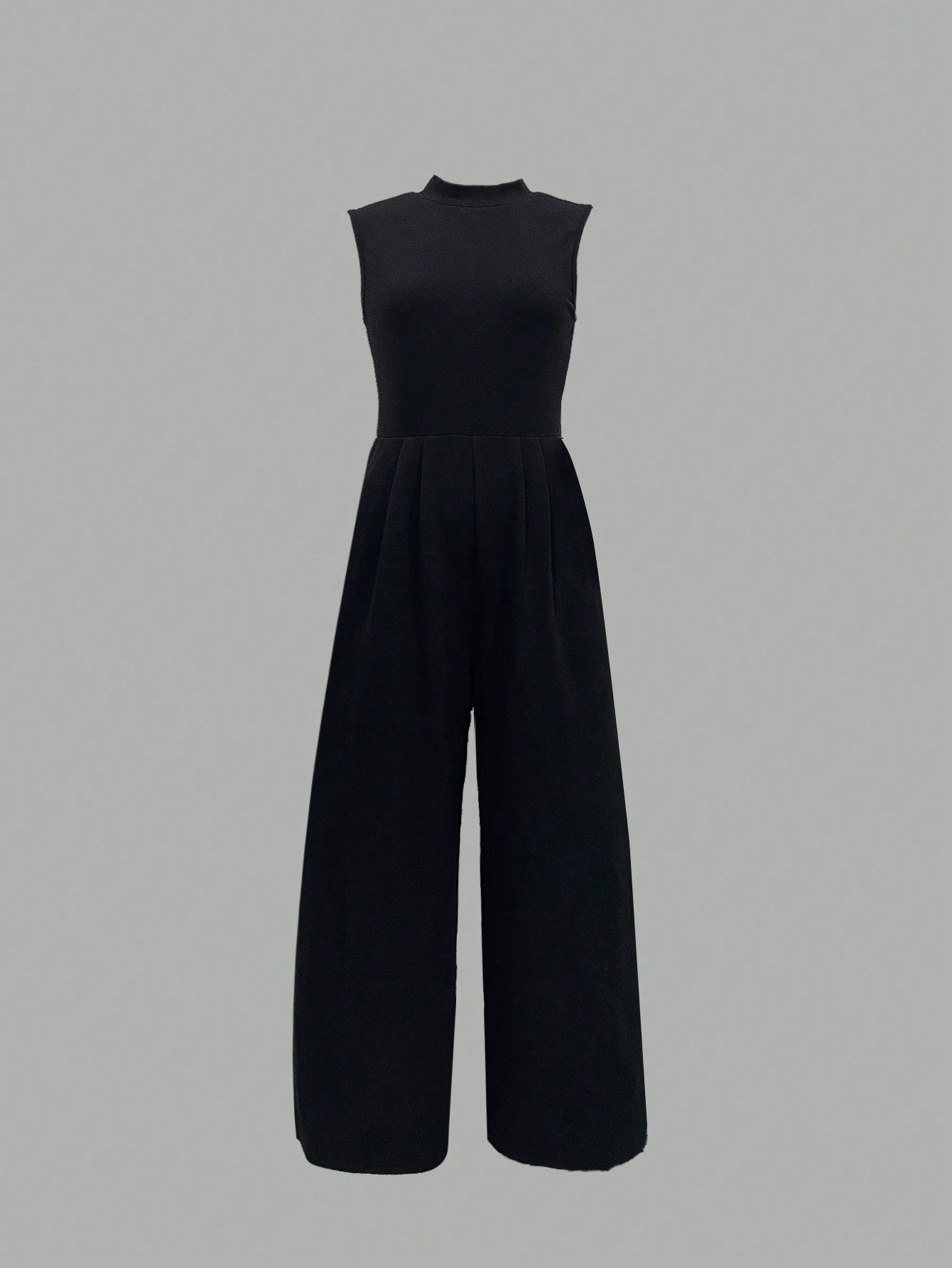 LUNE Casual Solid Color Sleeveless Stand Collar Pleated Jumpsuit