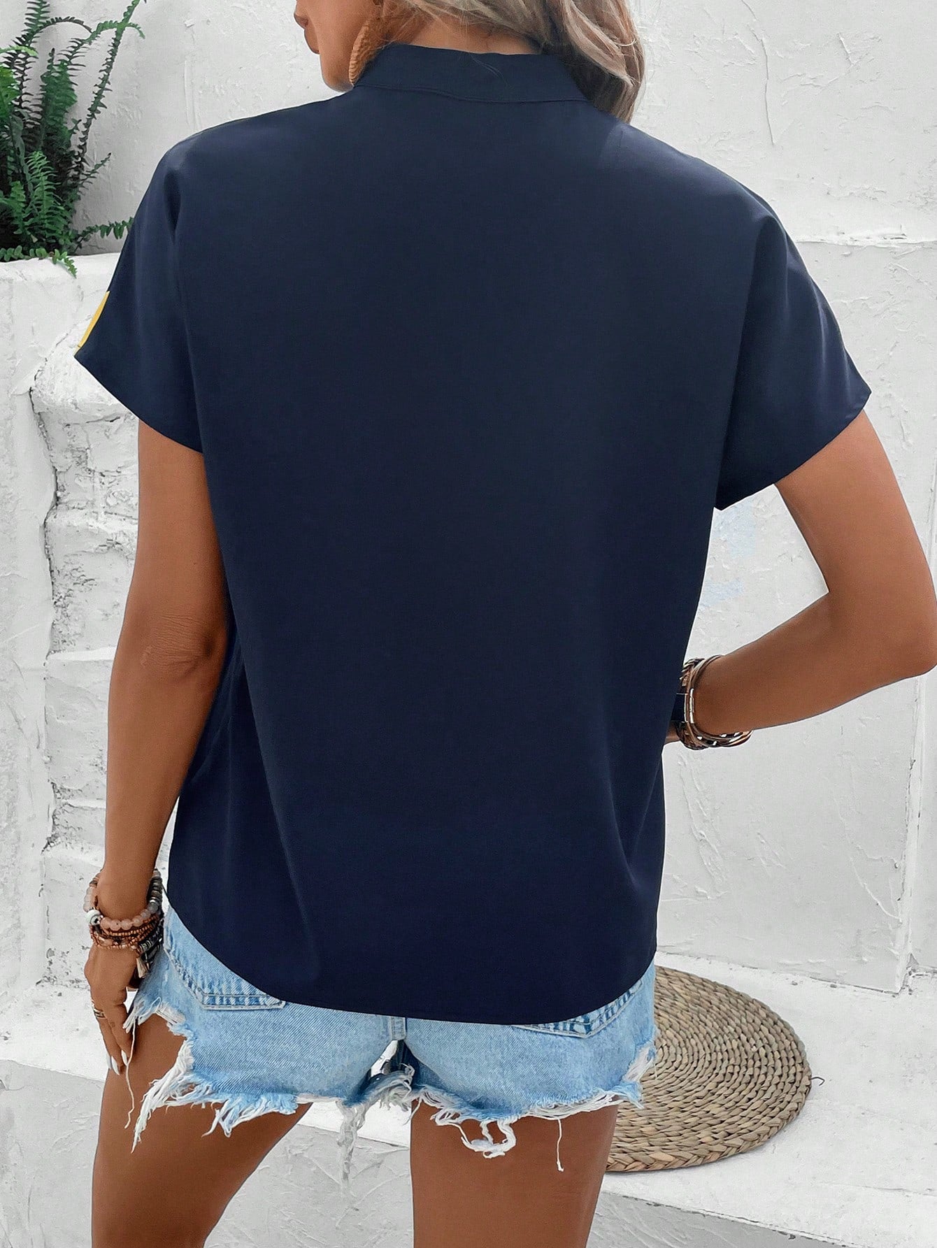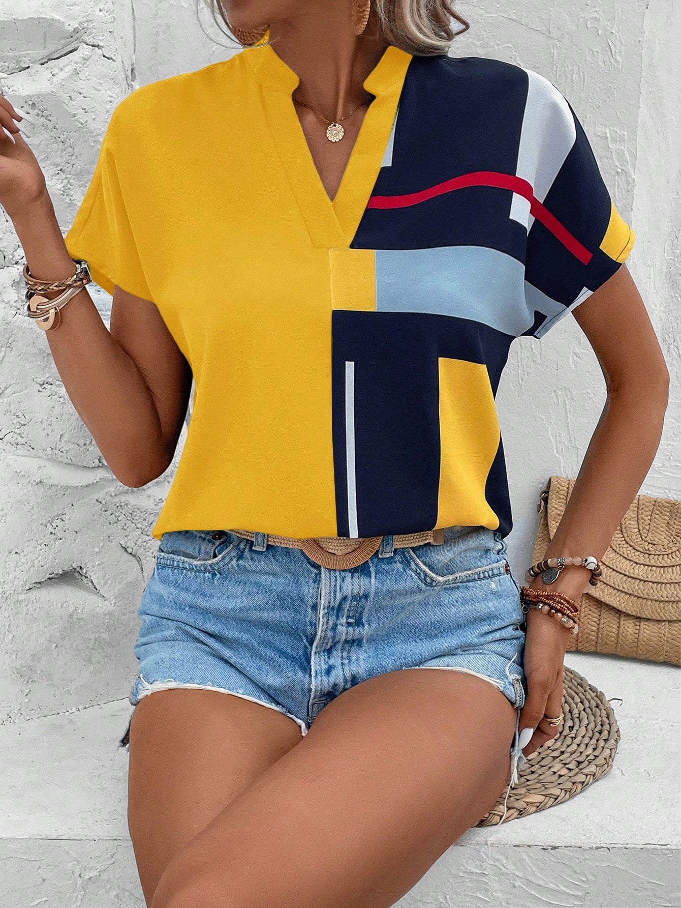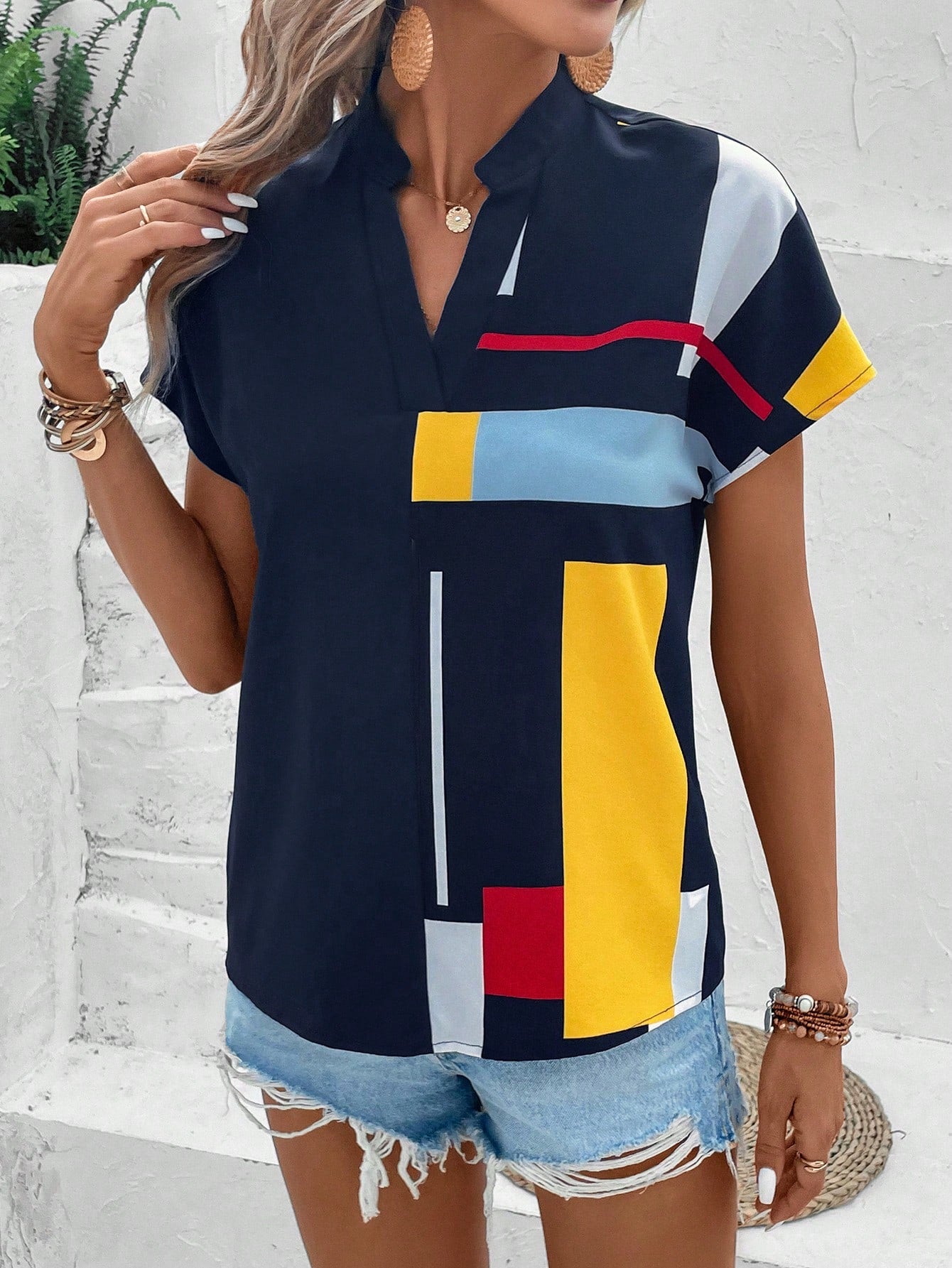 LUNE Geo Print Batwing Sleeve Popover Blouse,Short Sleeve Tops
