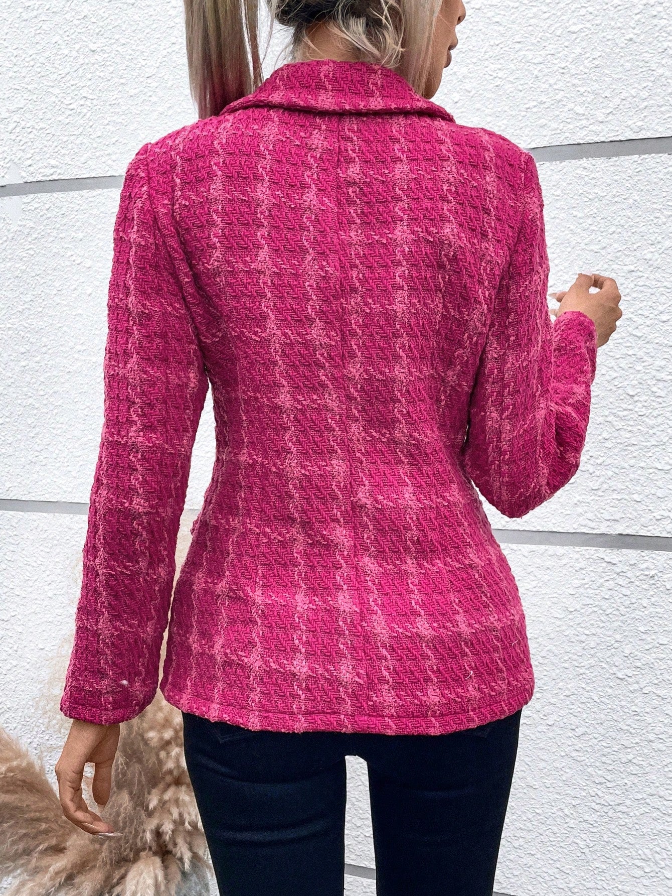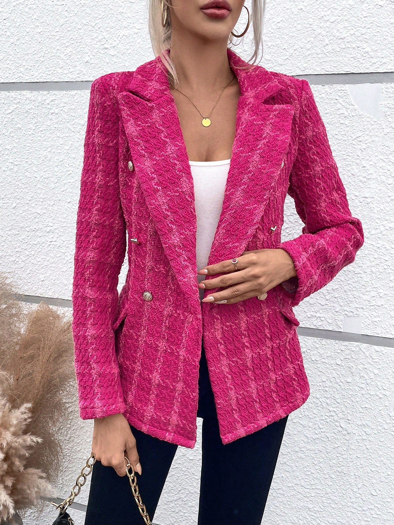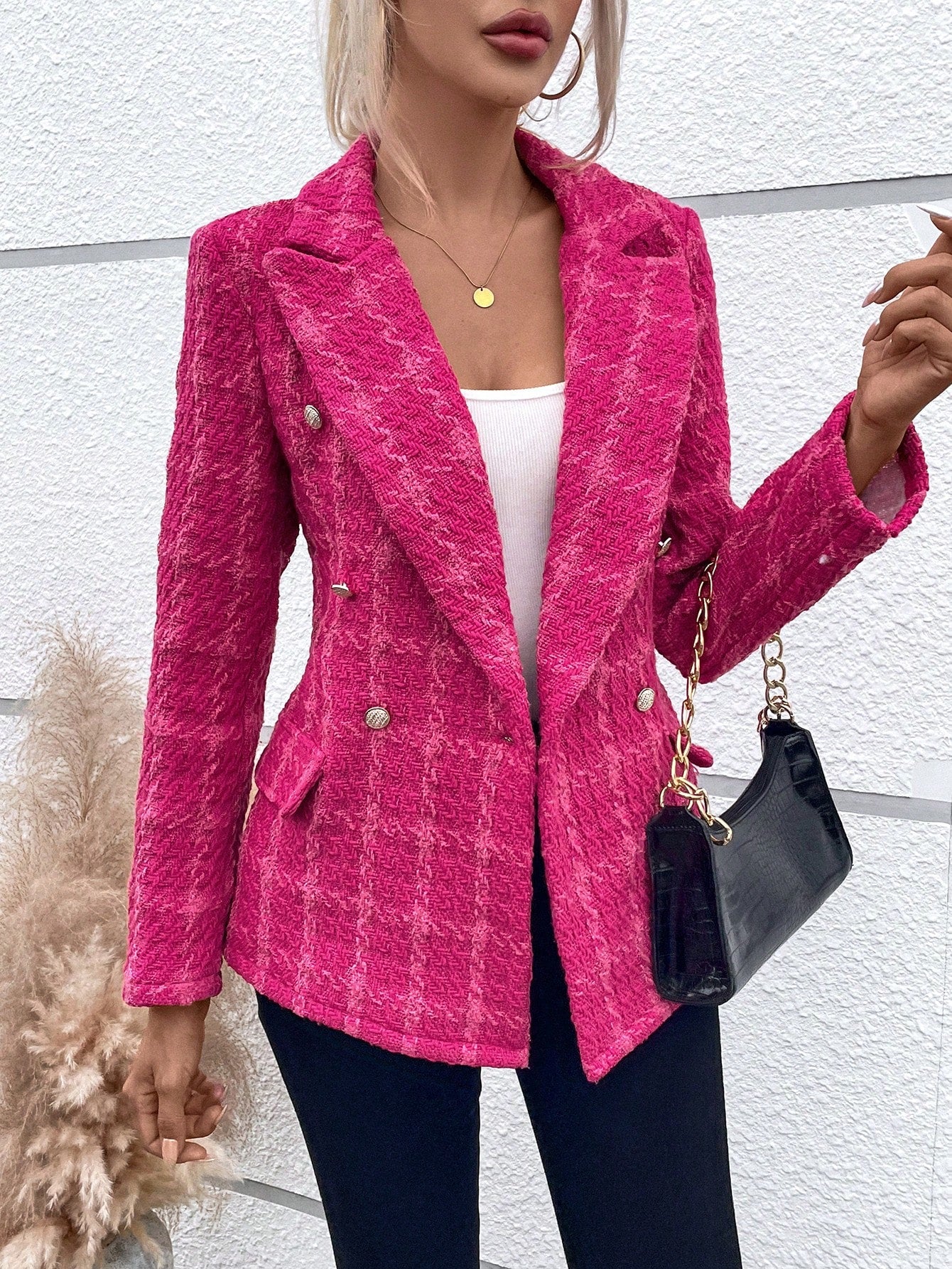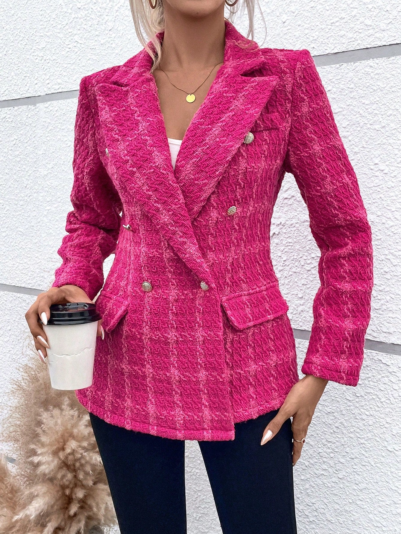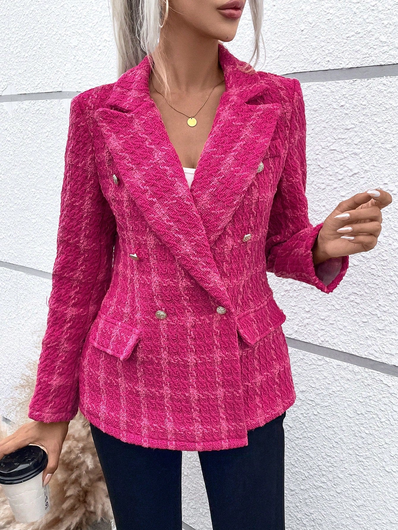 LUNE Plaid Pattern Double Breasted Blazer