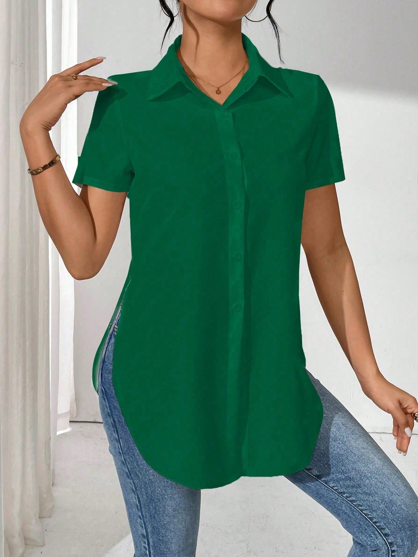 LUNE Women's Lapel Short Sleeve Shirt,Short Sleeve Tops