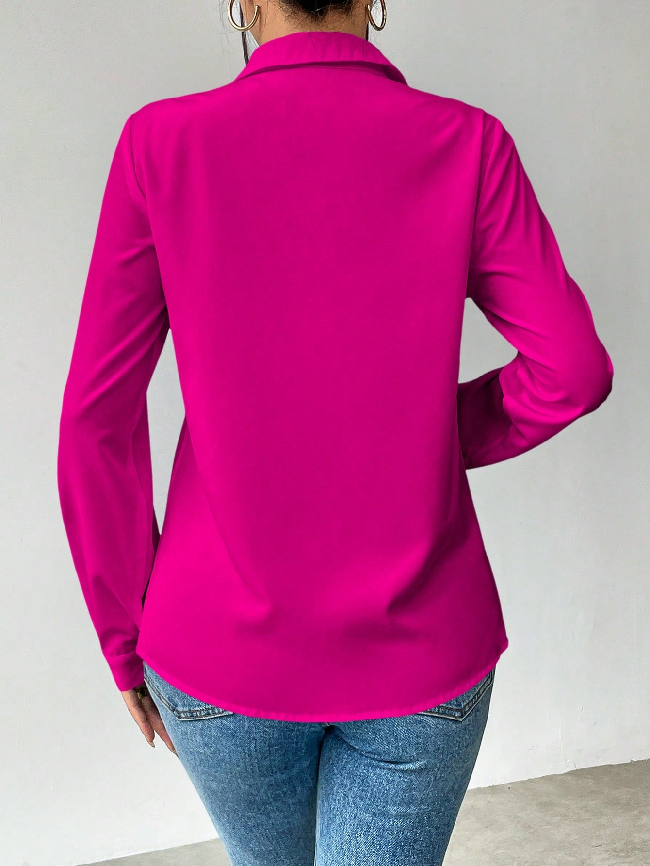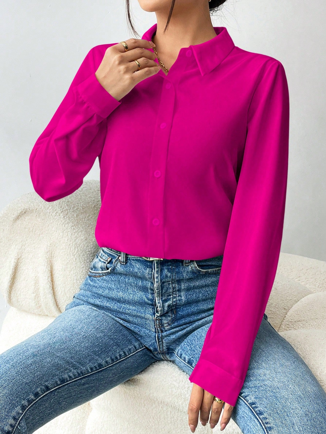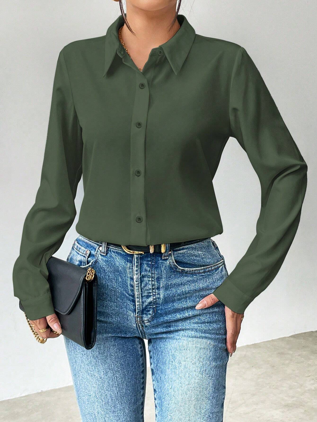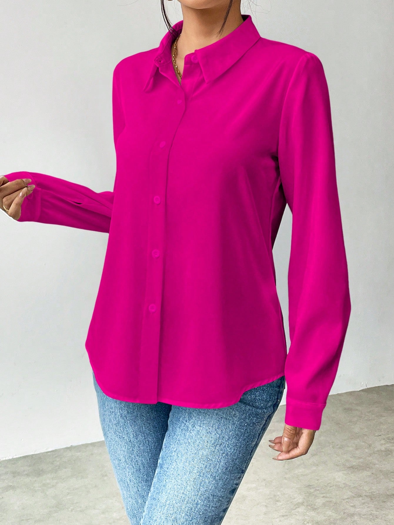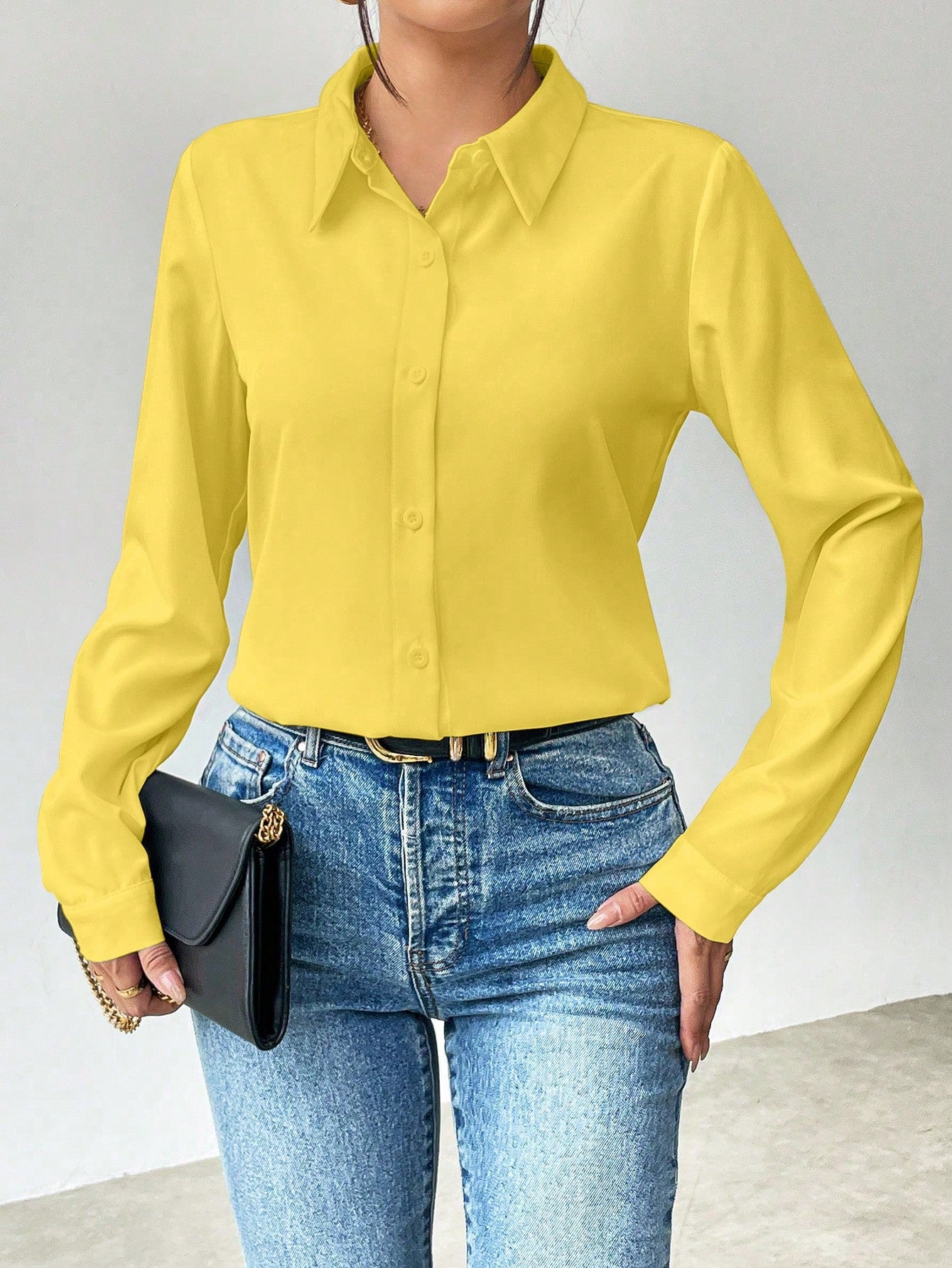 LUNE Women's Solid Color Minimalist Buttoned Shirt,Long Sleeve Tops
