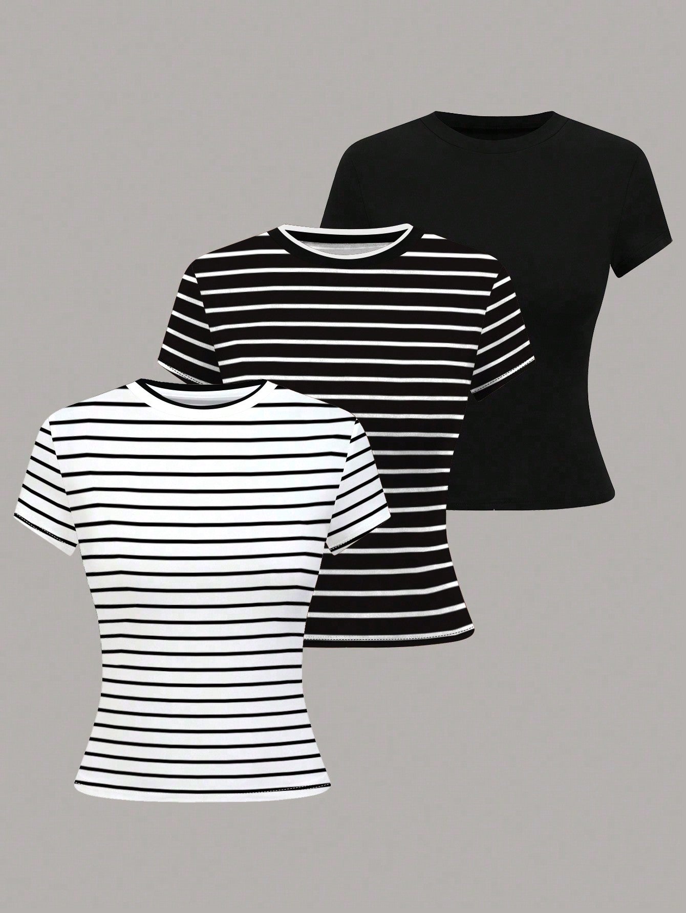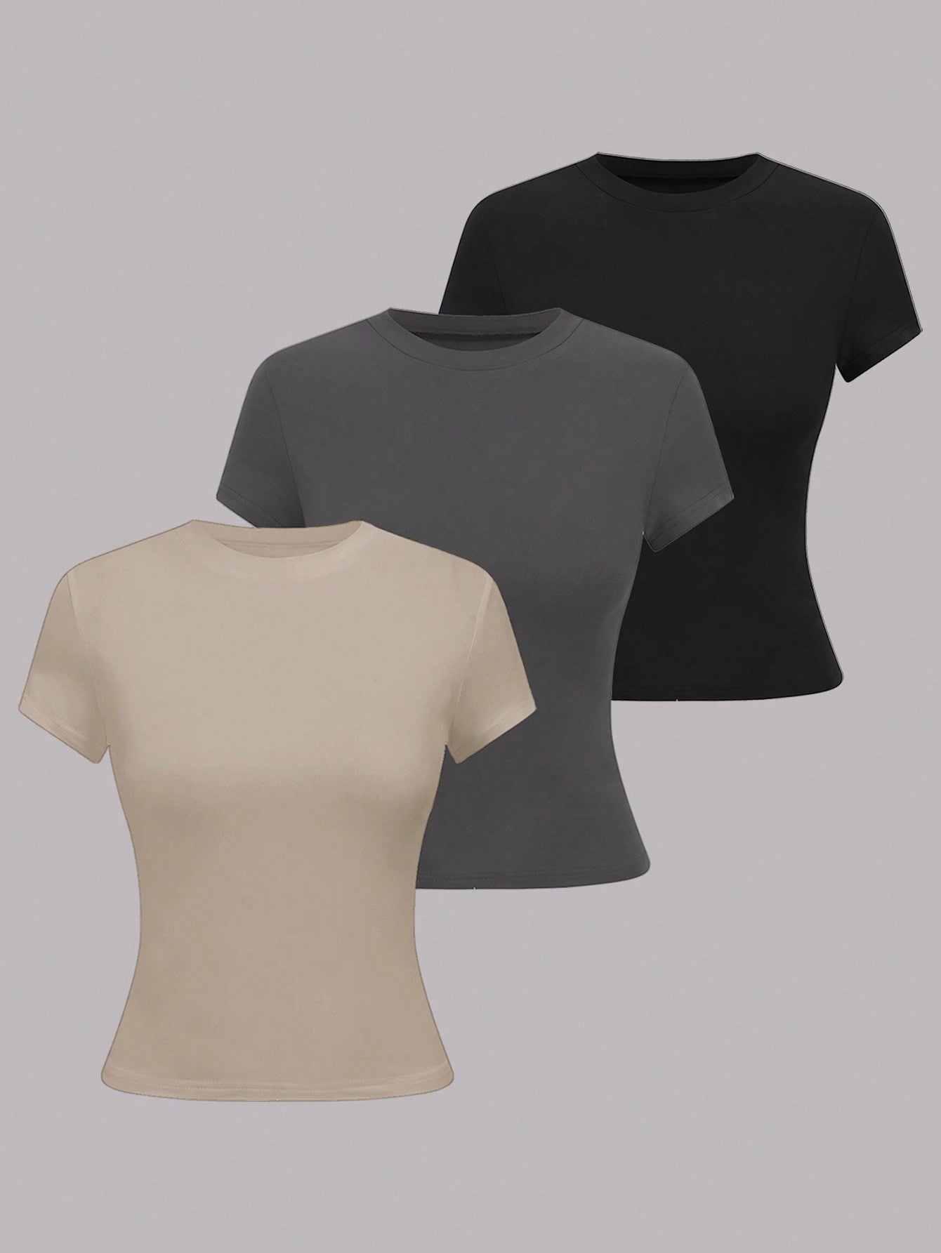 LUNE Women's Solid Color Minimalist Regular Crew Neck Short Sleeve T-Shirt