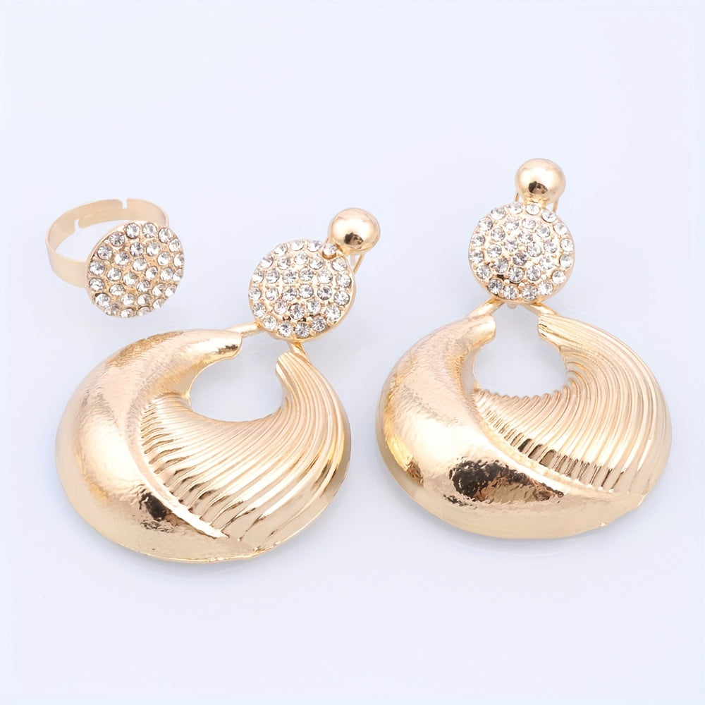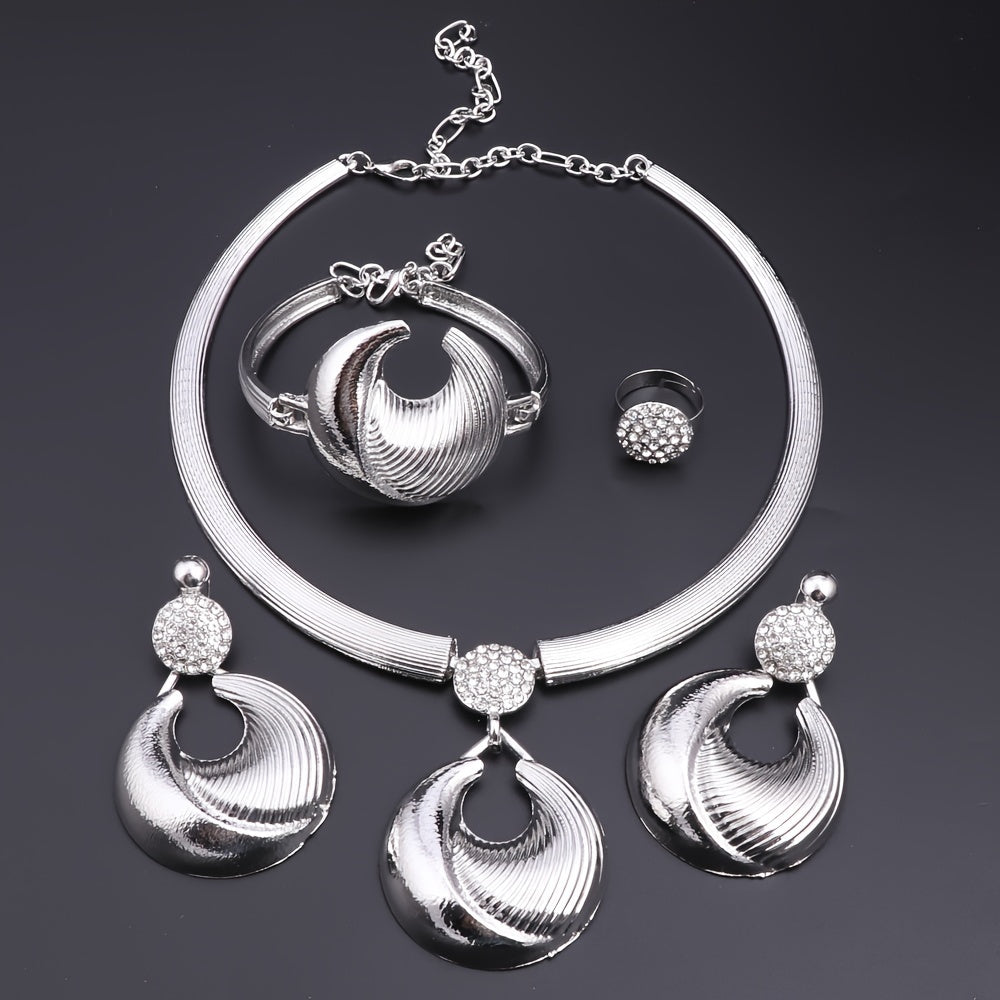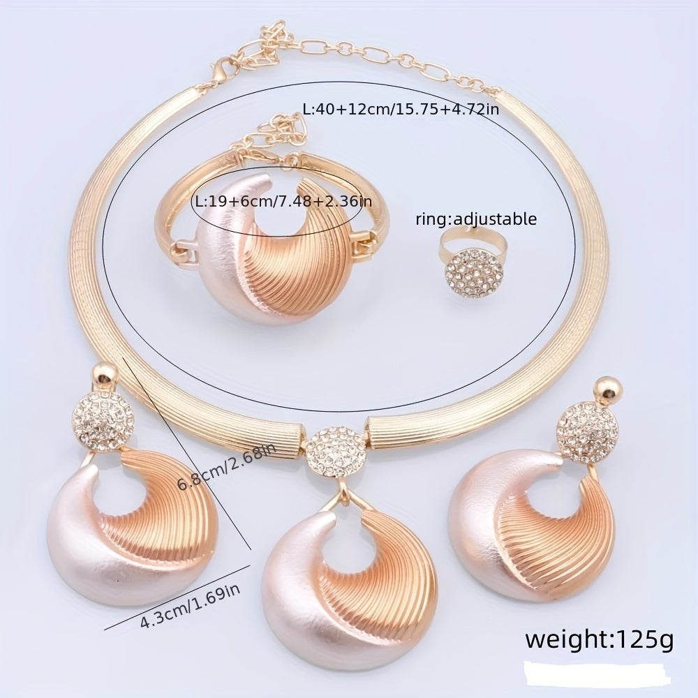 Luxurious Gold-Plated Artificial Crystal Jewelry Set for Women - Includes Necklace, Earrings, Wrist Accessory & Ring | Perfect for Weddings, Parties & Everyday Glamour