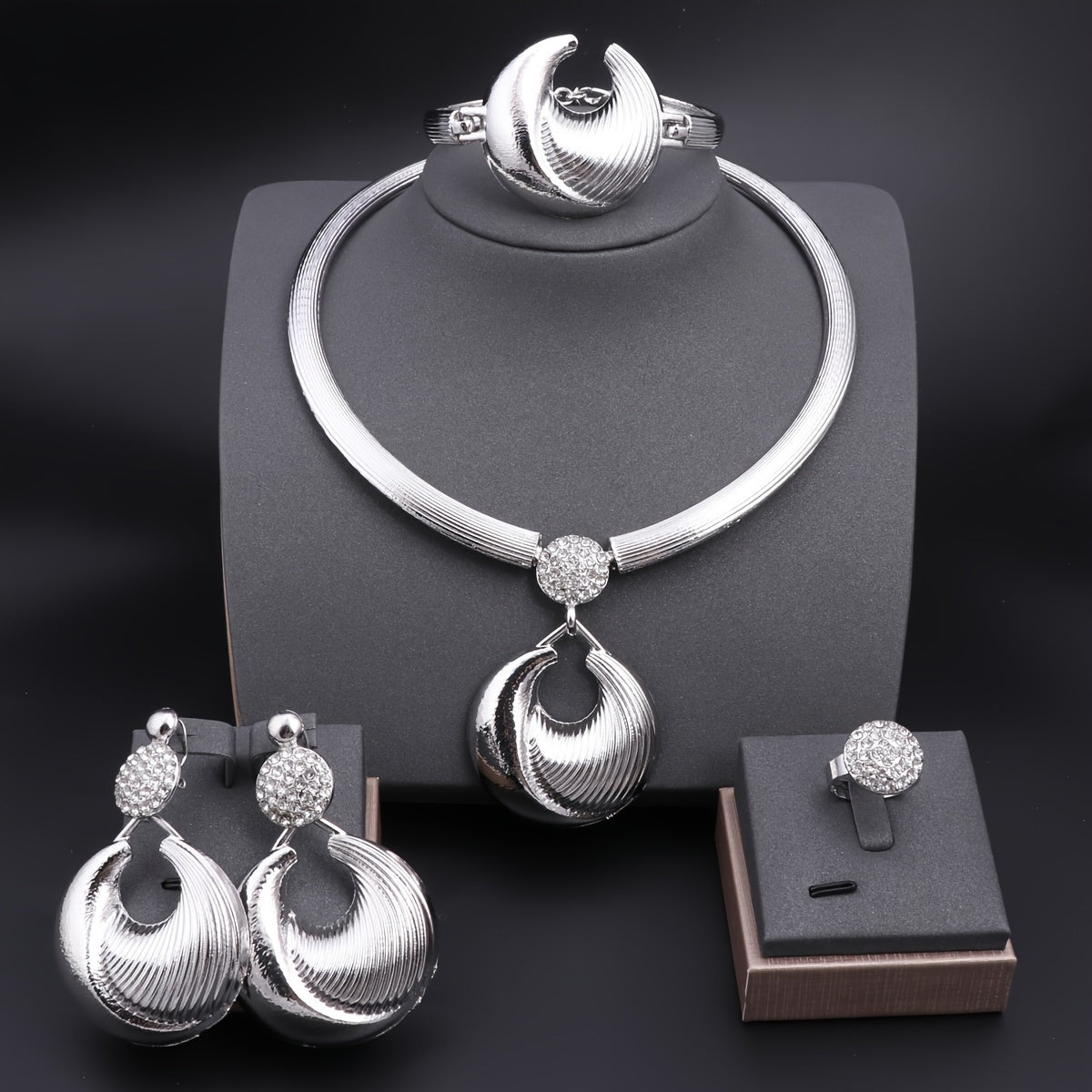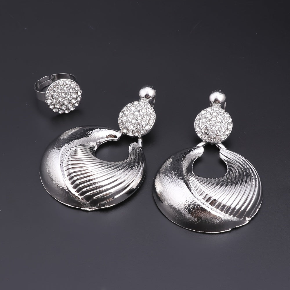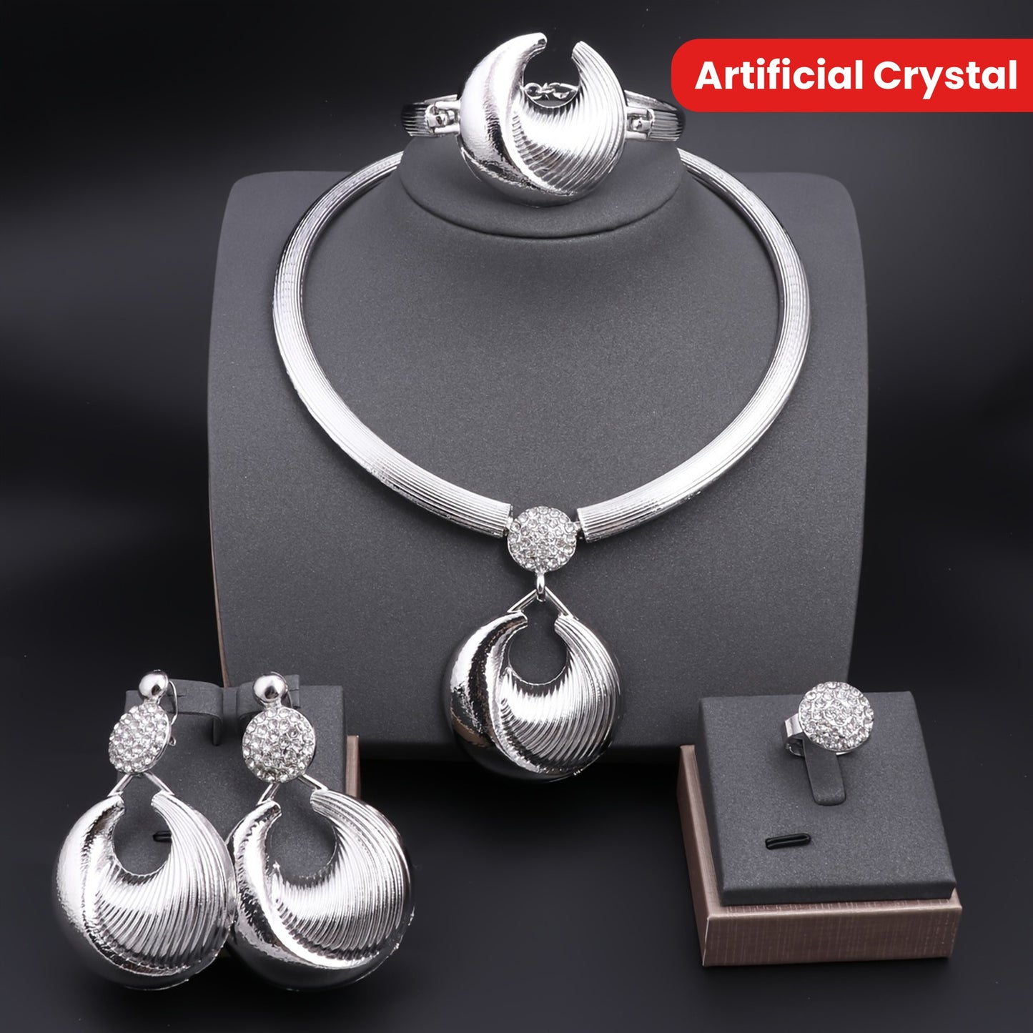 Luxurious Gold-Plated Artificial Crystal Jewelry Set for Women - Includes Necklace, Earrings, Wrist Accessory & Ring | Perfect for Weddings, Parties & Everyday Glamour