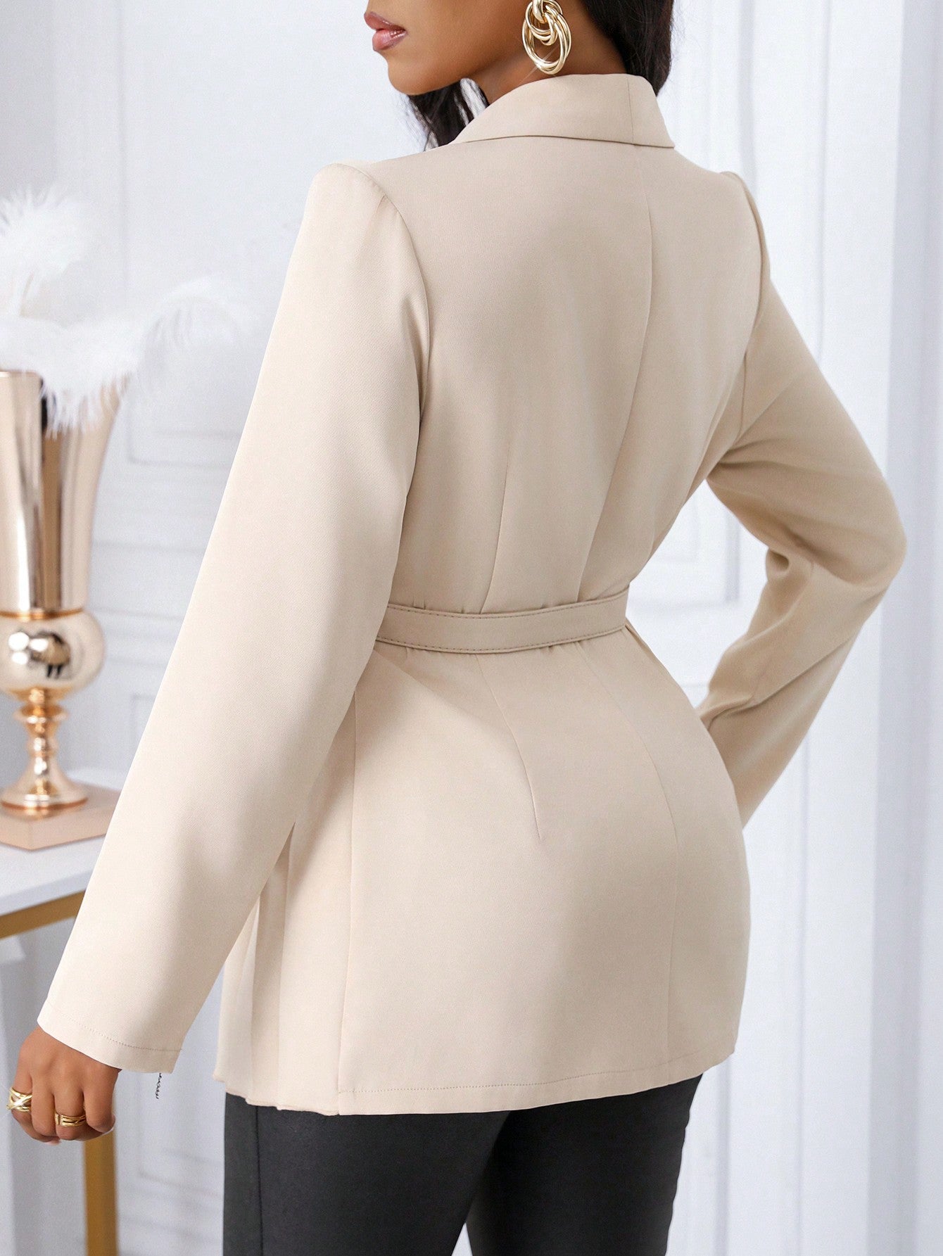 Lyxana Women's Stand Collar Slim Waist Button Pleated Design Suit Jacket