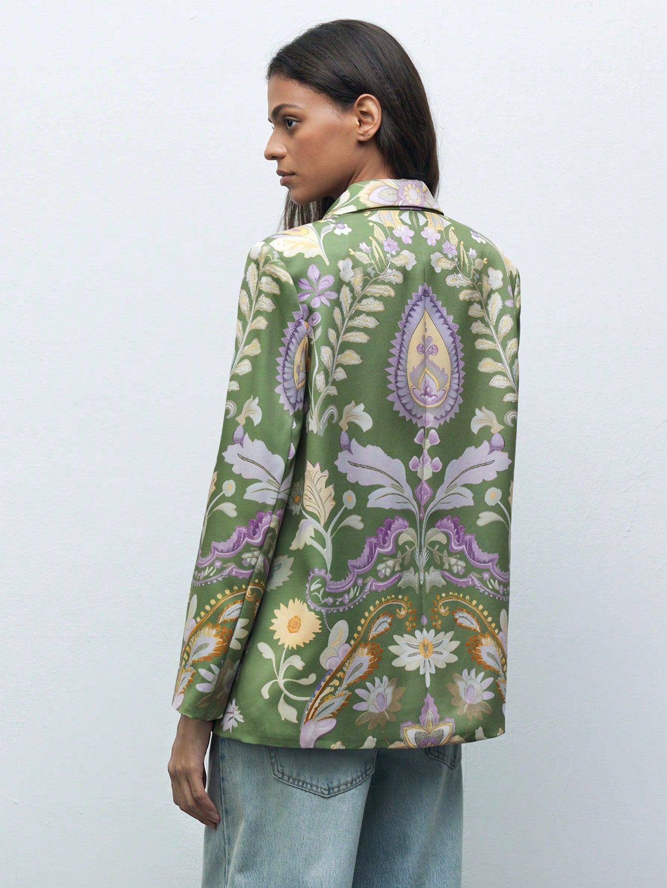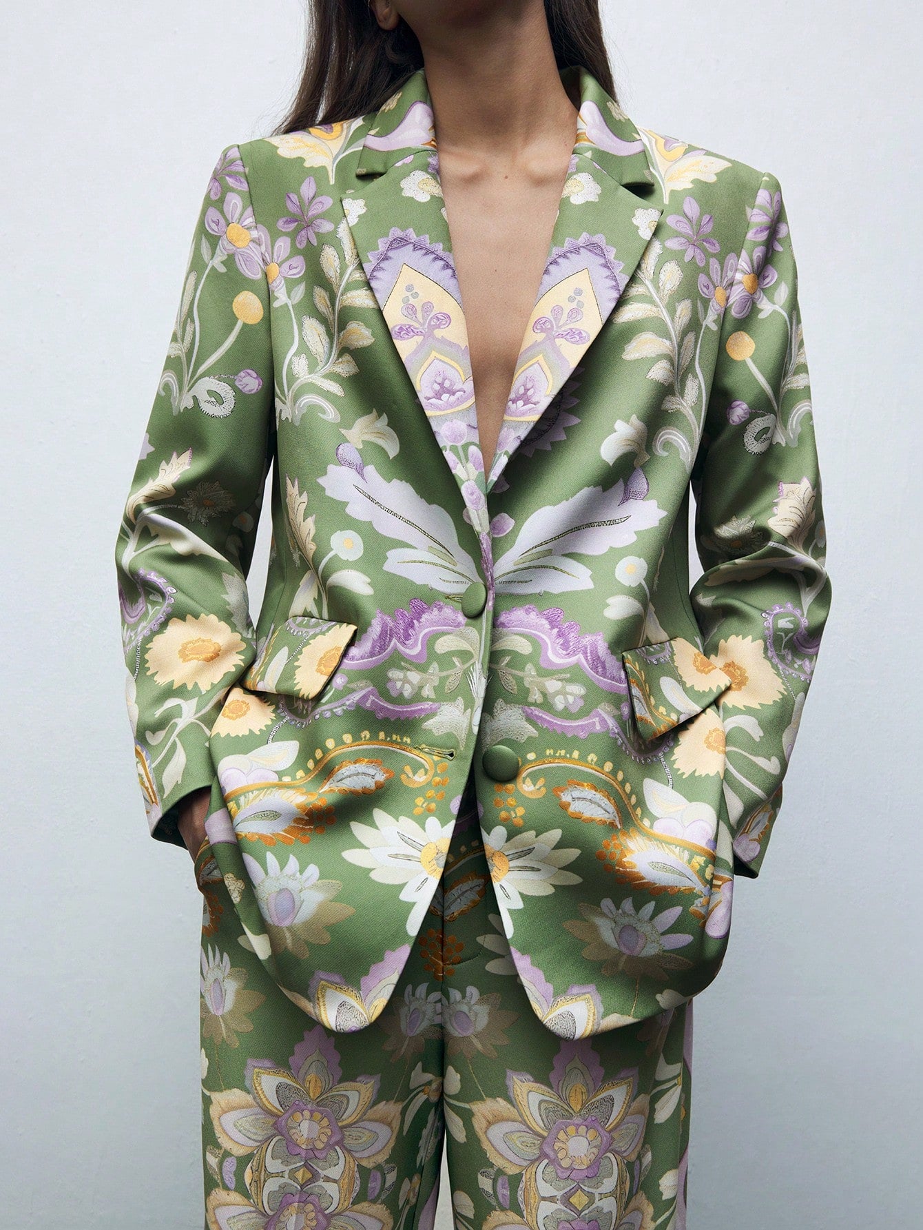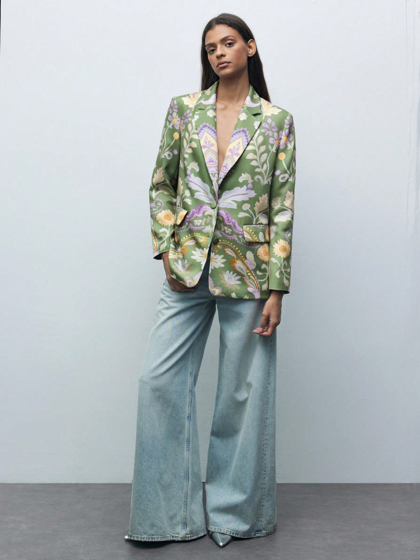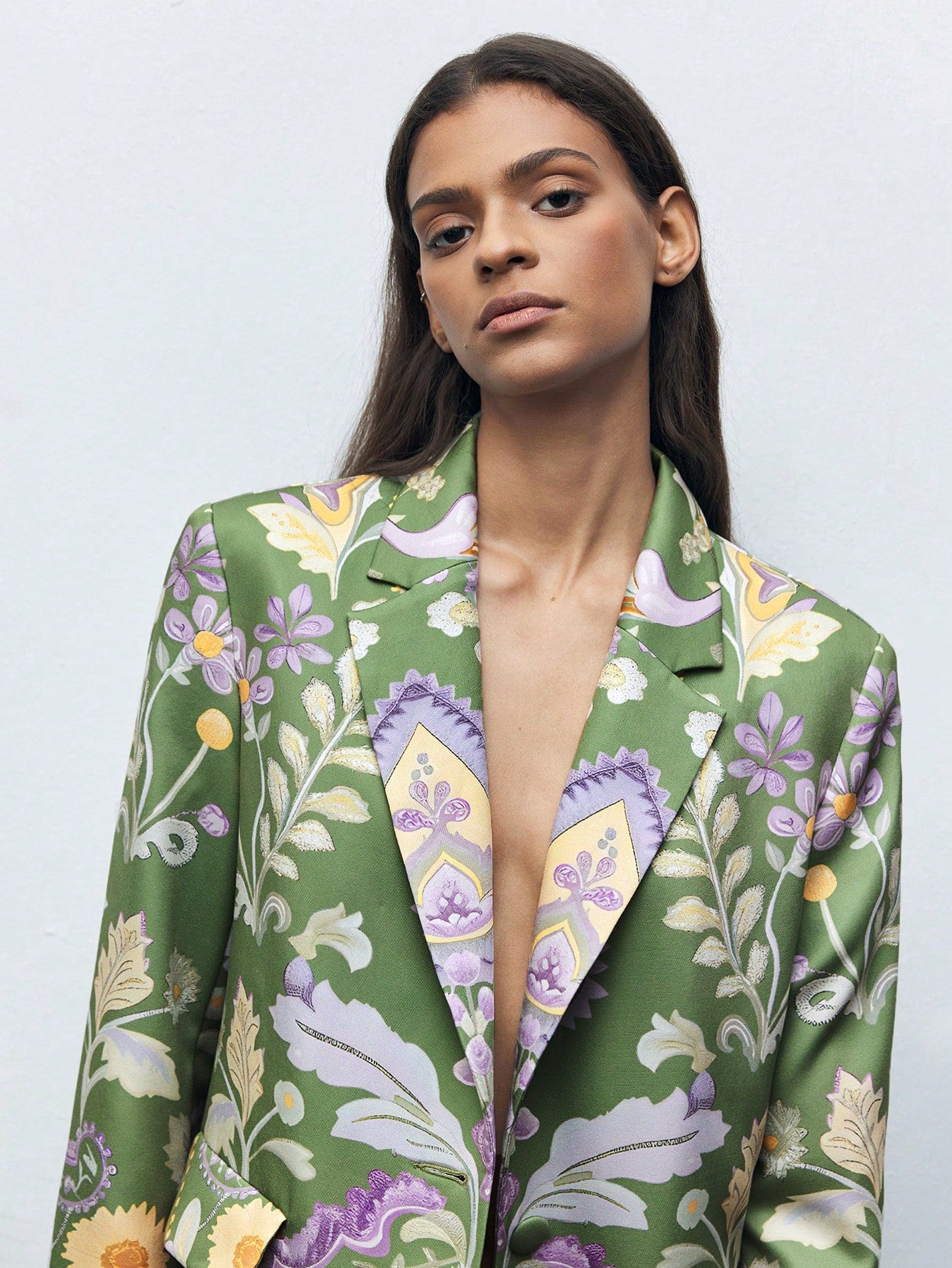 Maija Digital Print Green Single Breasted Lady's Jacket, Casual Leisure Wear For Spring/Summer
