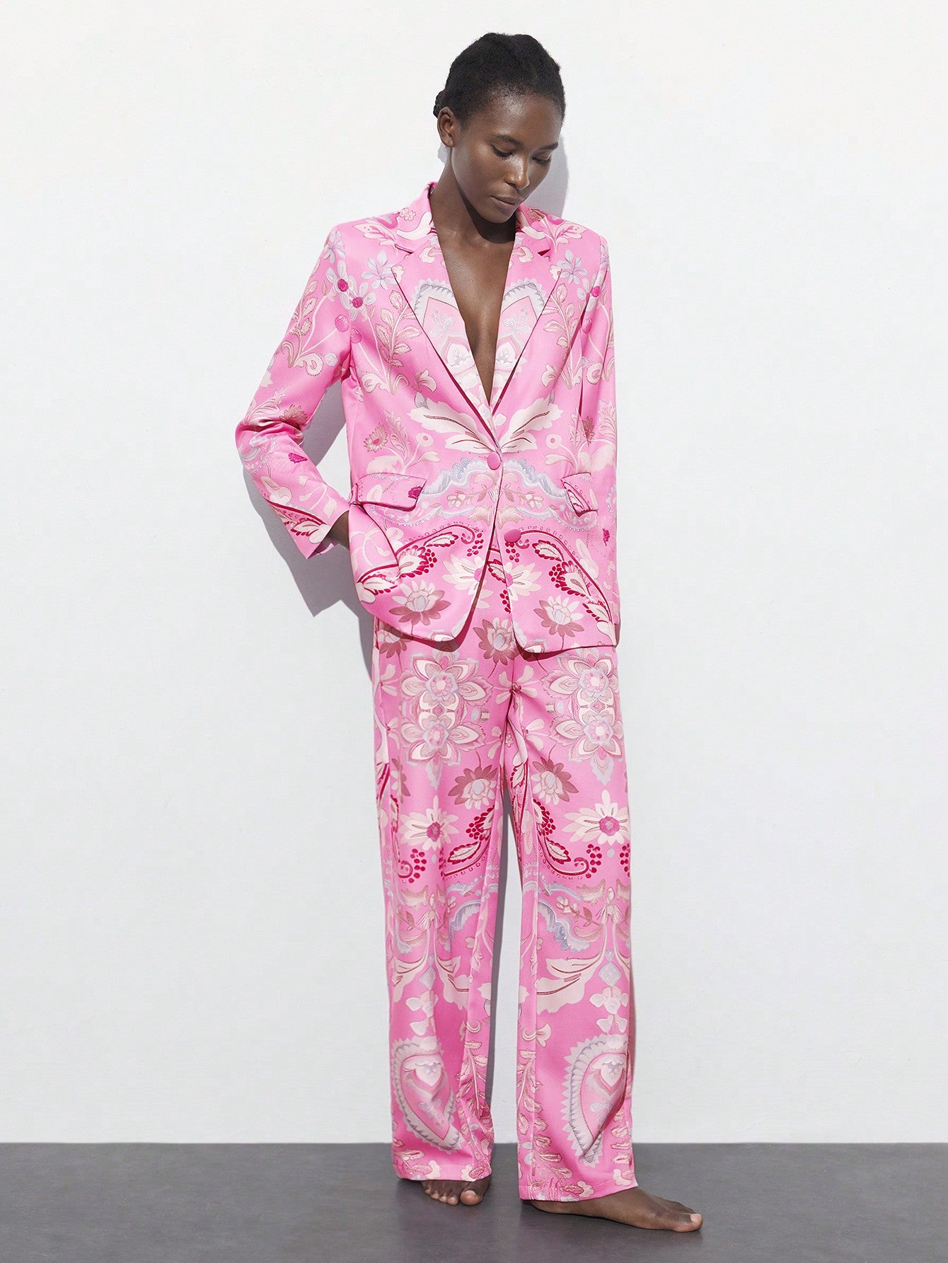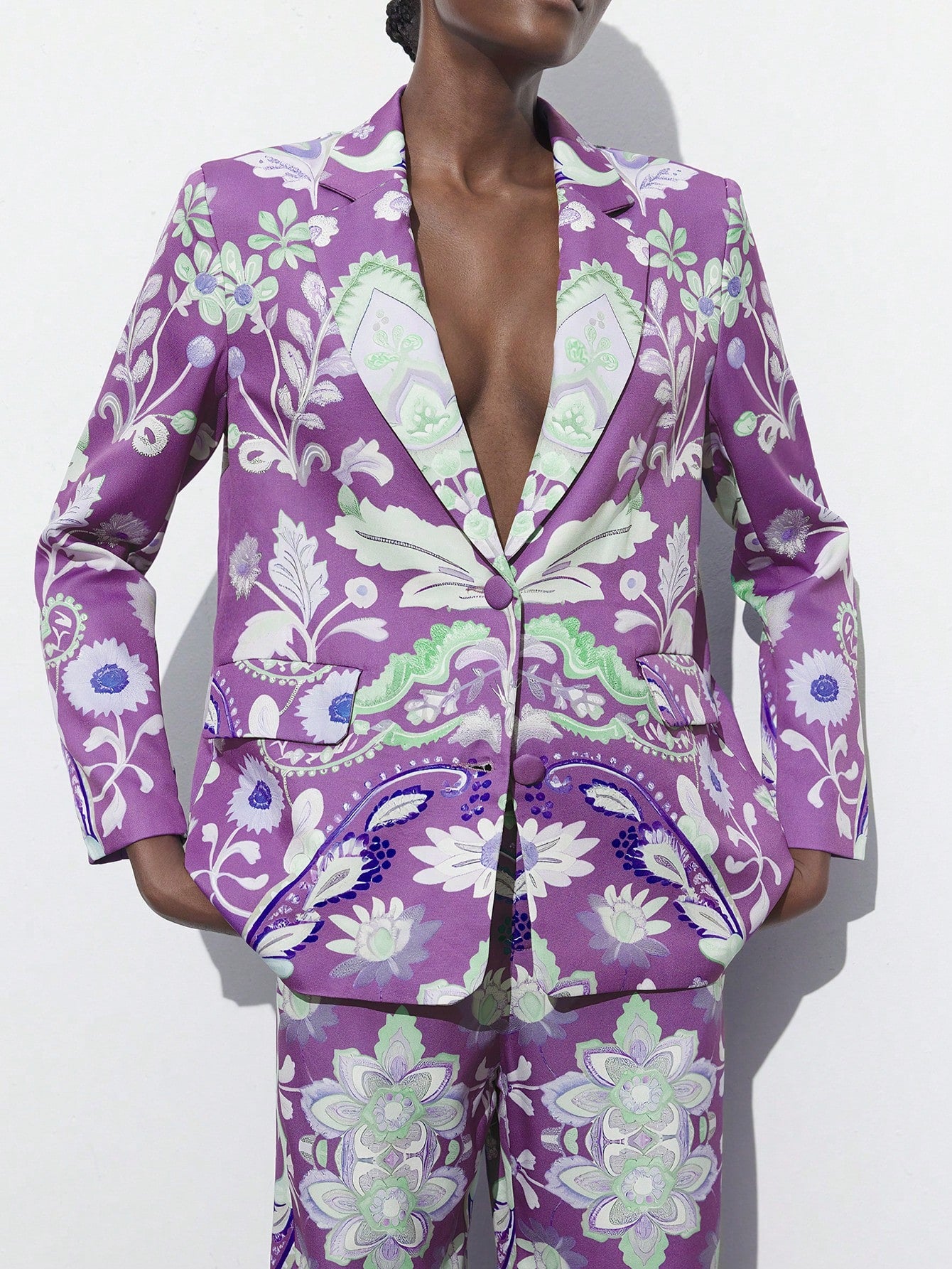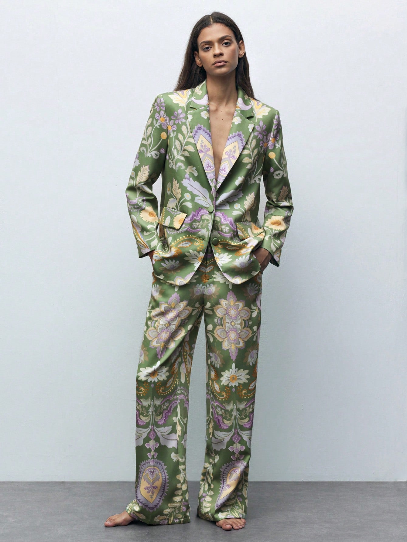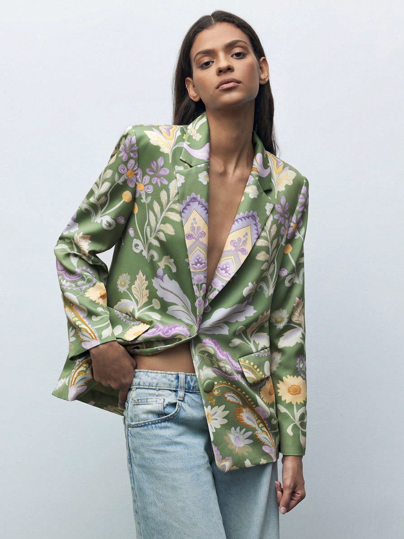 Maija Digital Print Green Single Breasted Lady's Jacket, Casual Leisure Wear For Spring/Summer
