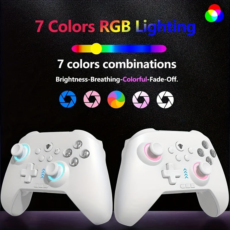 Manette de Jeu Sans Fil ZtVsXa 2.4G avec Éclairage RGB, Boutons Programmables, Joystick à Effet Hall & Gâchets, Vibration - Rechargeable par USB, Compatibilité Multi-Plateformes pour PC Windows & Android
