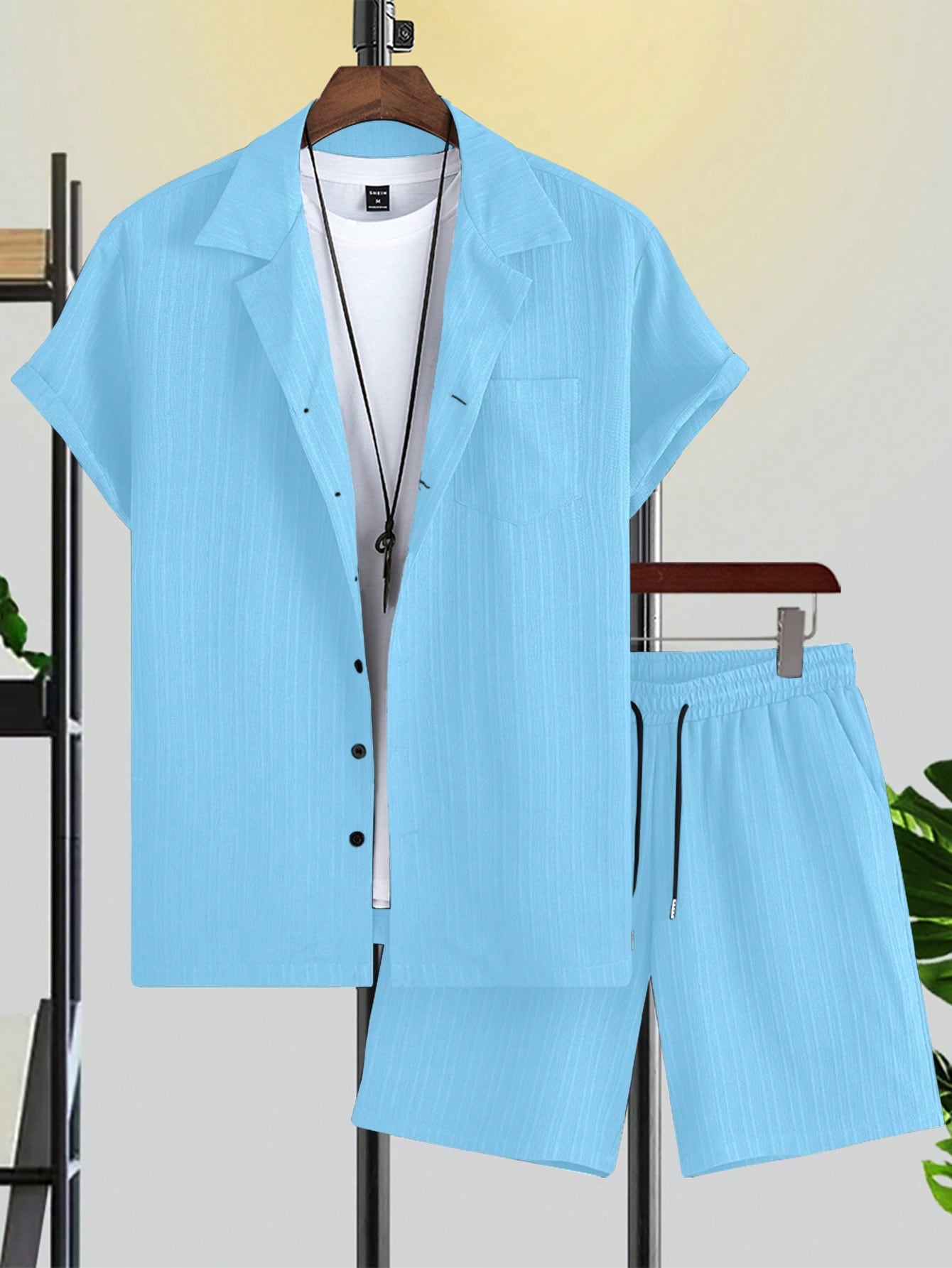 Manfinity Homme 2pcs Men's Plus Size Solid Color Short Sleeve Button-Down Shirt And Pants Casual Suit, Summer