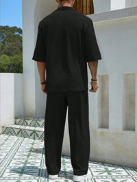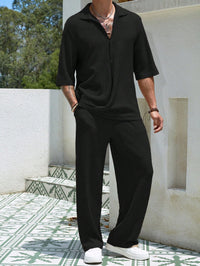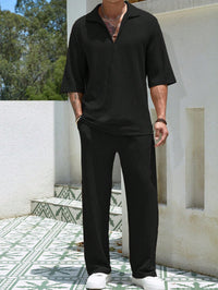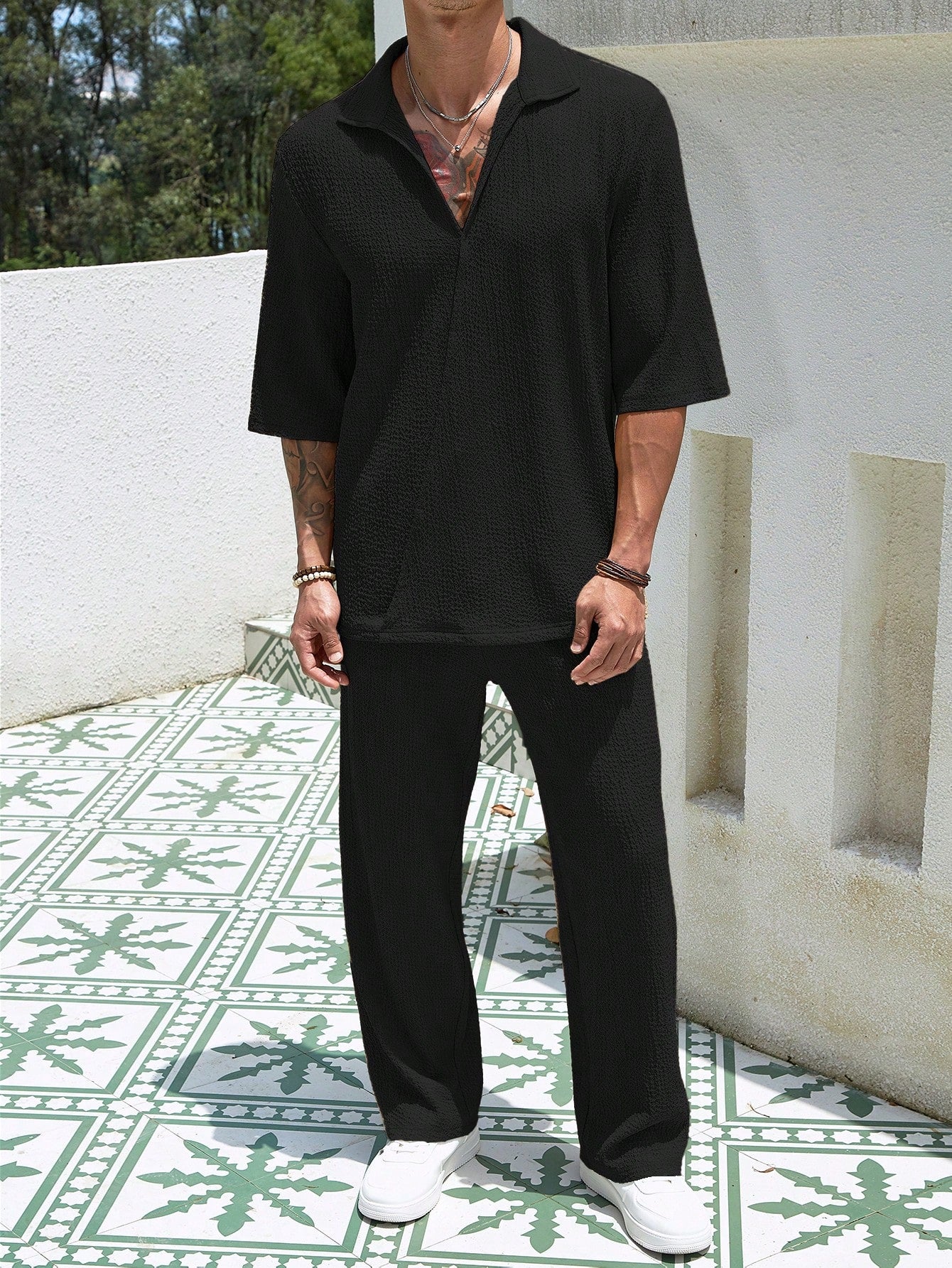 Manfinity Homme Loose Fit Men's Solid Color V-Neck Shirt & Pants Set
