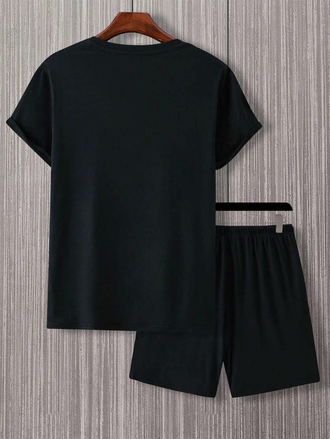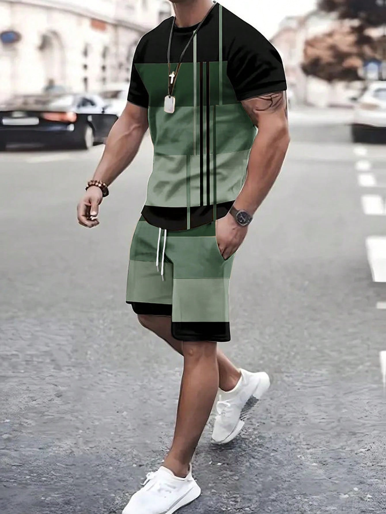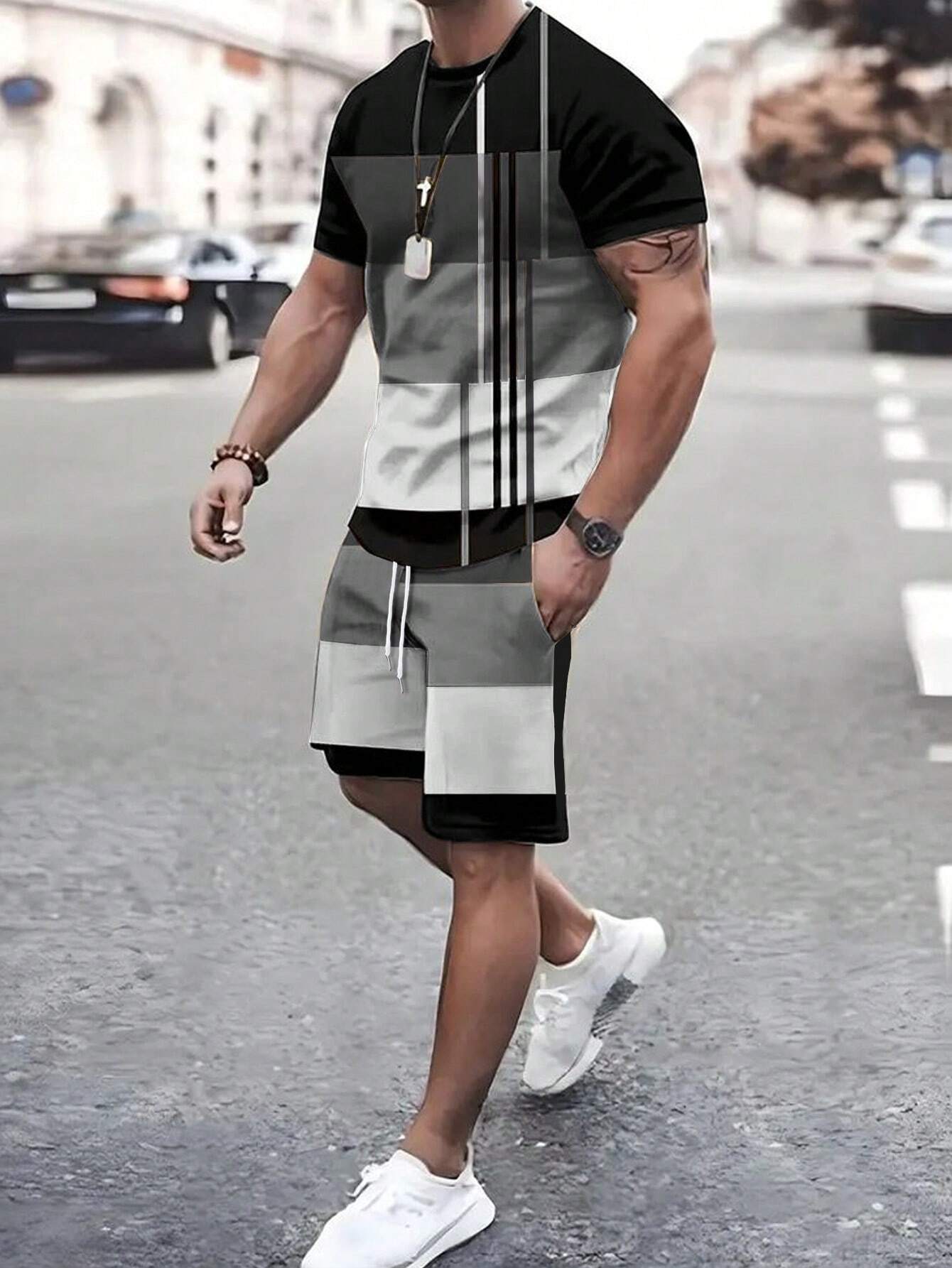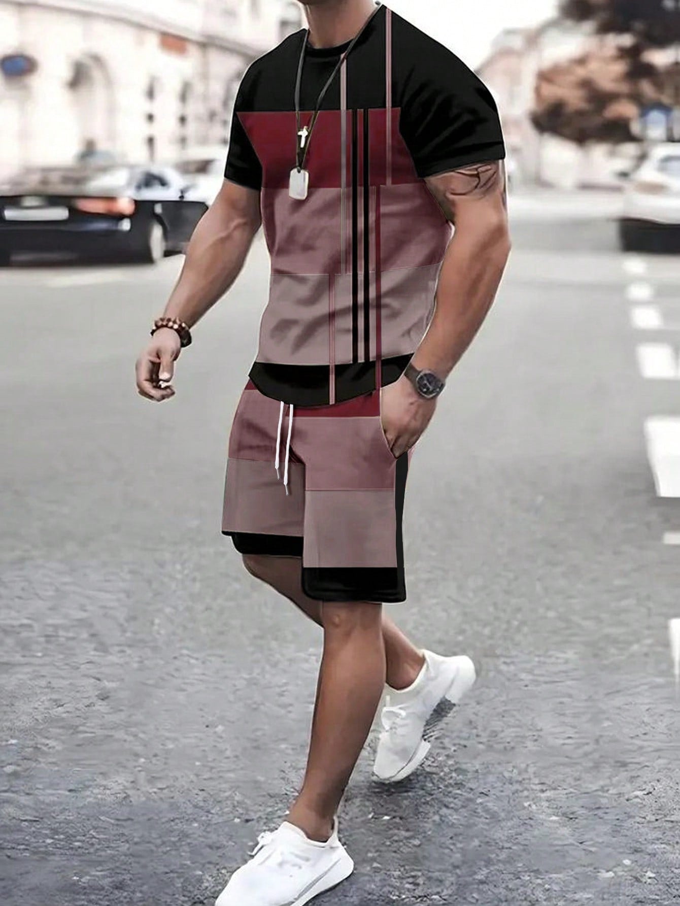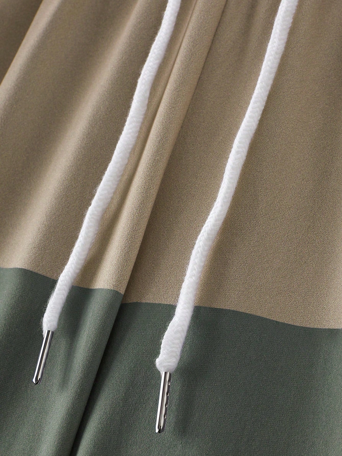 Manfinity Homme Men Color Block Round Neck Short Sleeve T-Shirt And Drawstring Waist Shorts Casual Set For Summer