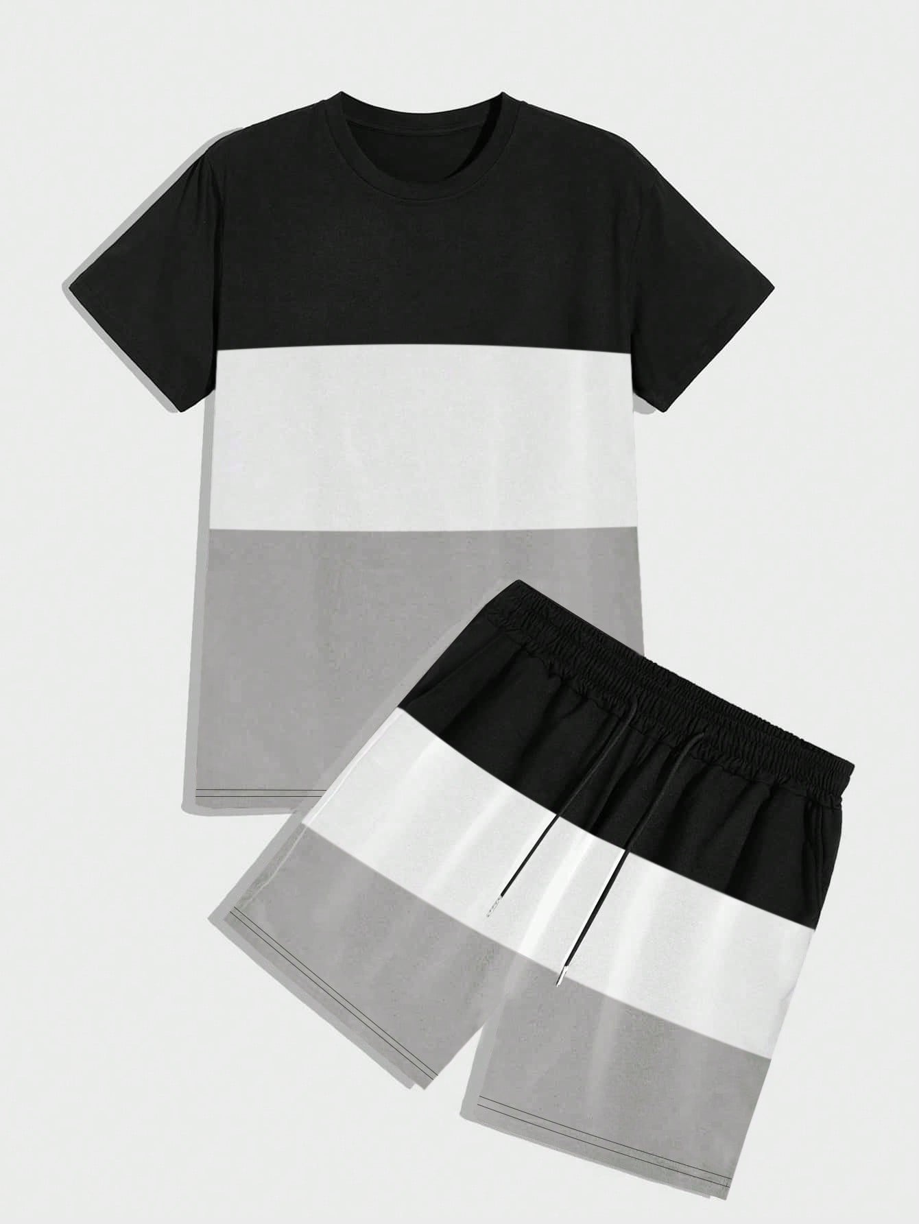 Manfinity Homme Men Color Block Tee & Drawstring Waist Shorts
