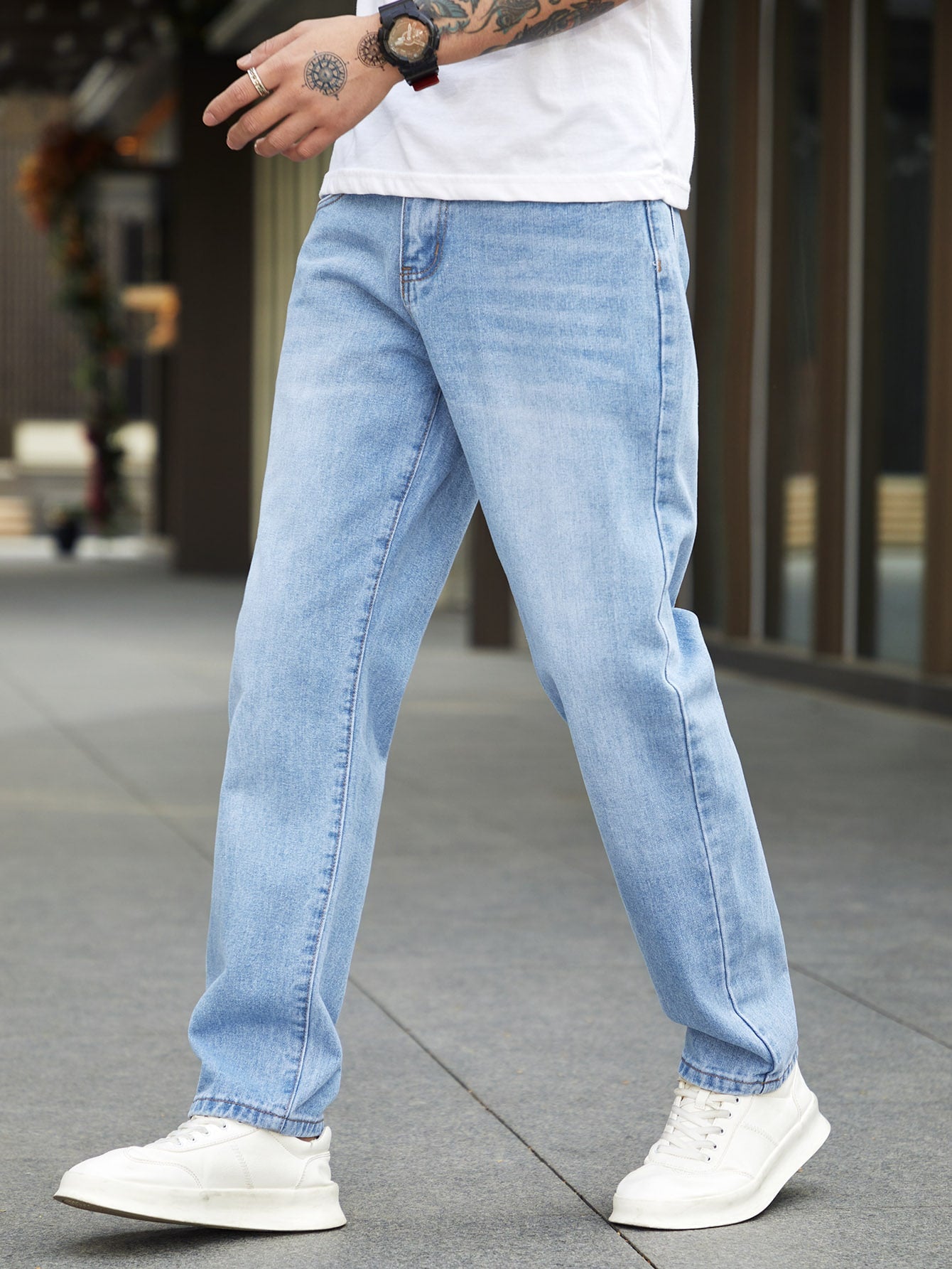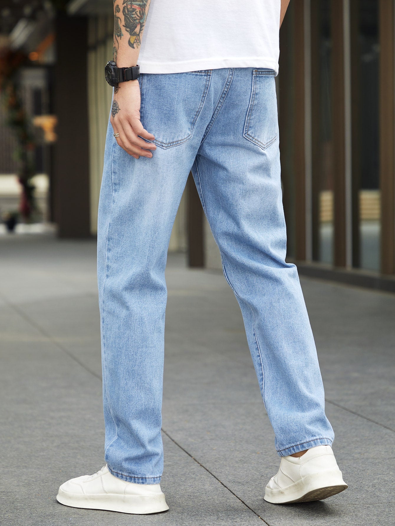Manfinity Homme Men Cotton Bleach Wash Straight Leg Jeans Plain Long Washed Straight Leg Light Blue Cargo Jeans Light Jeans, For Husband, Boyfriend Gifts