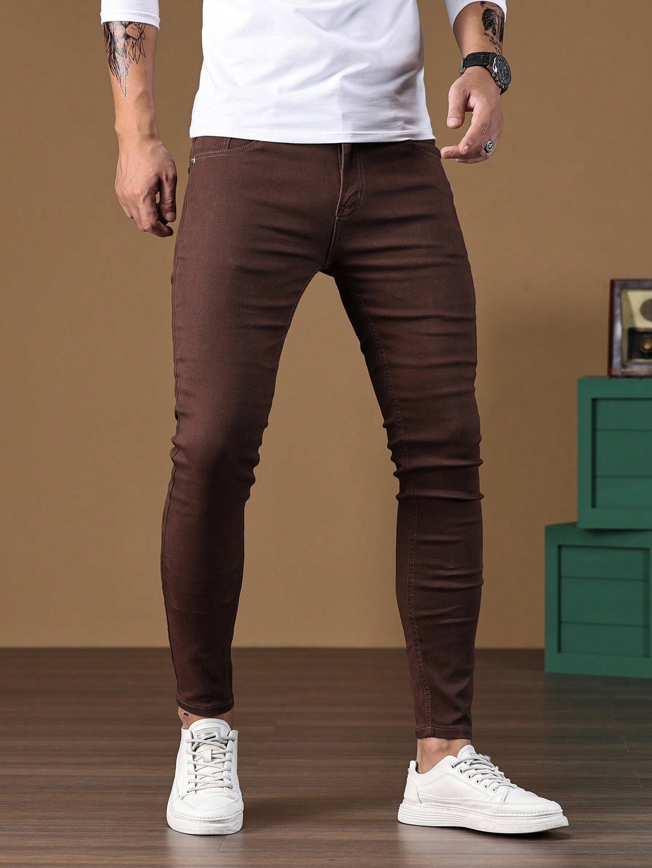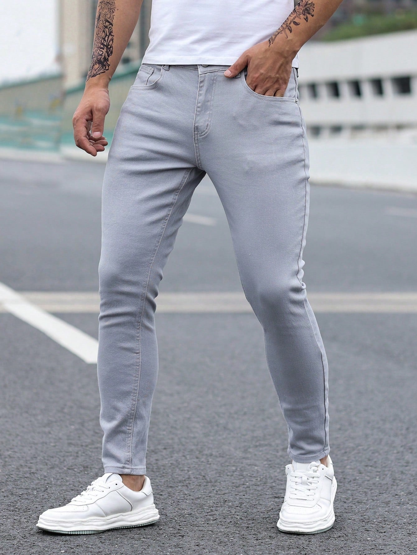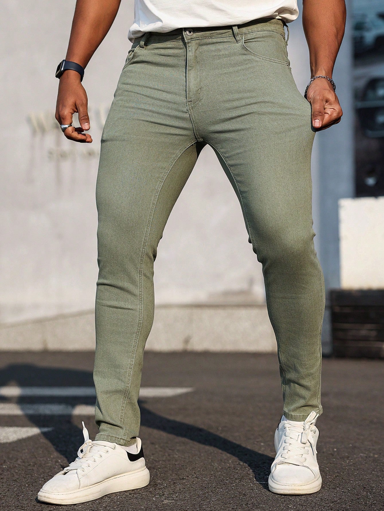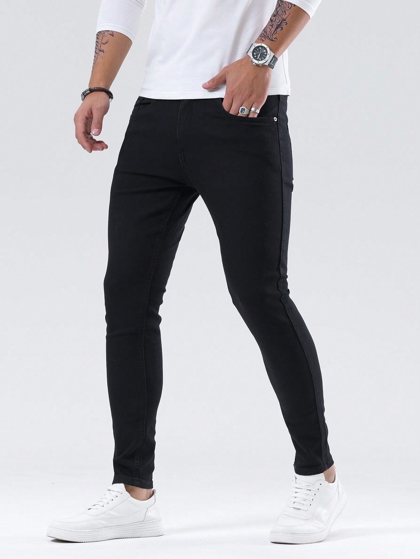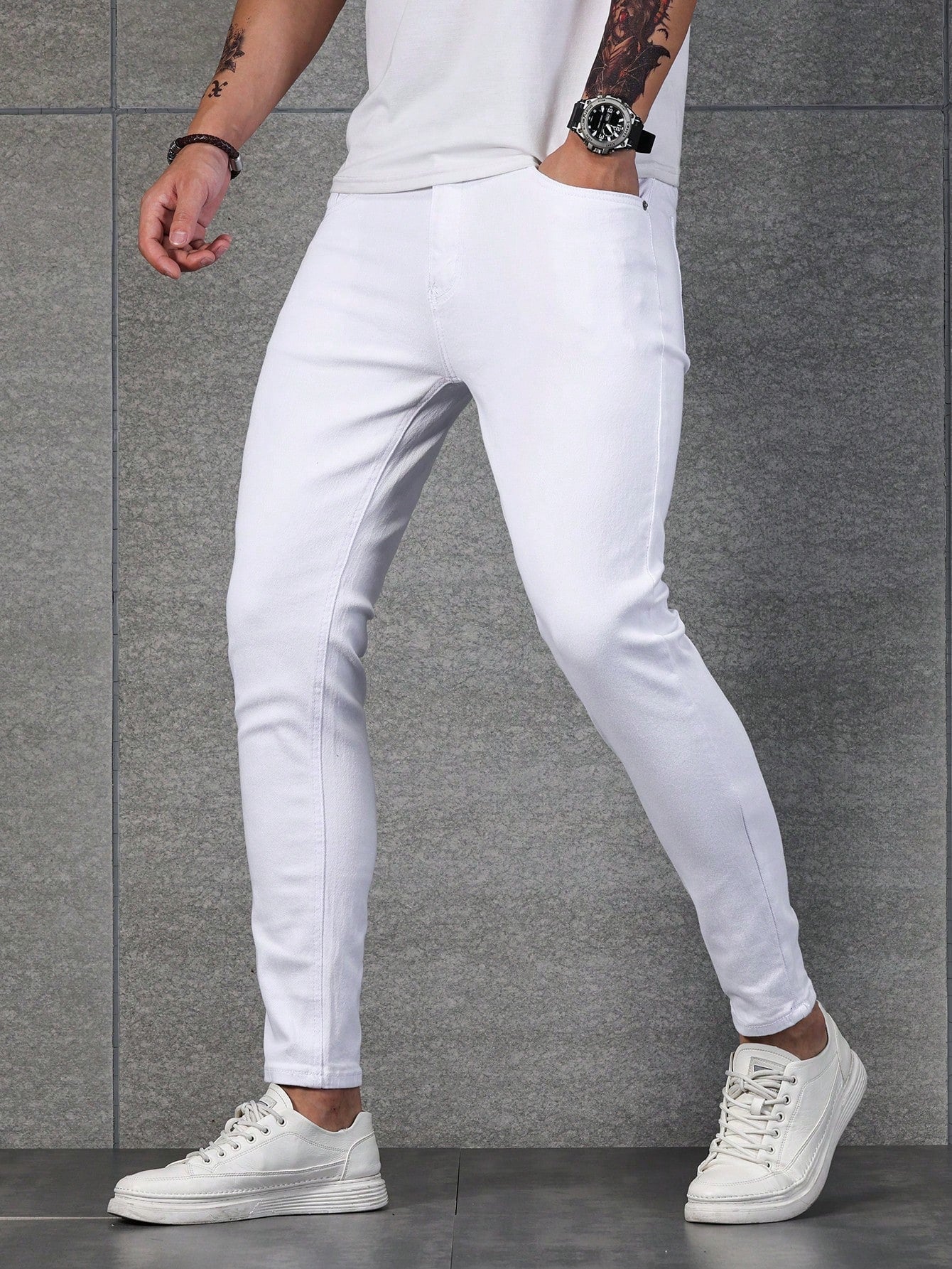 Manfinity Homme Men Cotton Solid Skinny Jeans Plain Dark Blue Slim Fit Long Dark Wash Jeans Washed Cargo Jeans, For Husband, Boyfriend Gifts