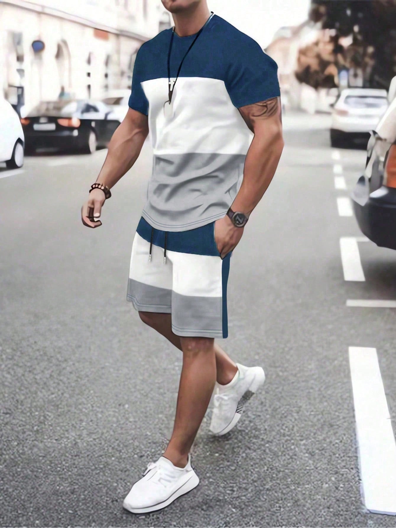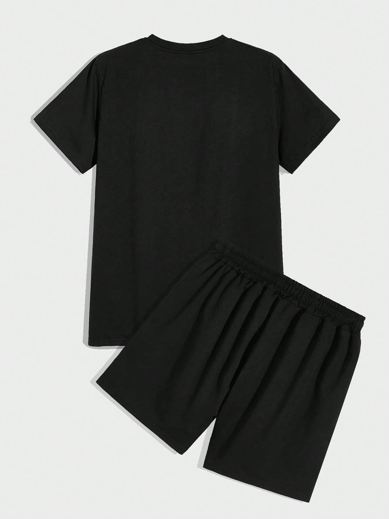 Manfinity Homme Men Solid Color Short Sleeve Shirt And Pants Casual Two-Piece Set For Spring And Summer