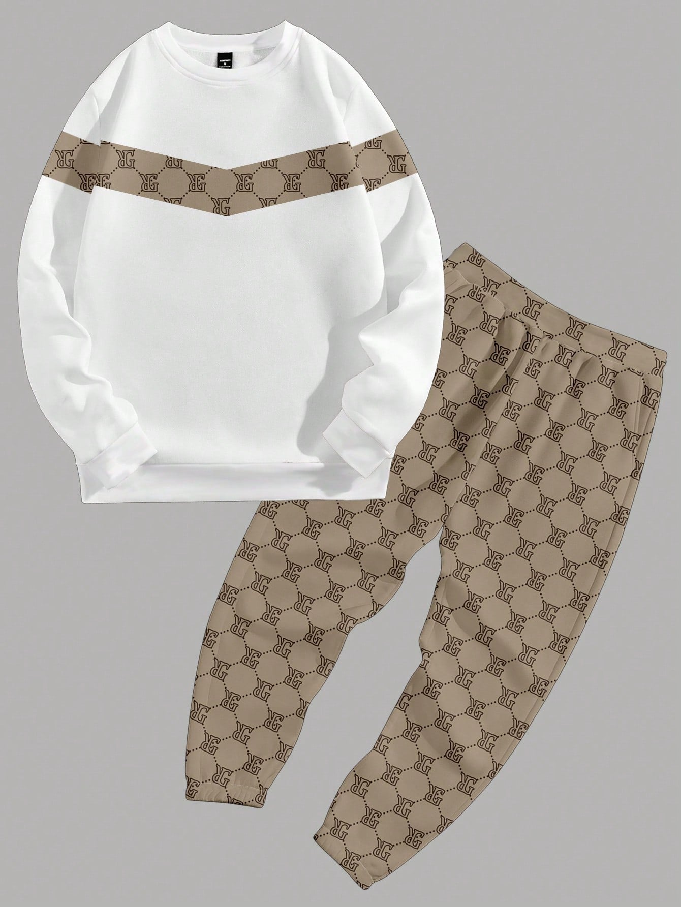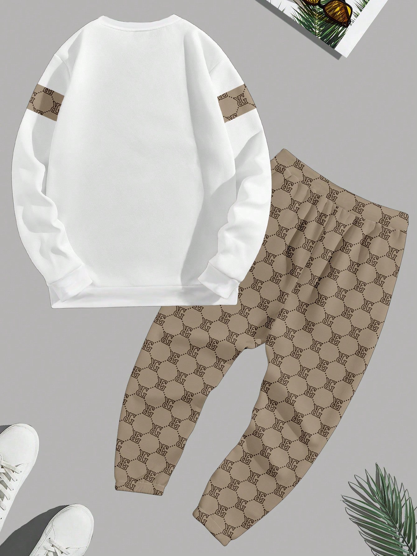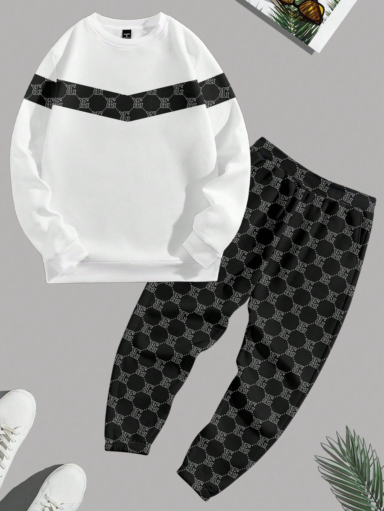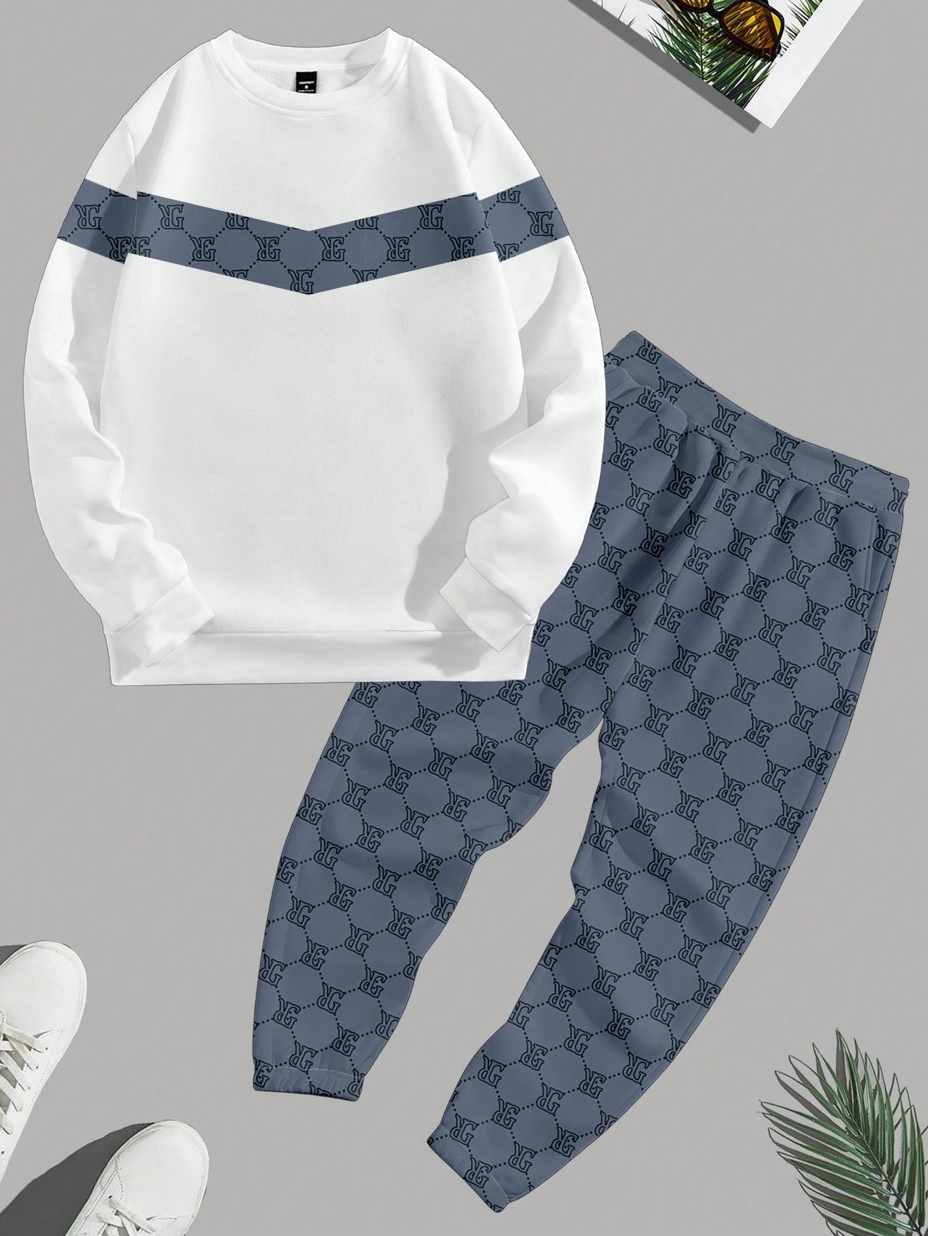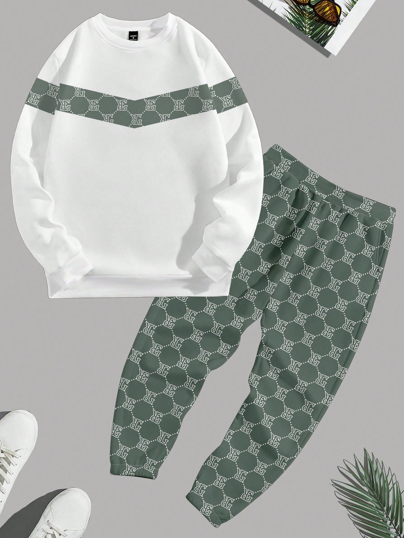 Manfinity Homme Men's Casual Contrast Letter Graphic Sweatshirt And Sweatpants Set, Autumn Fall Winter