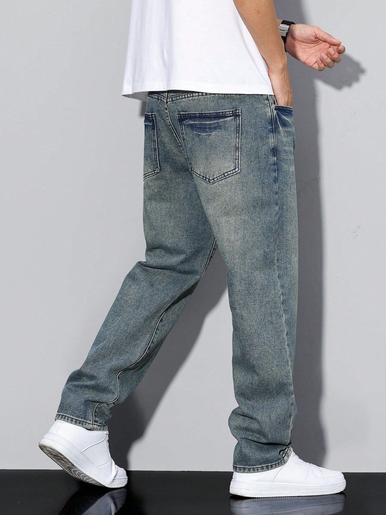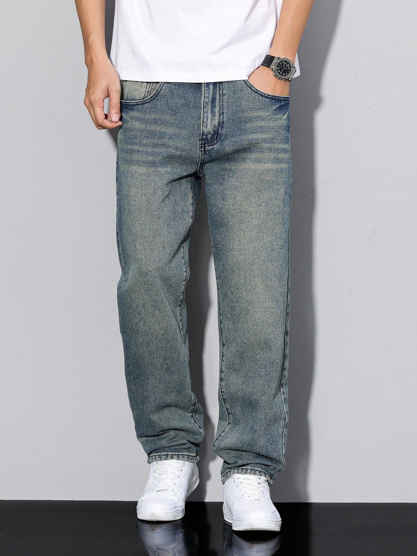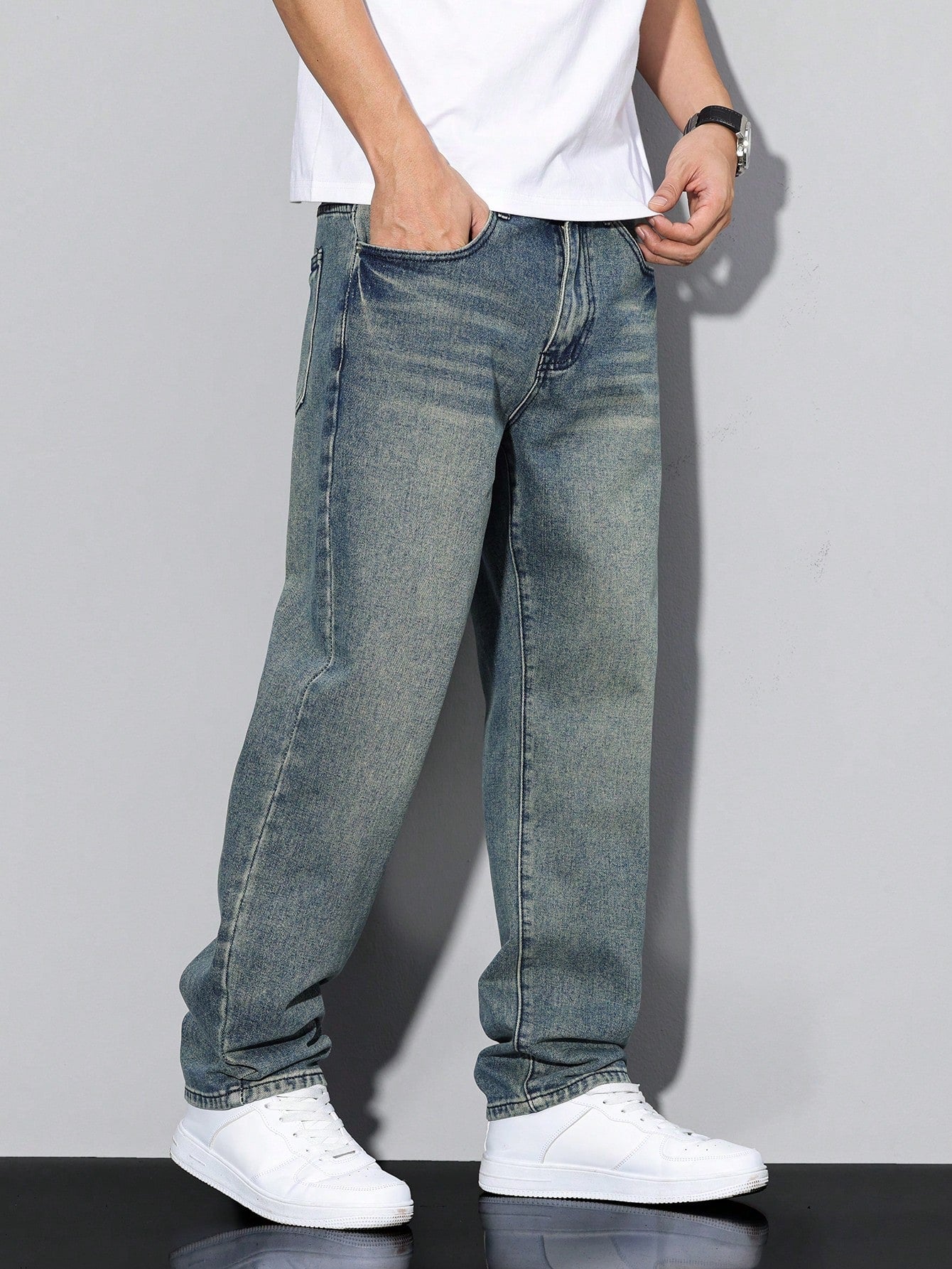 Manfinity Homme Men's Straight Loose Casual Versatile Jeans With Pockets